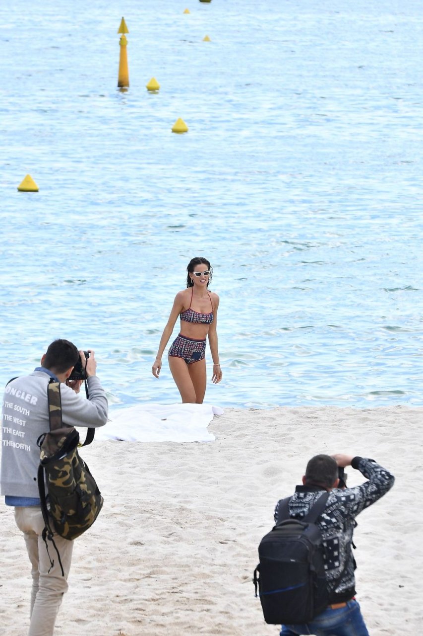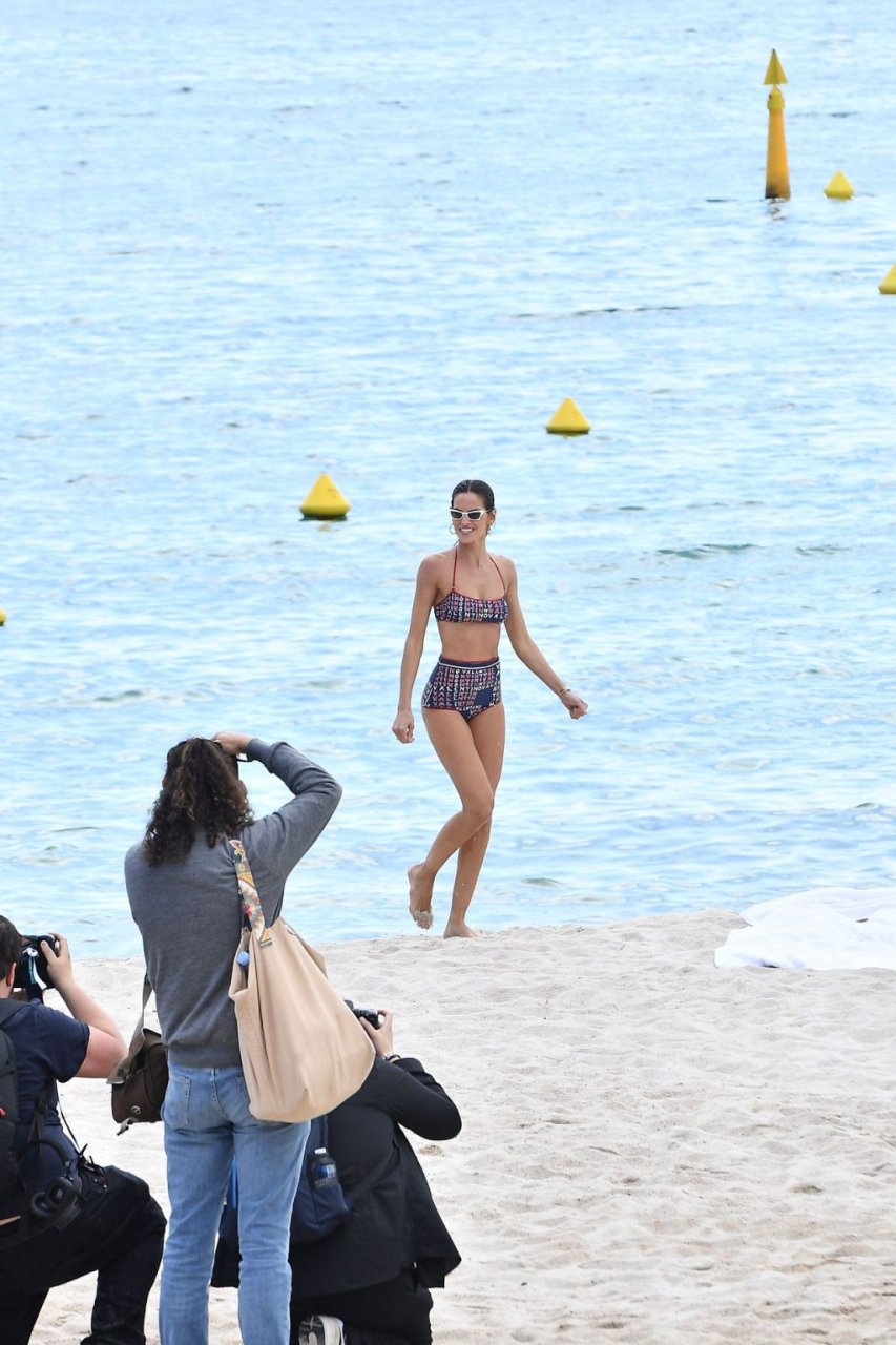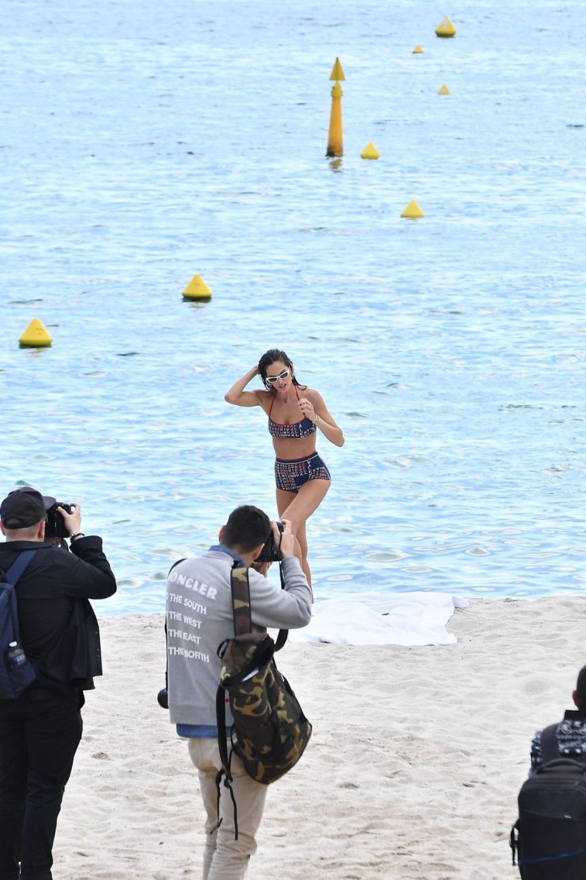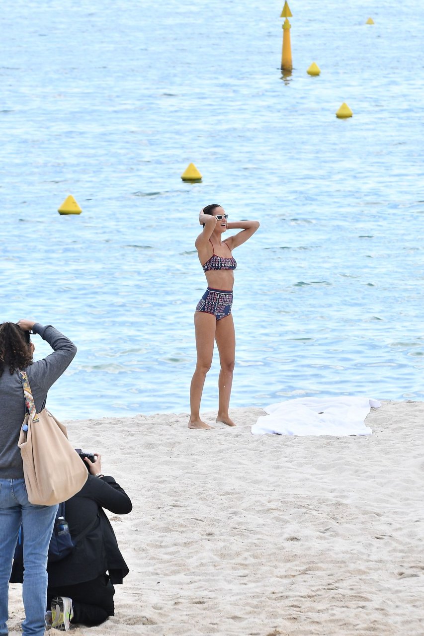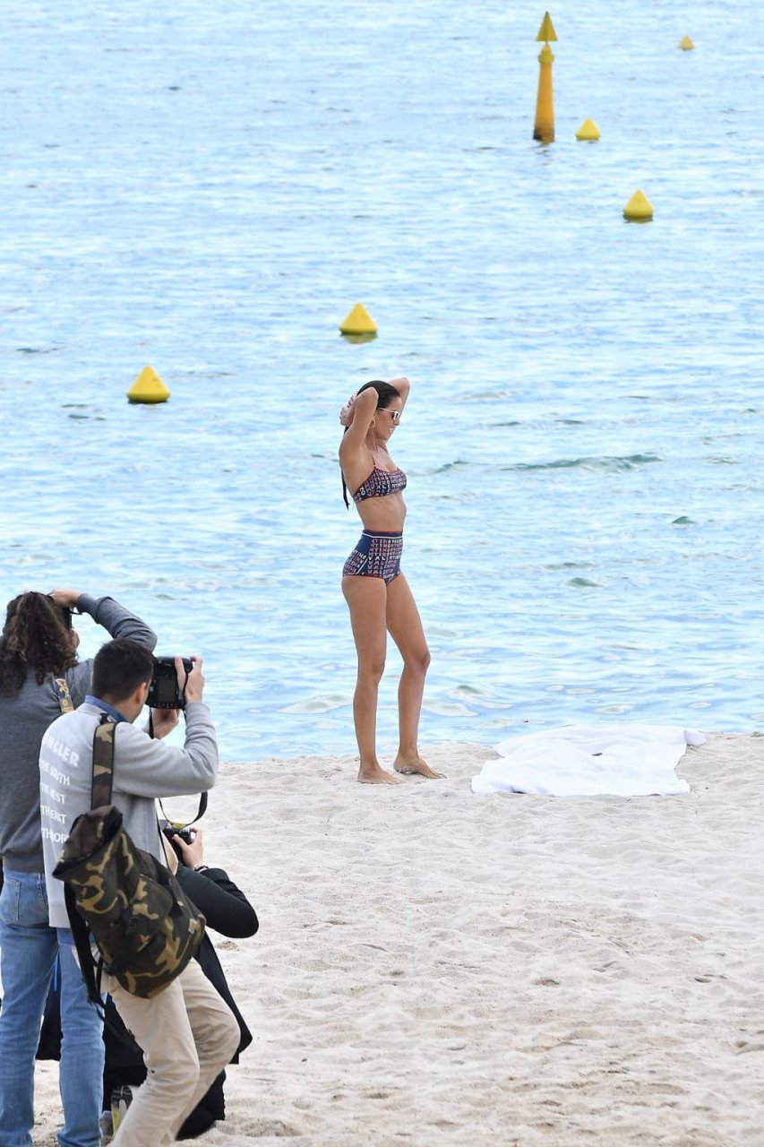 Le mannequin brésilien Izabel Goulart (34 ans) est vu sur la plage dans l’océan à la plage Martinez en bikini bleu Valentino à Cannes, France, le 15/05/2019. La femme magnifique a montré sa silhouette élancée à une douzaine de photographes.
