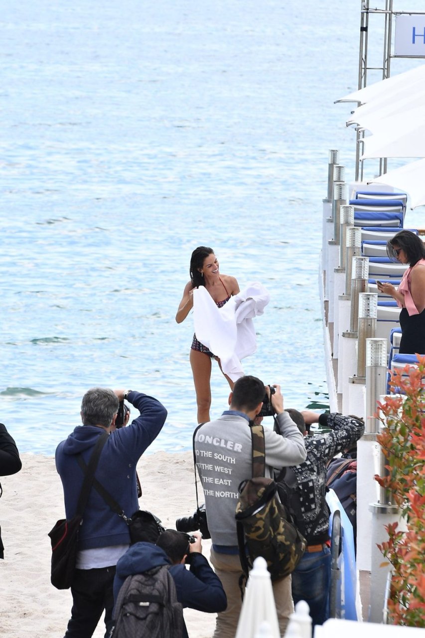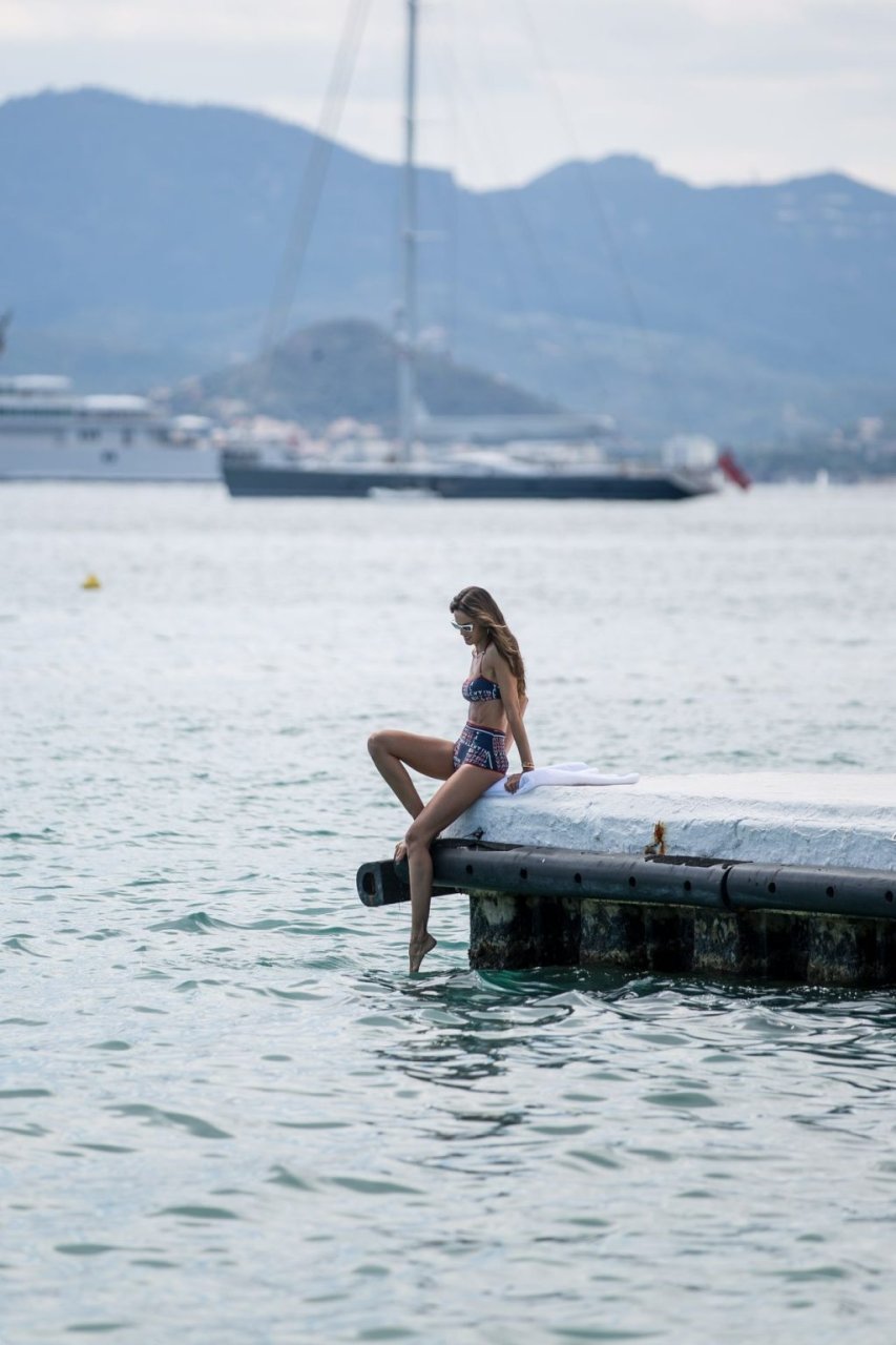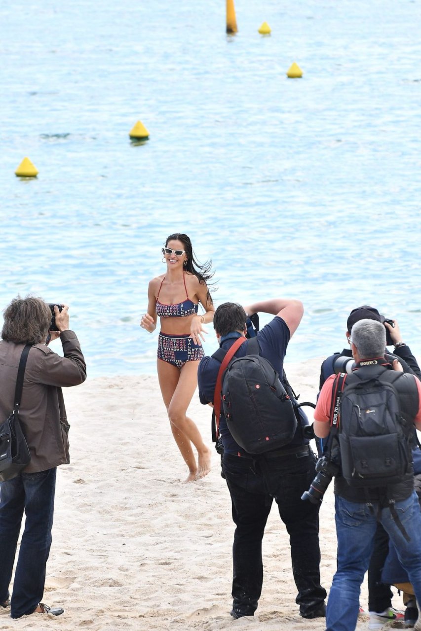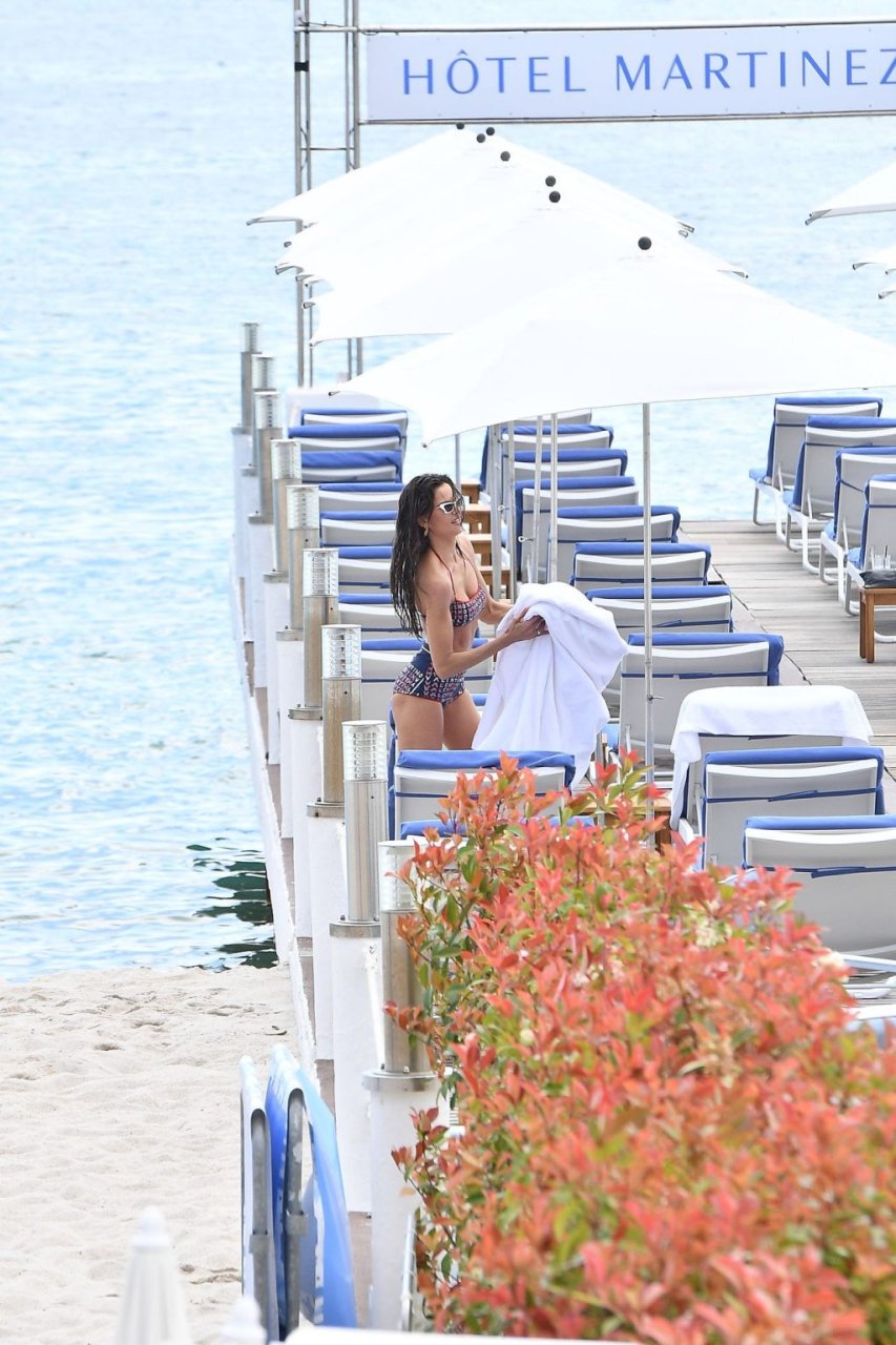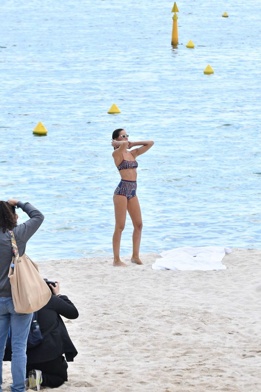 Le mannequin brésilien Izabel Goulart (34 ans) est vu sur la plage dans l’océan à la plage Martinez en bikini bleu Valentino à Cannes, France, le 15/05/2019. La femme magnifique a montré sa silhouette élancée à une douzaine de photographes.