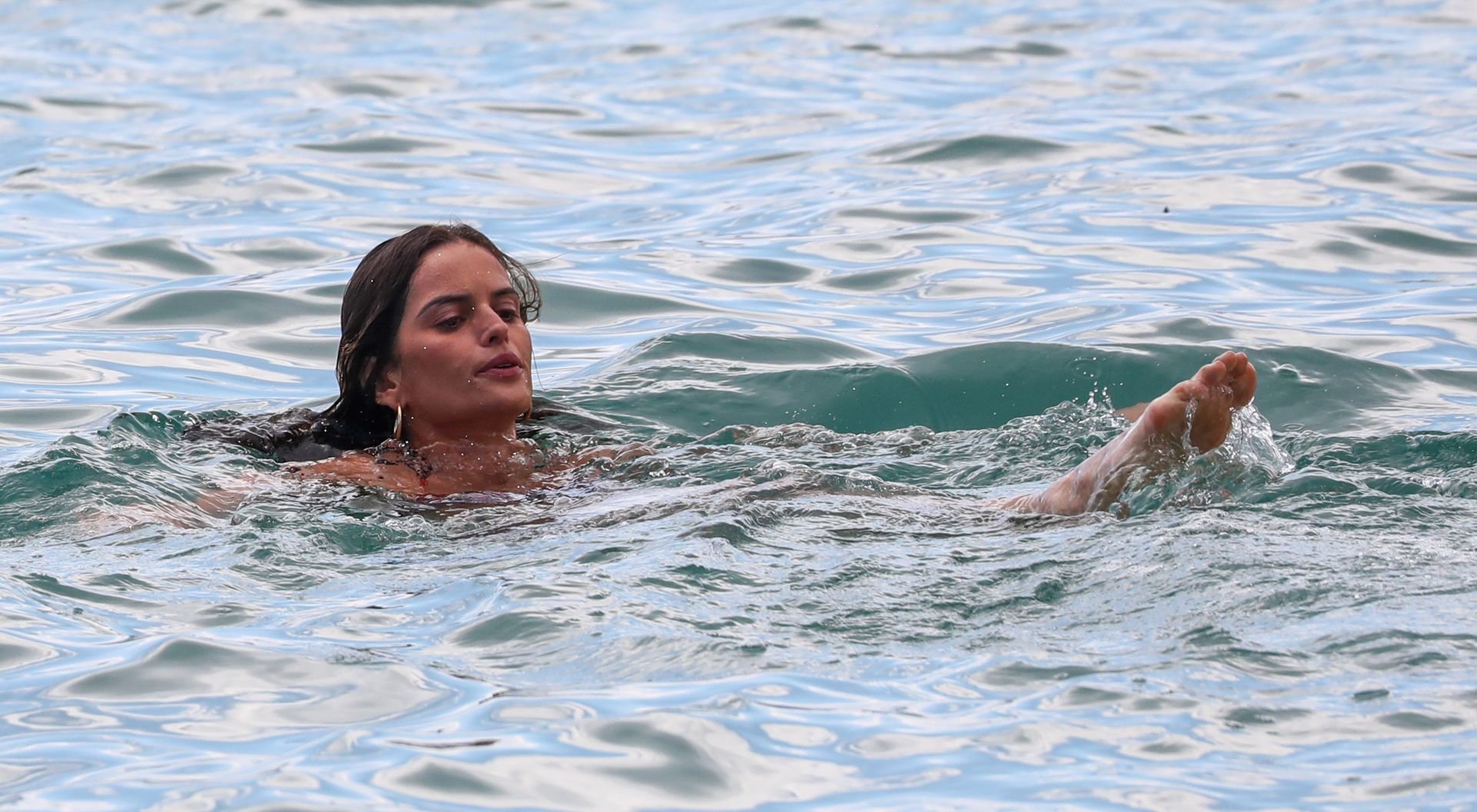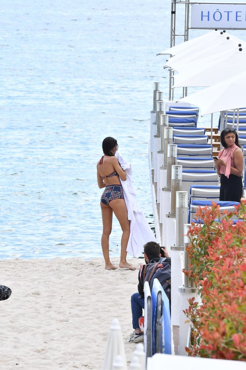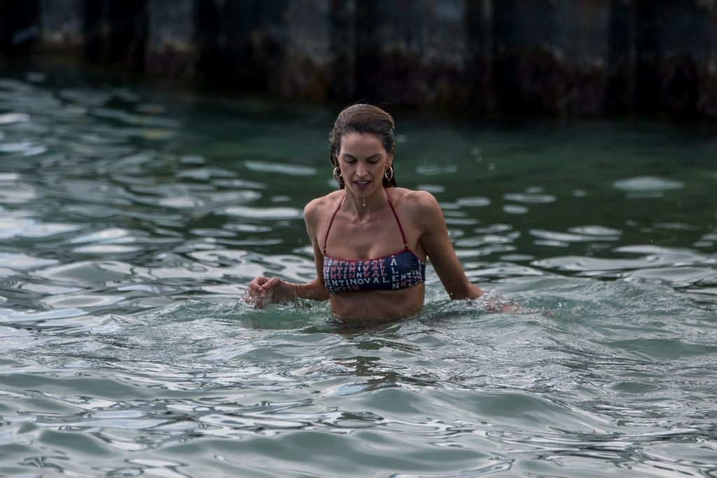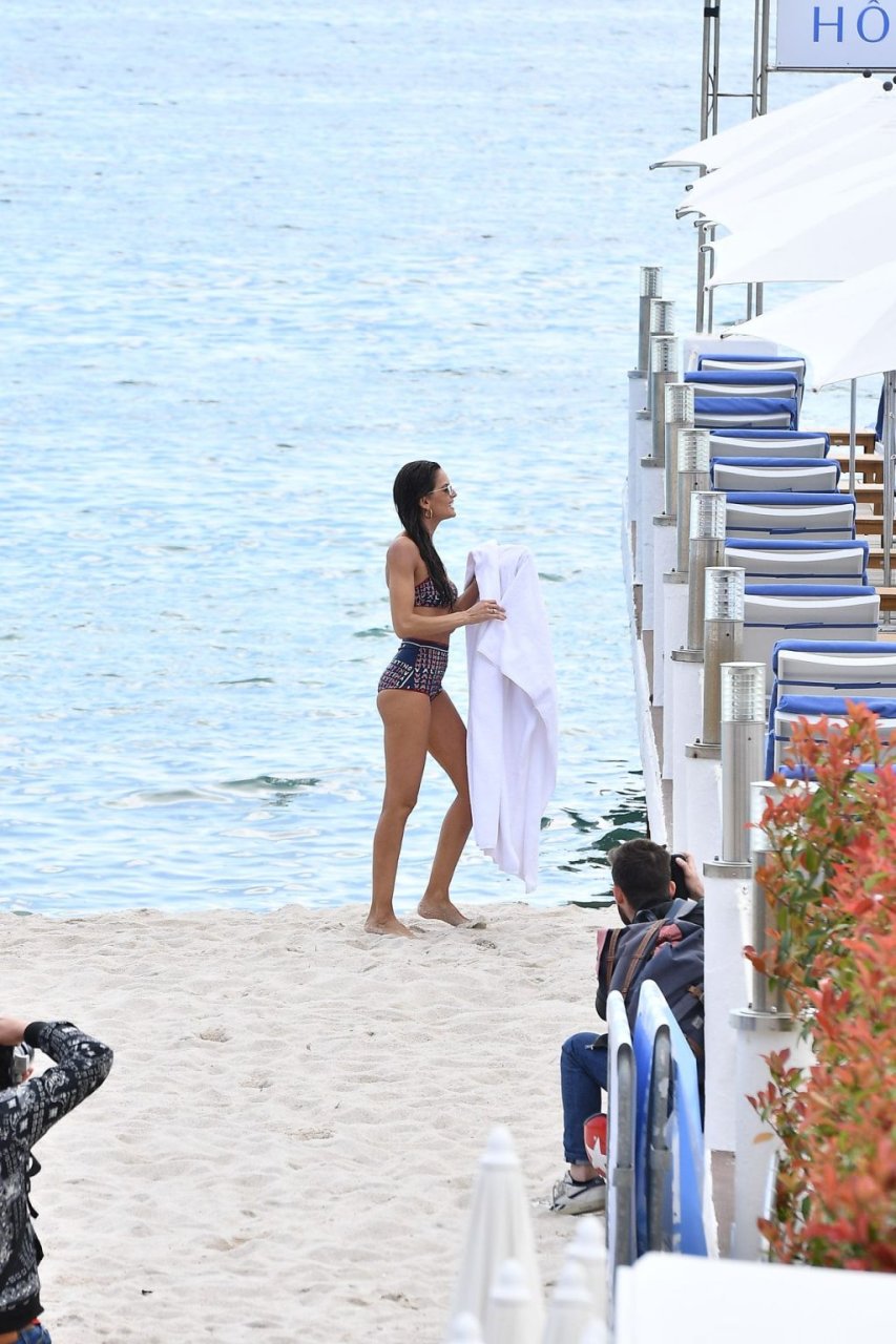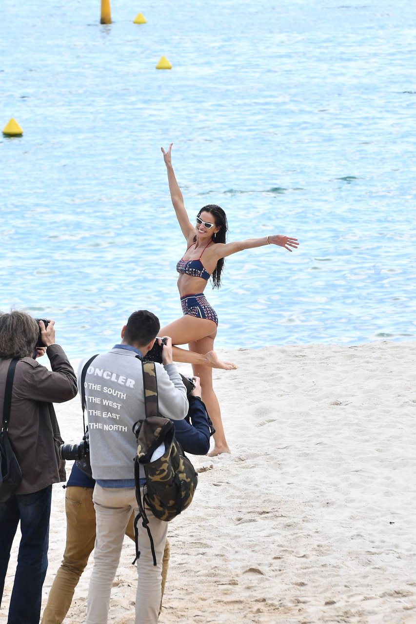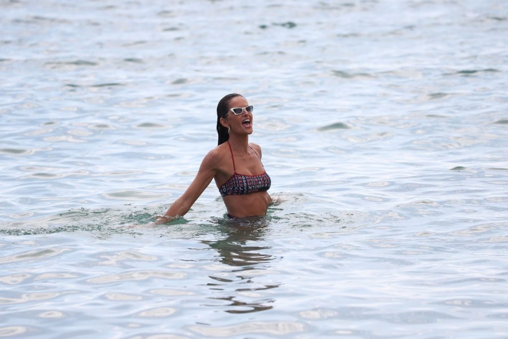 Le mannequin brésilien Izabel Goulart (34 ans) est vu sur la plage dans l’océan à la plage Martinez en bikini bleu Valentino à Cannes, France, le 15/05/2019. La femme magnifique a montré sa silhouette élancée à une douzaine de photographes.