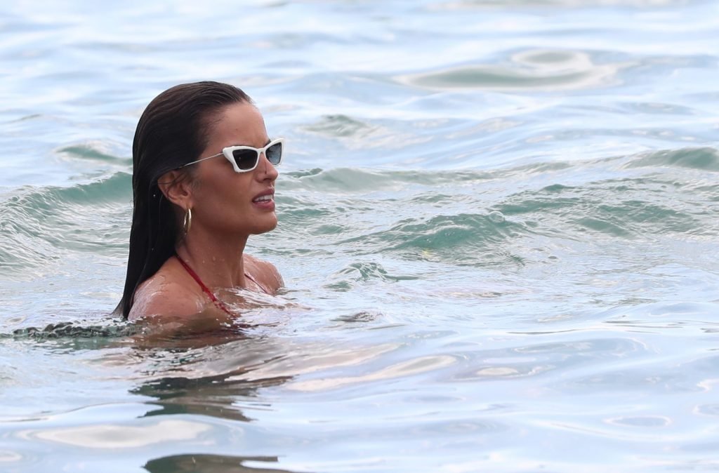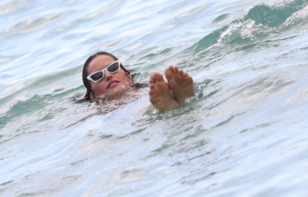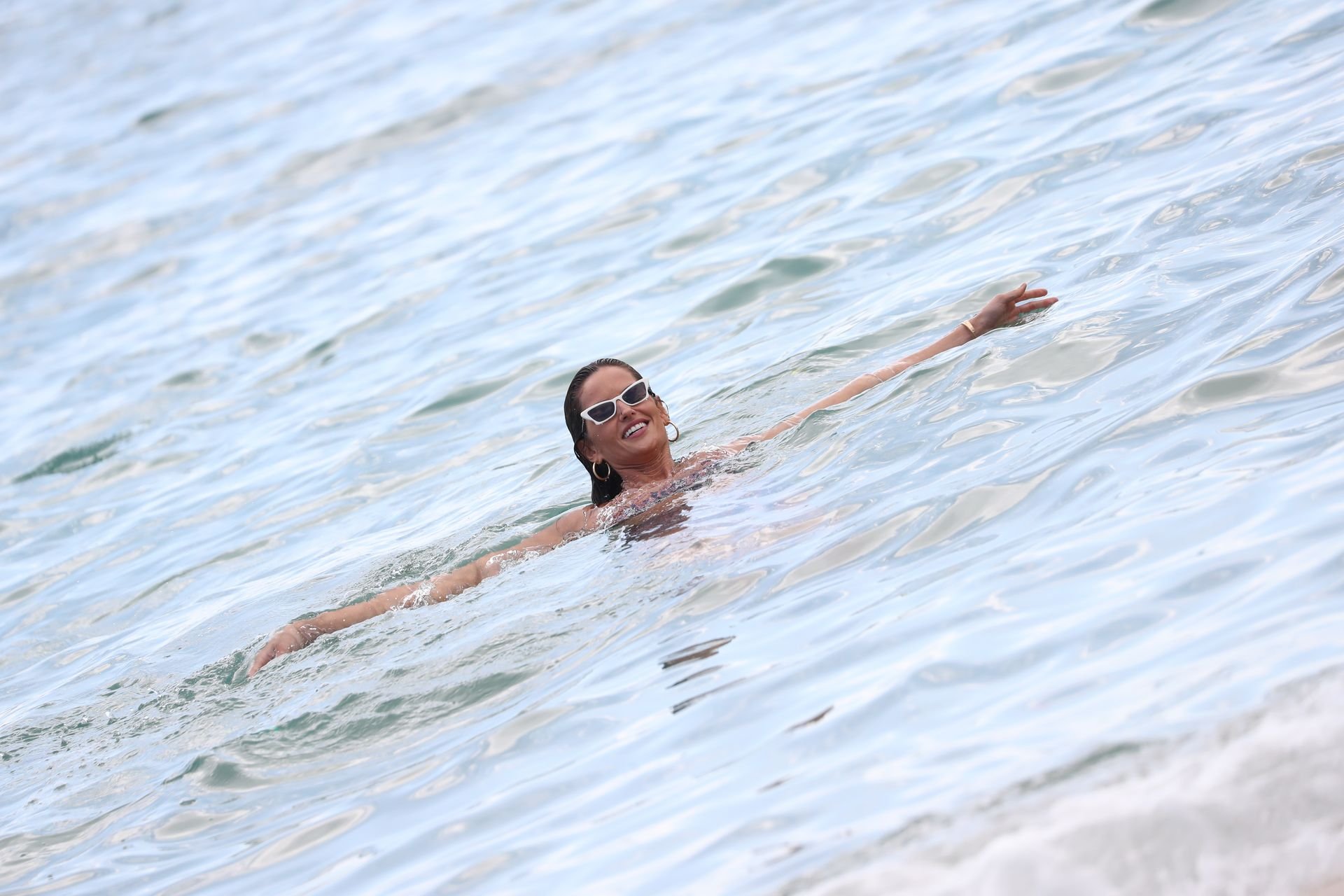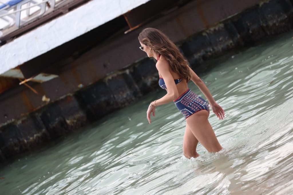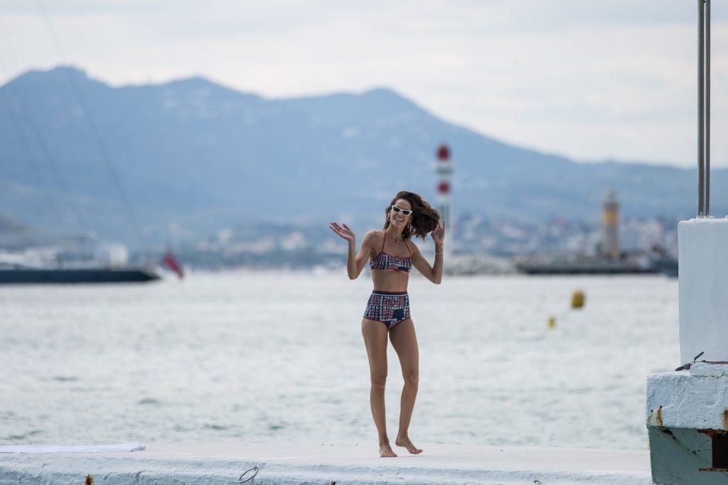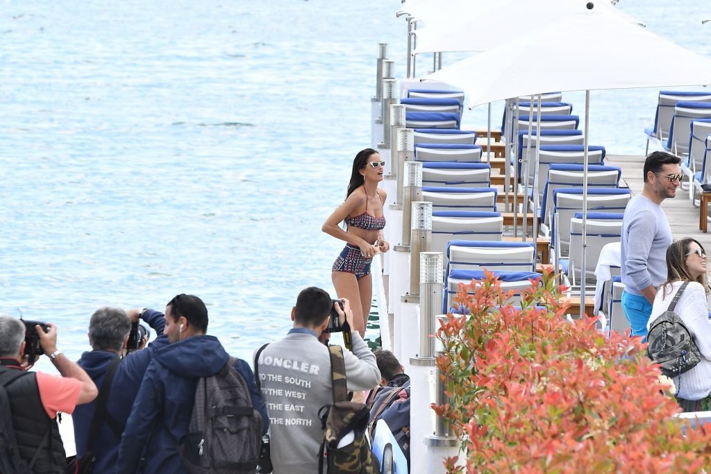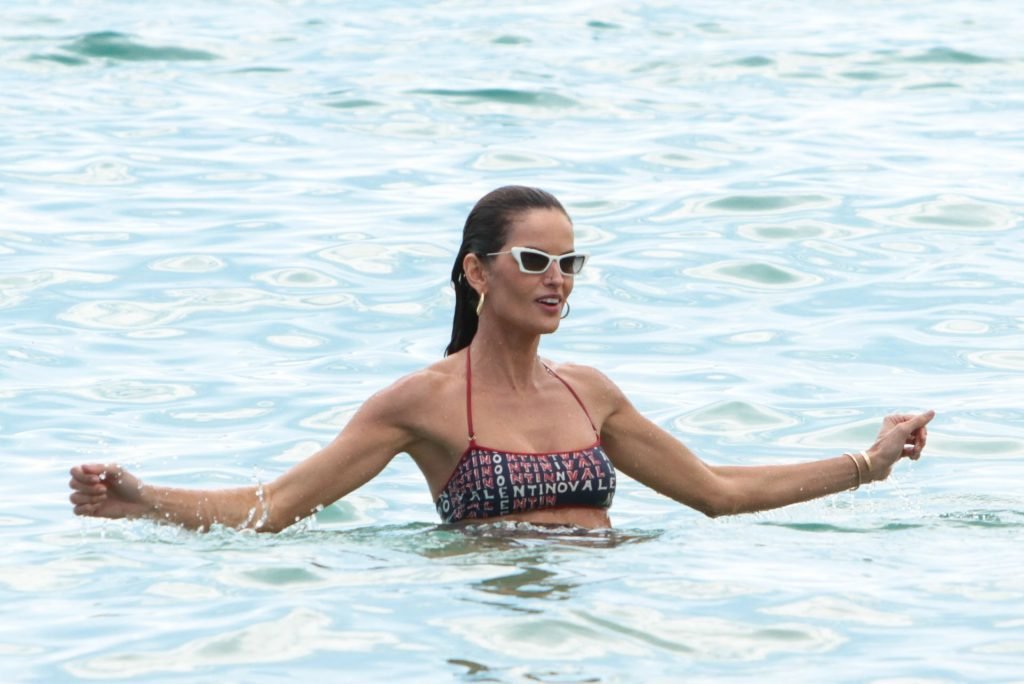 Le mannequin brésilien Izabel Goulart (34 ans) est vu sur la plage dans l’océan à la plage Martinez en bikini bleu Valentino à Cannes, France, le 15/05/2019. La femme magnifique a montré sa silhouette élancée à une douzaine de photographes.