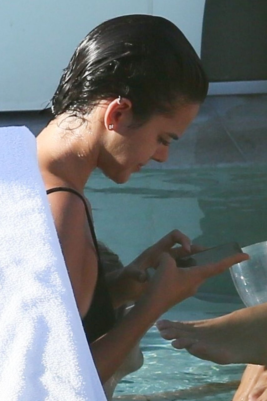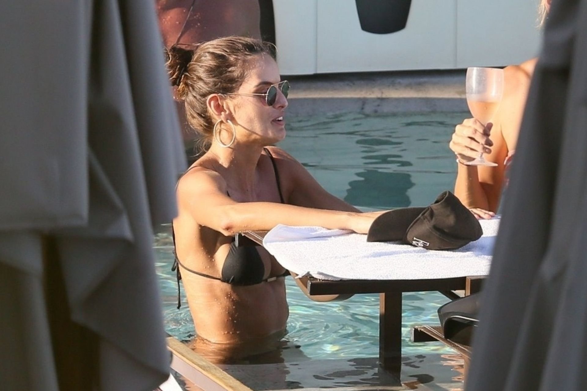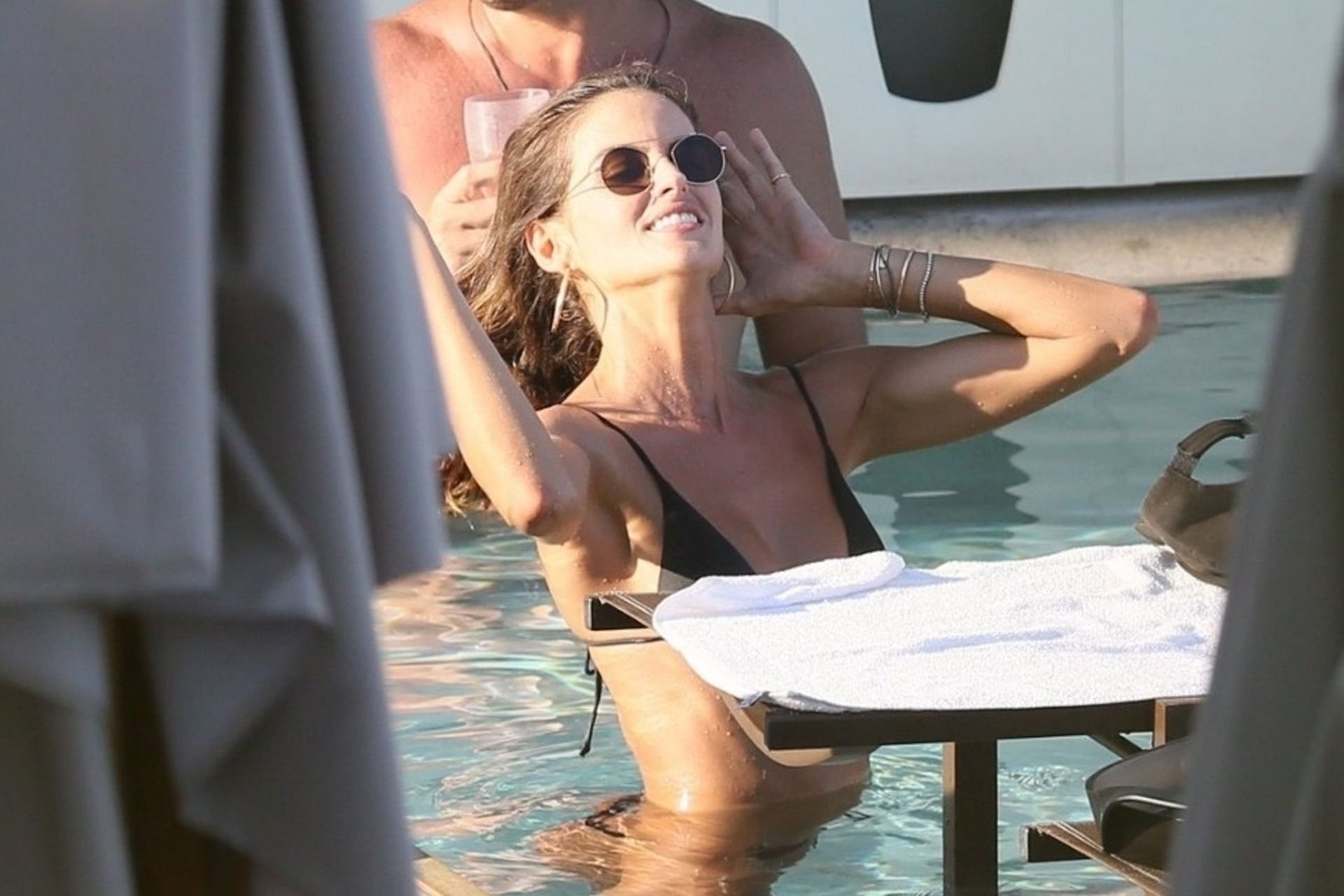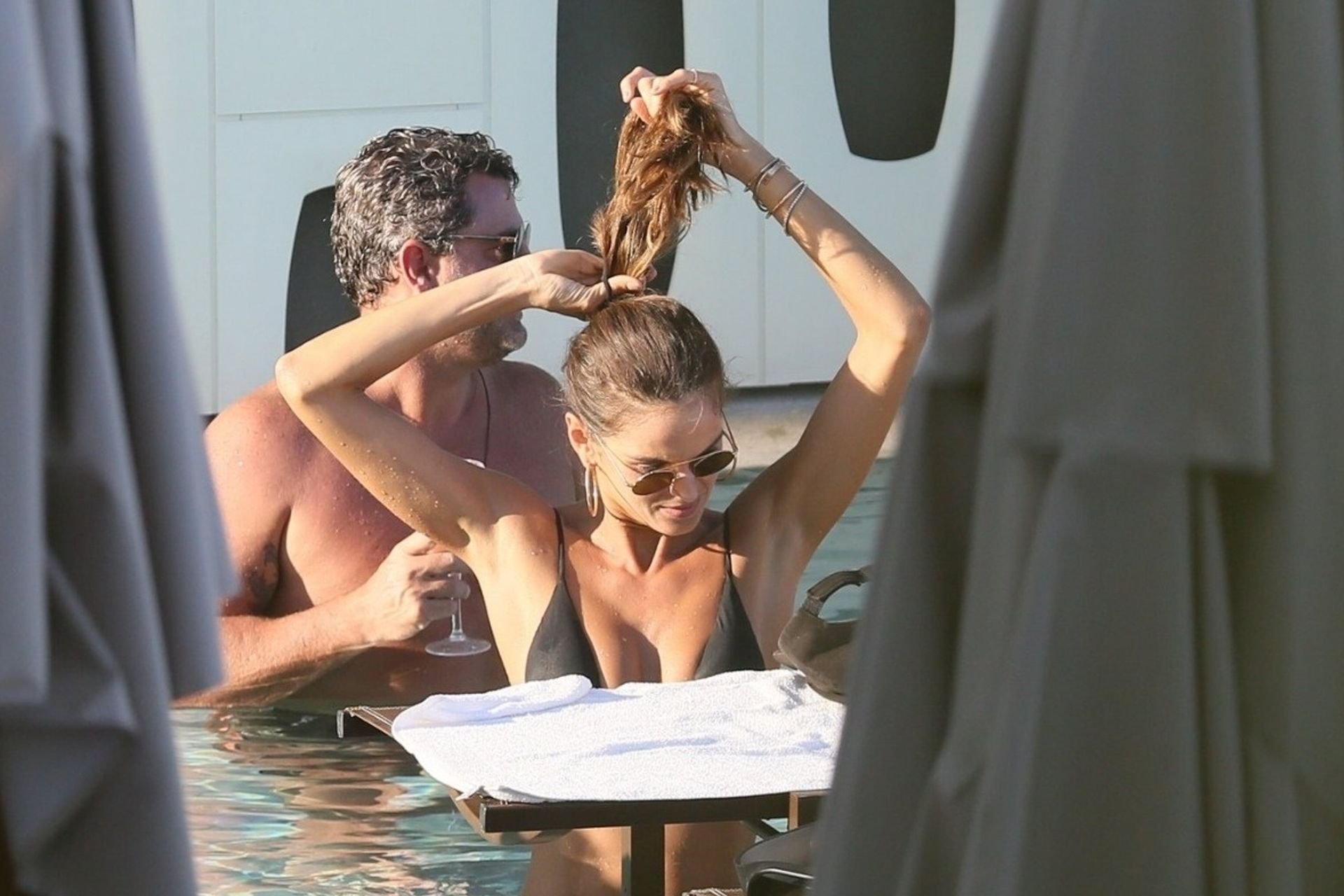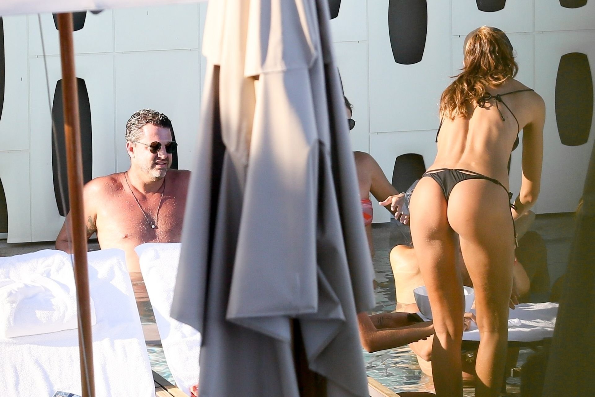 Le mannequin Izabel Goulart profite d’un moment de détente après avoir fait la fête pendant les festivités du Carnaval à Rio, le 08/03/2019. La mince beauté a montré son petit et doux derrière dans la piscine avec des amis.