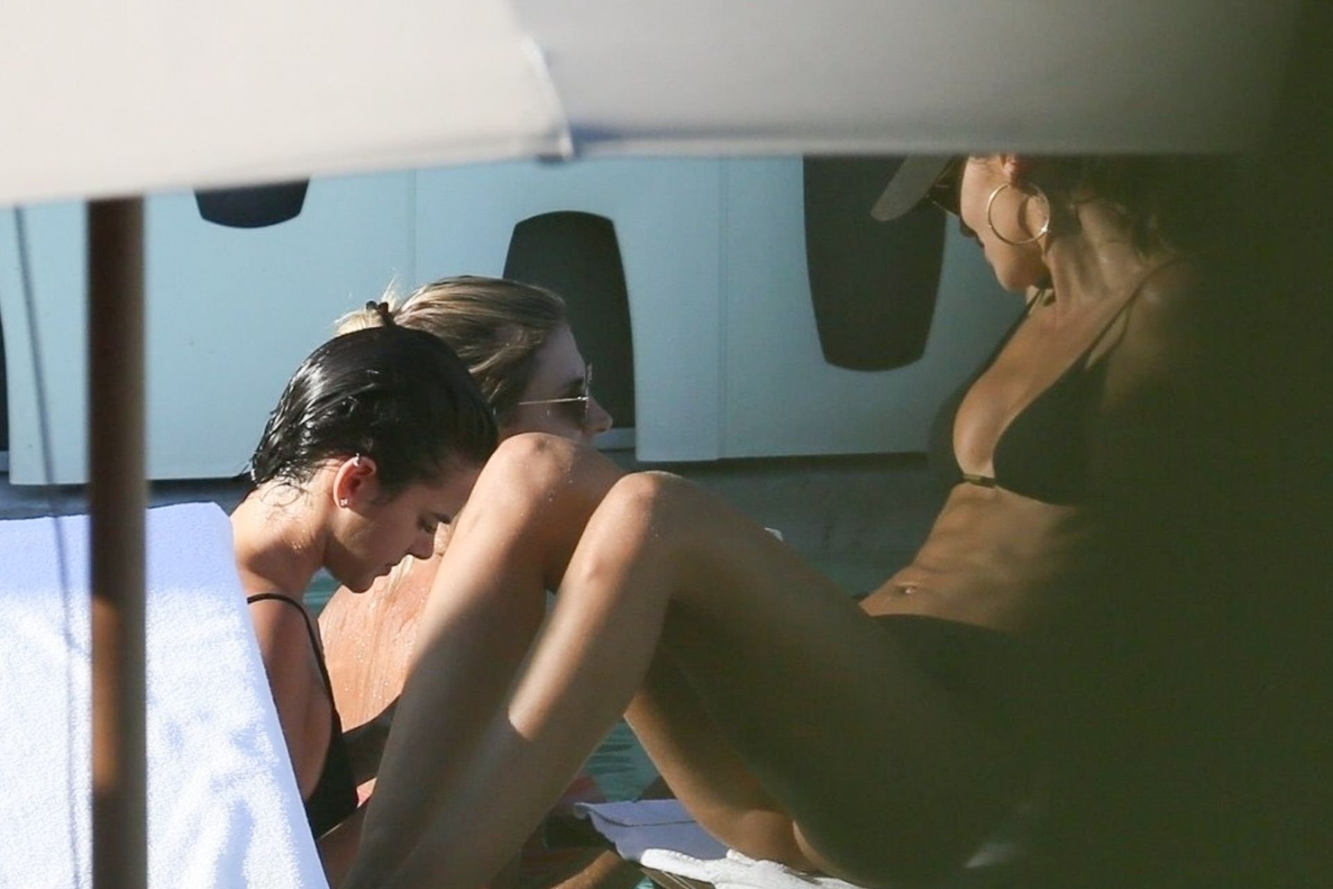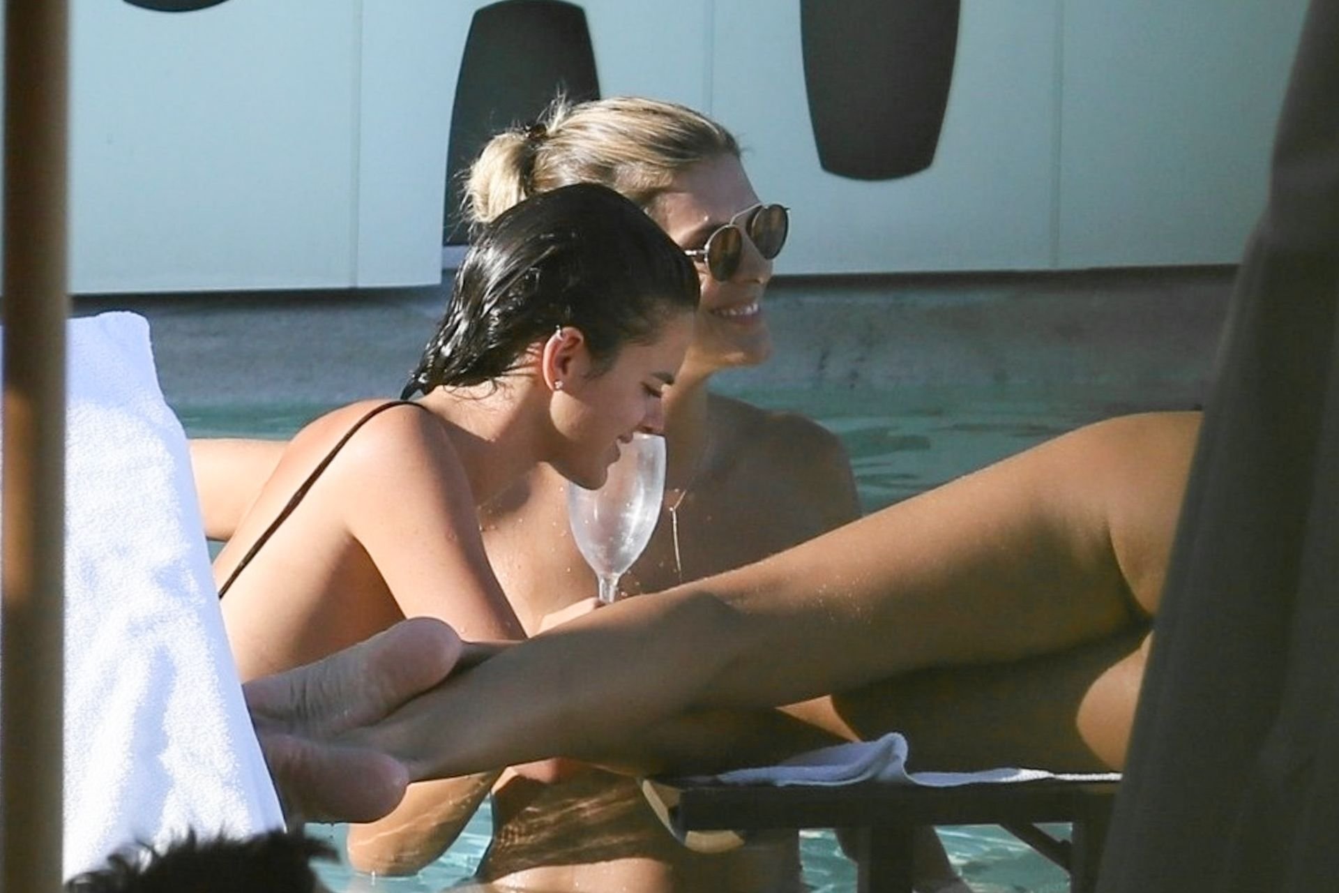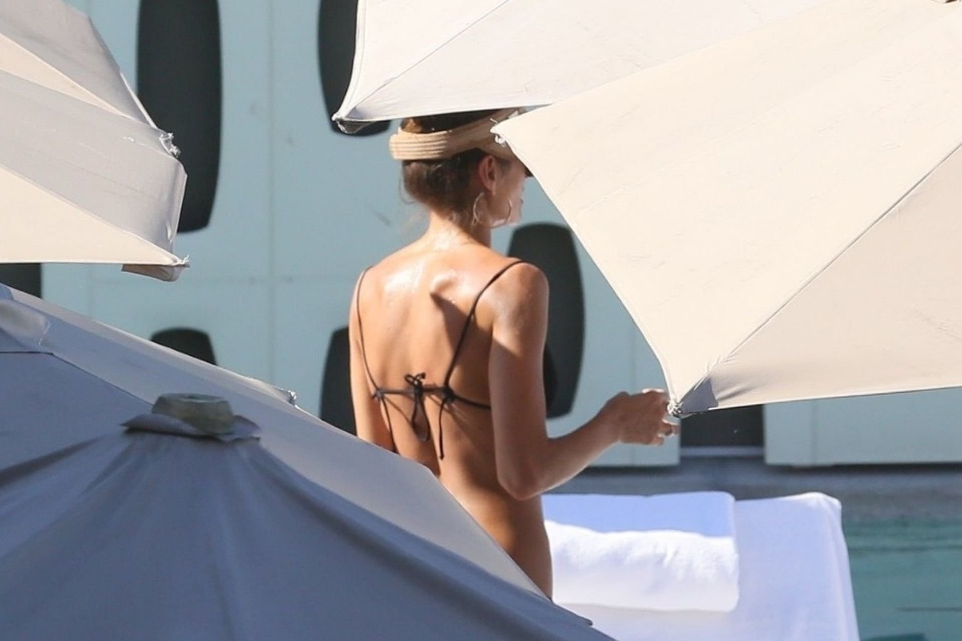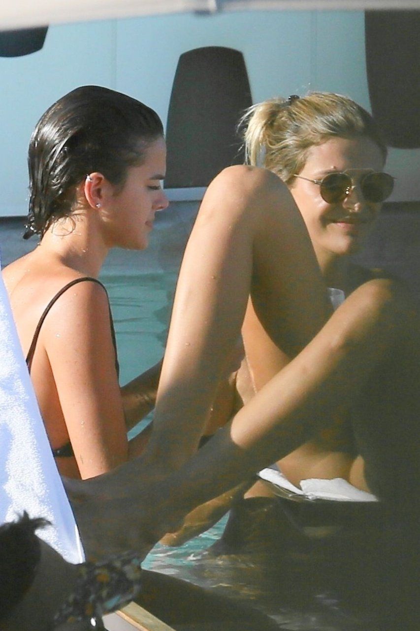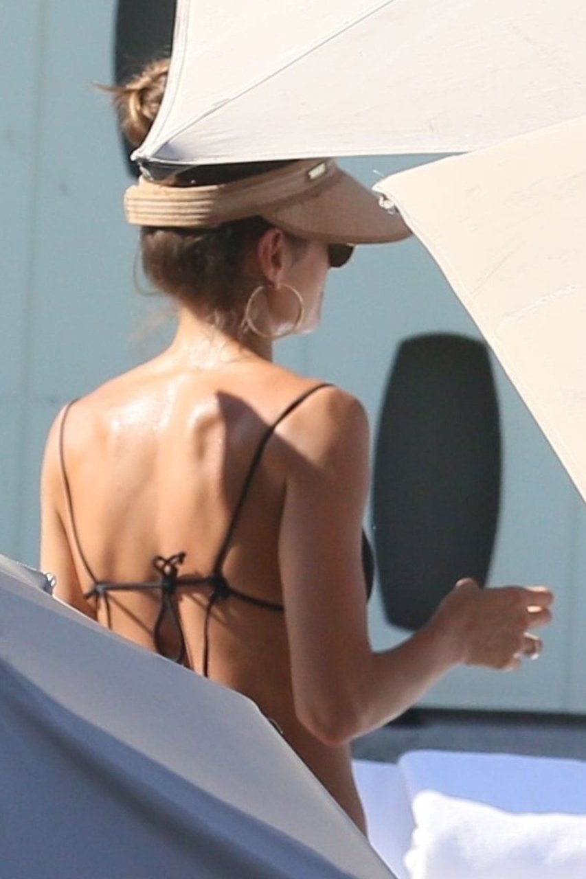 Le mannequin Izabel Goulart profite d’un moment de détente après avoir fait la fête pendant les festivités du Carnaval à Rio, le 08/03/2019. La mince beauté a montré son petit et doux derrière dans la piscine avec des amis.