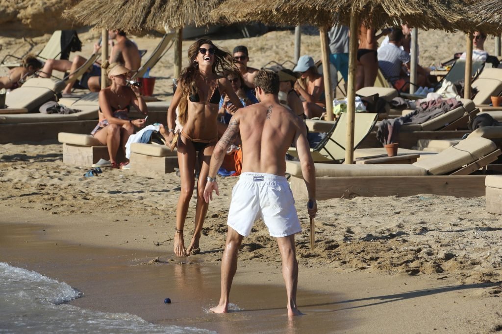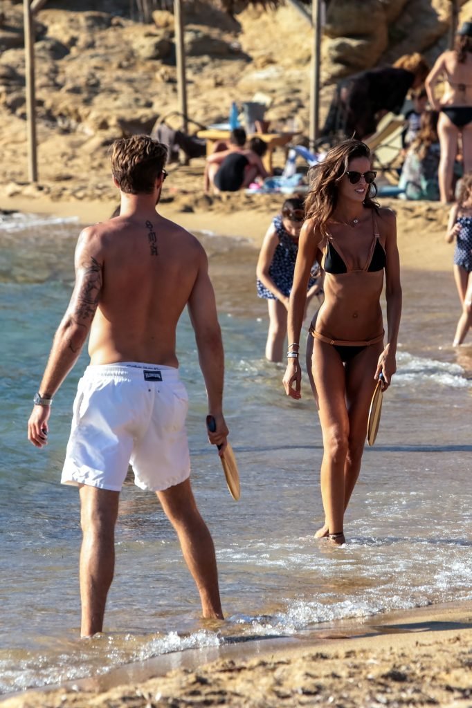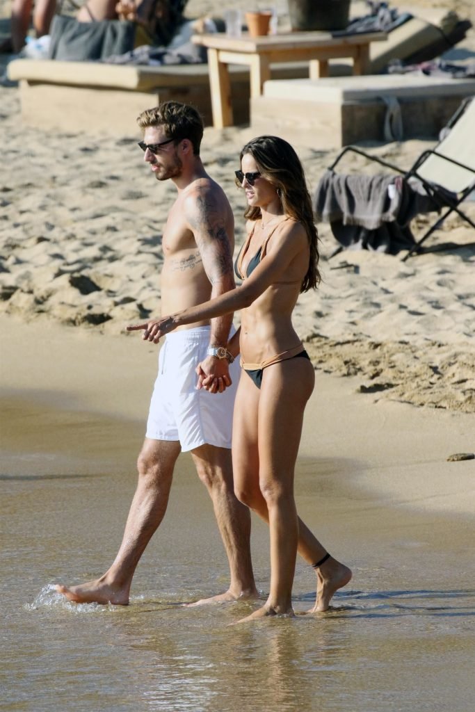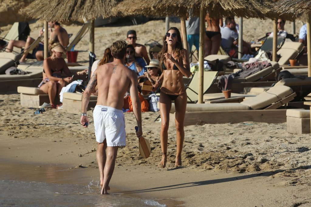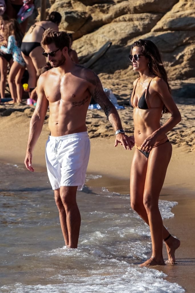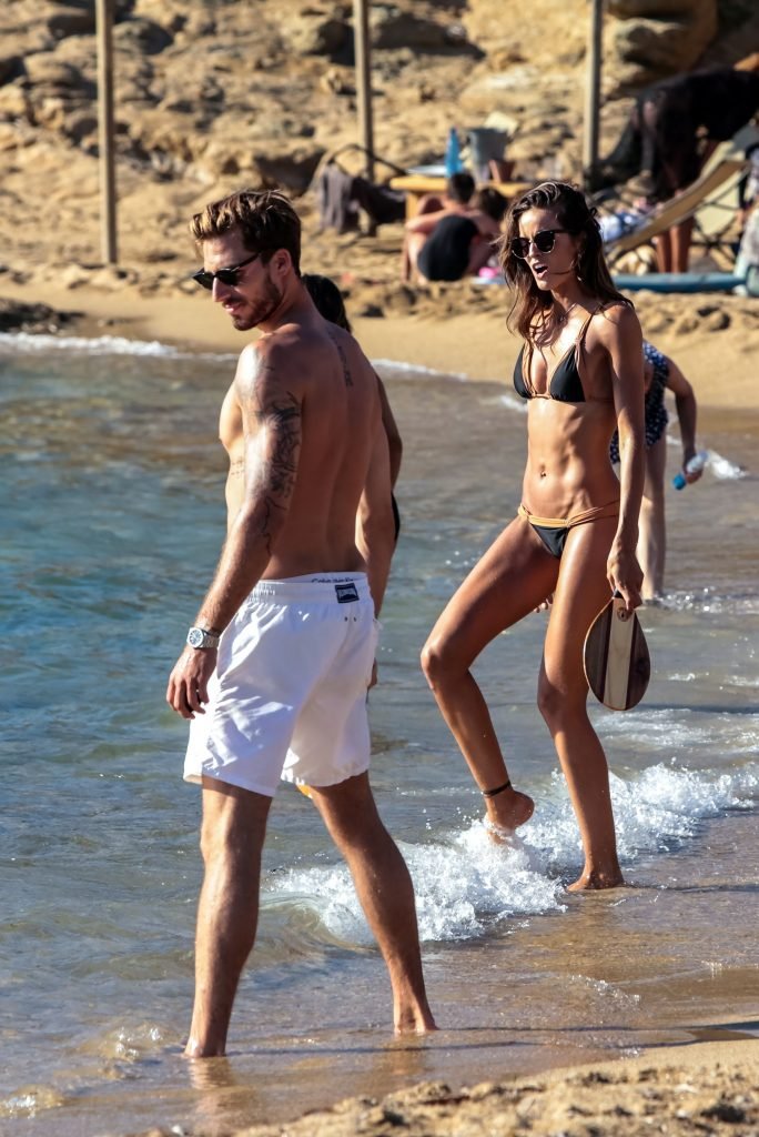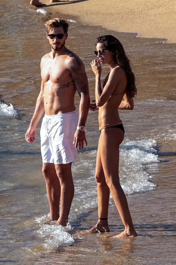 La mannequin brésilienne de 32 ans Izabel Goulart et Kevin Trapp profitent de leurs vacances à Mykonos, 10/07/2017.