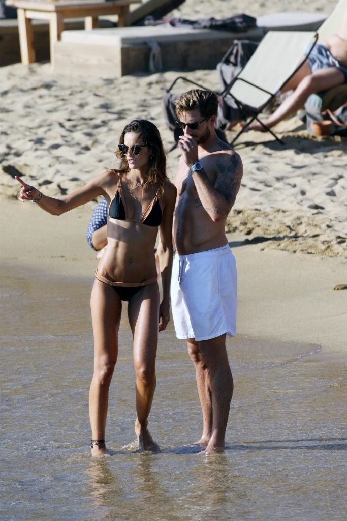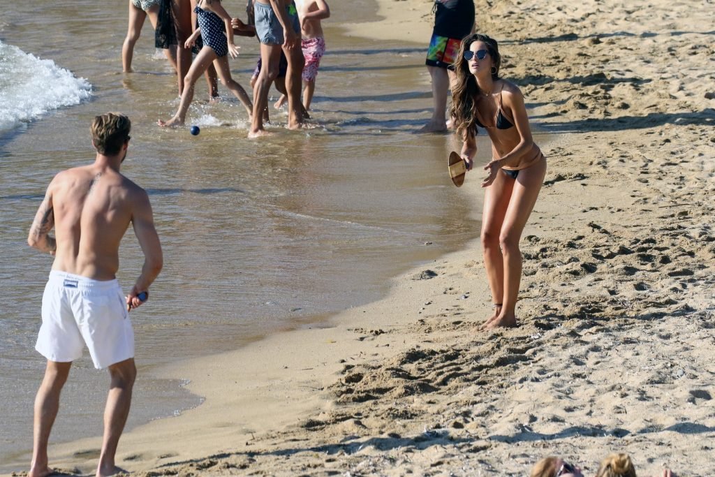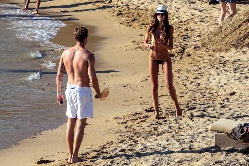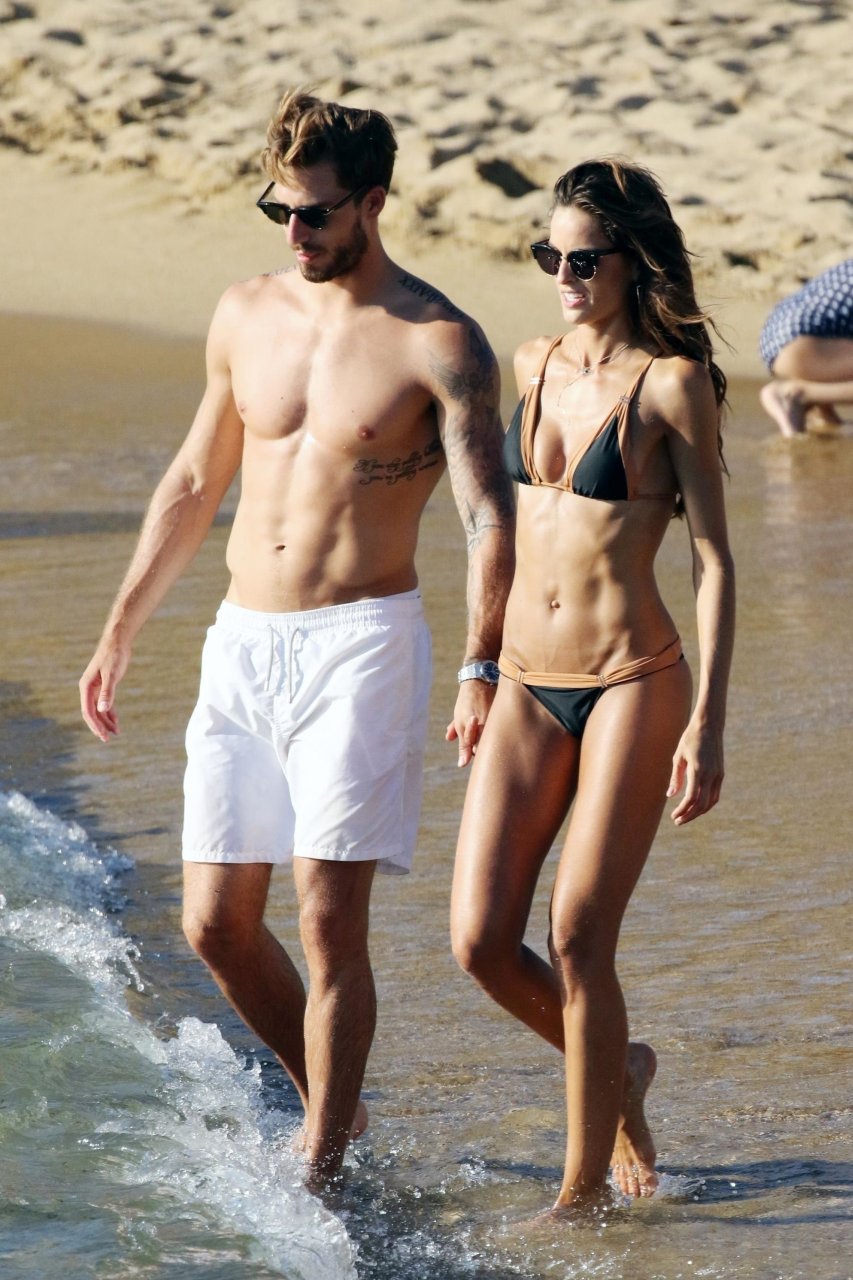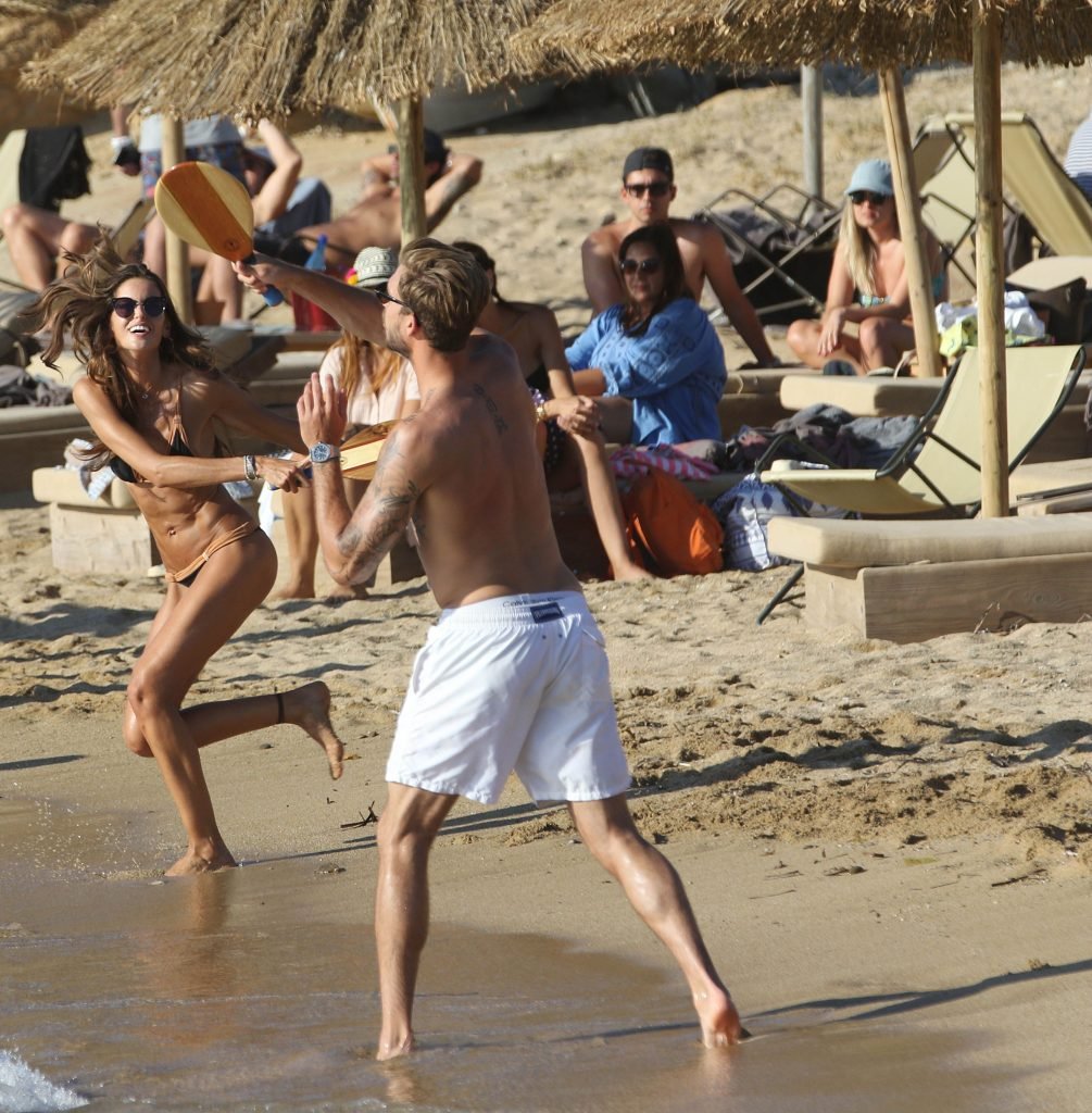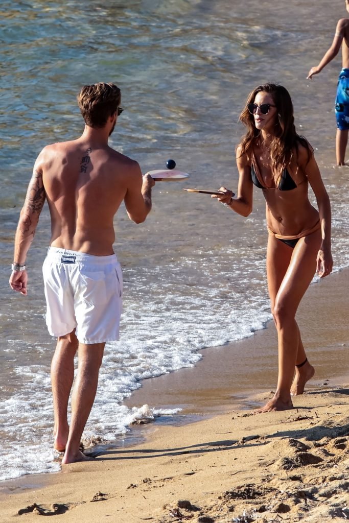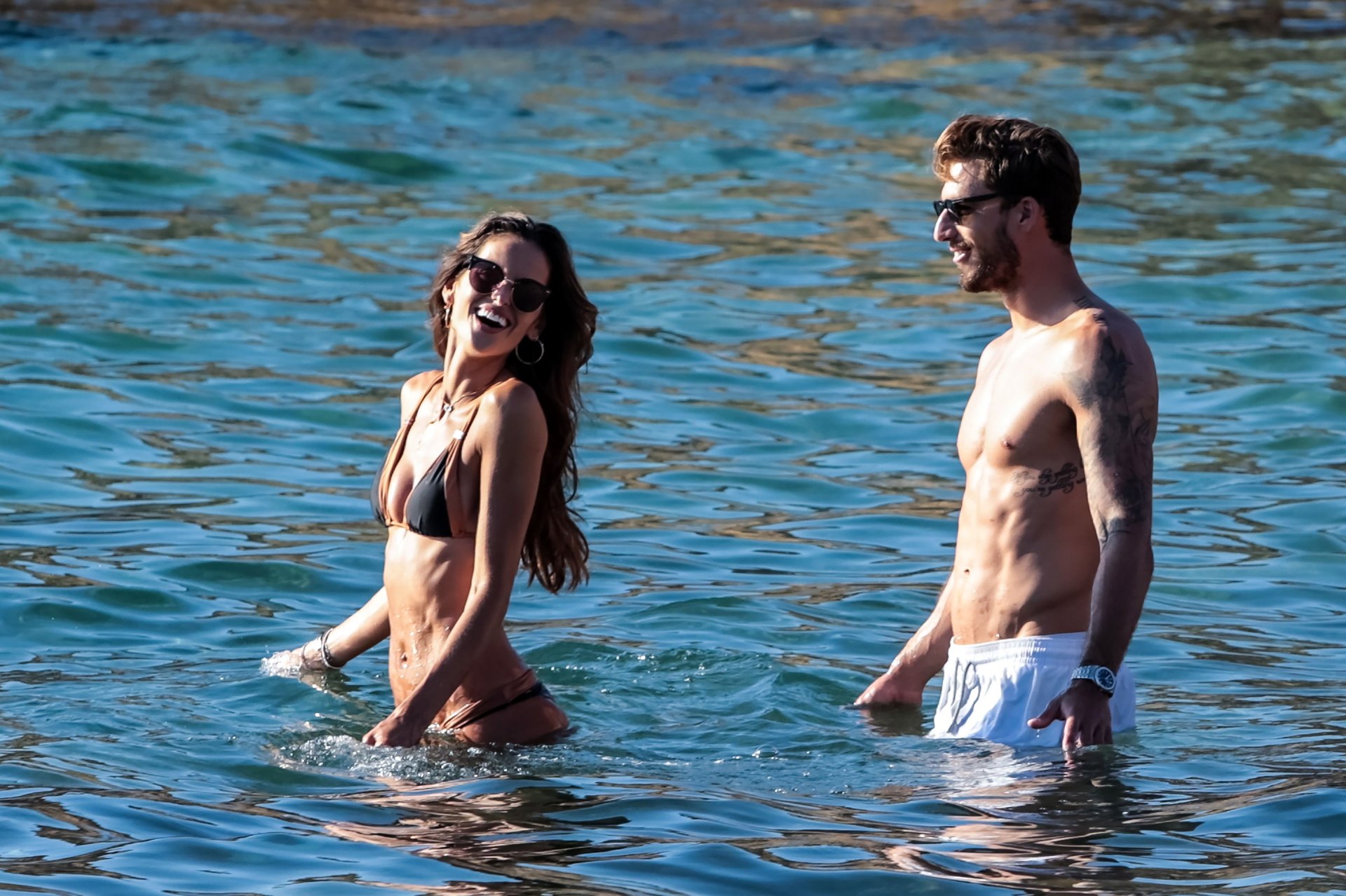 La mannequin brésilienne de 32 ans Izabel Goulart et Kevin Trapp profitent de leurs vacances à Mykonos, 10/07/2017.