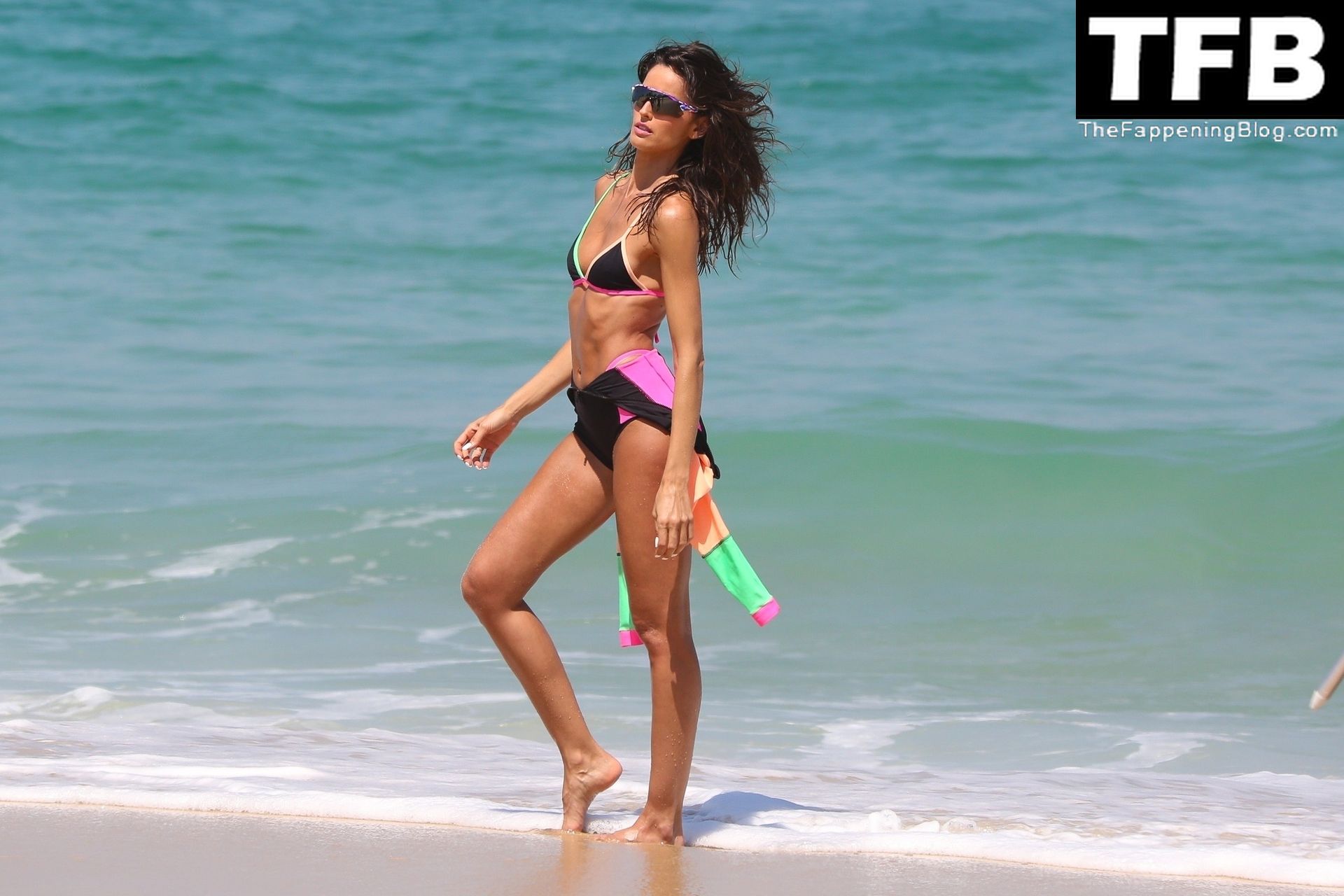 Izabel Goulart, 37 ans, exhibe ses marques de bronzage dans un tout petit bikini lors d’une séance photo à Rio, 02/04/2022.