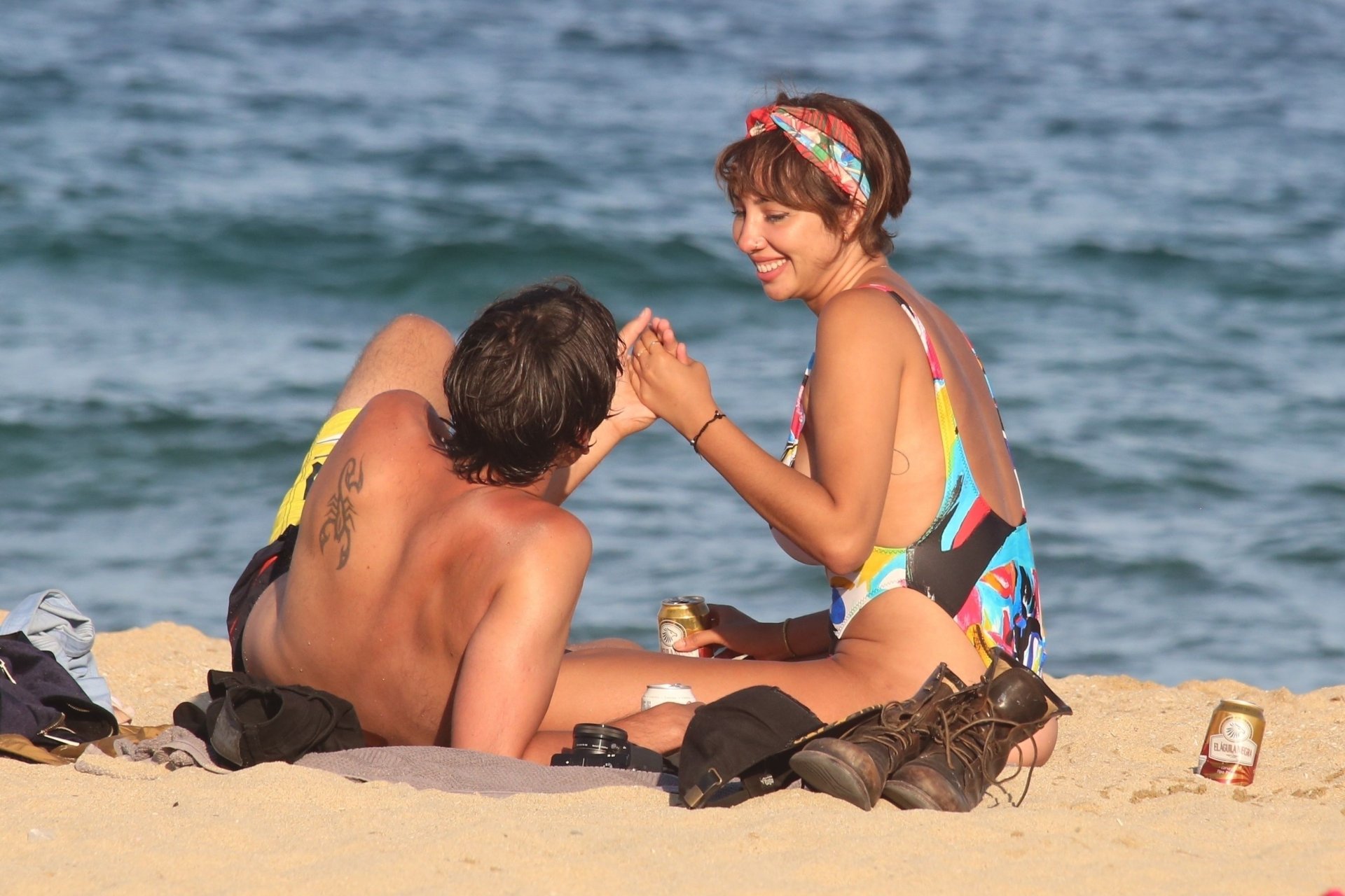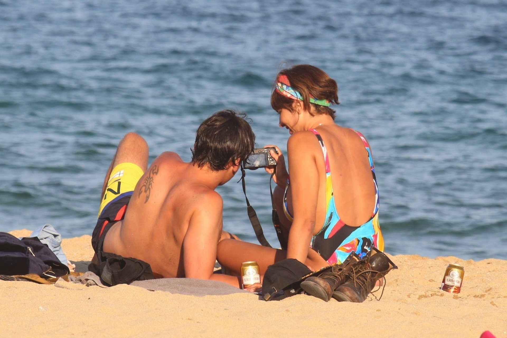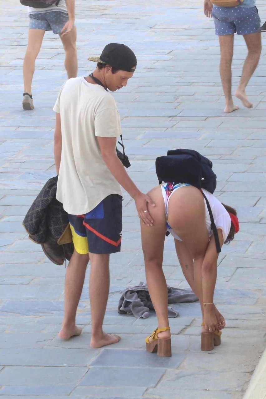 Je la trouve sexy mais pas cette fois, ce maillot de bain n'est pas un bon choix. Ses seins sont exposés car ils sont tombants, et ses fesses ne sont pas faites pour un string, trop de cellulite.