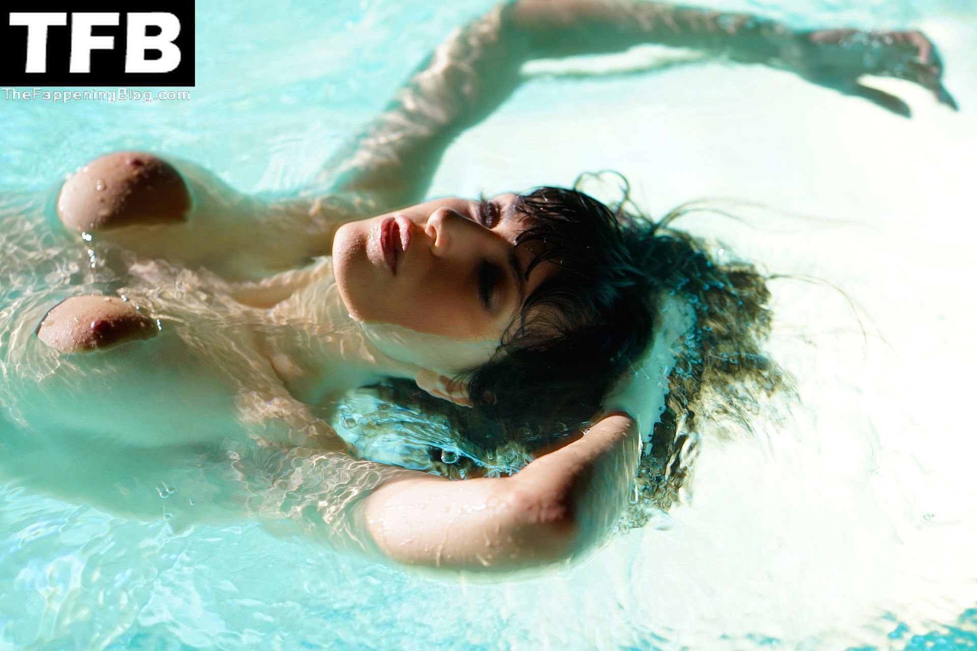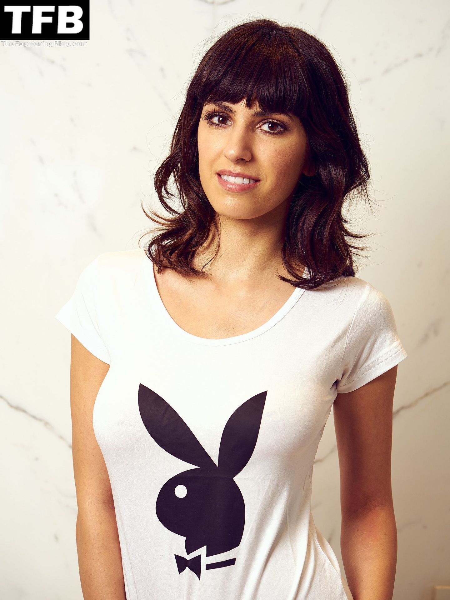 Voici la nouvelle collection de Jacqueline Scherer, comprenant ses photos en lingerie et nues, en pleine frontalité, seins nus pour Playboy.