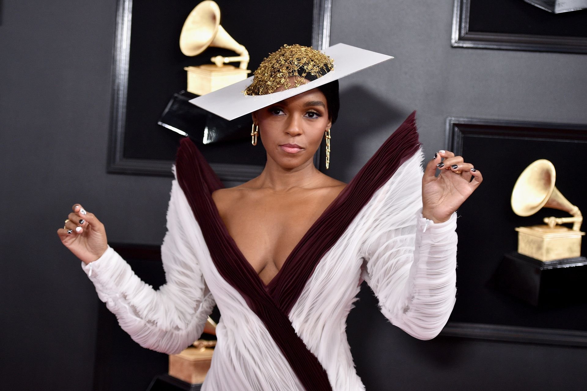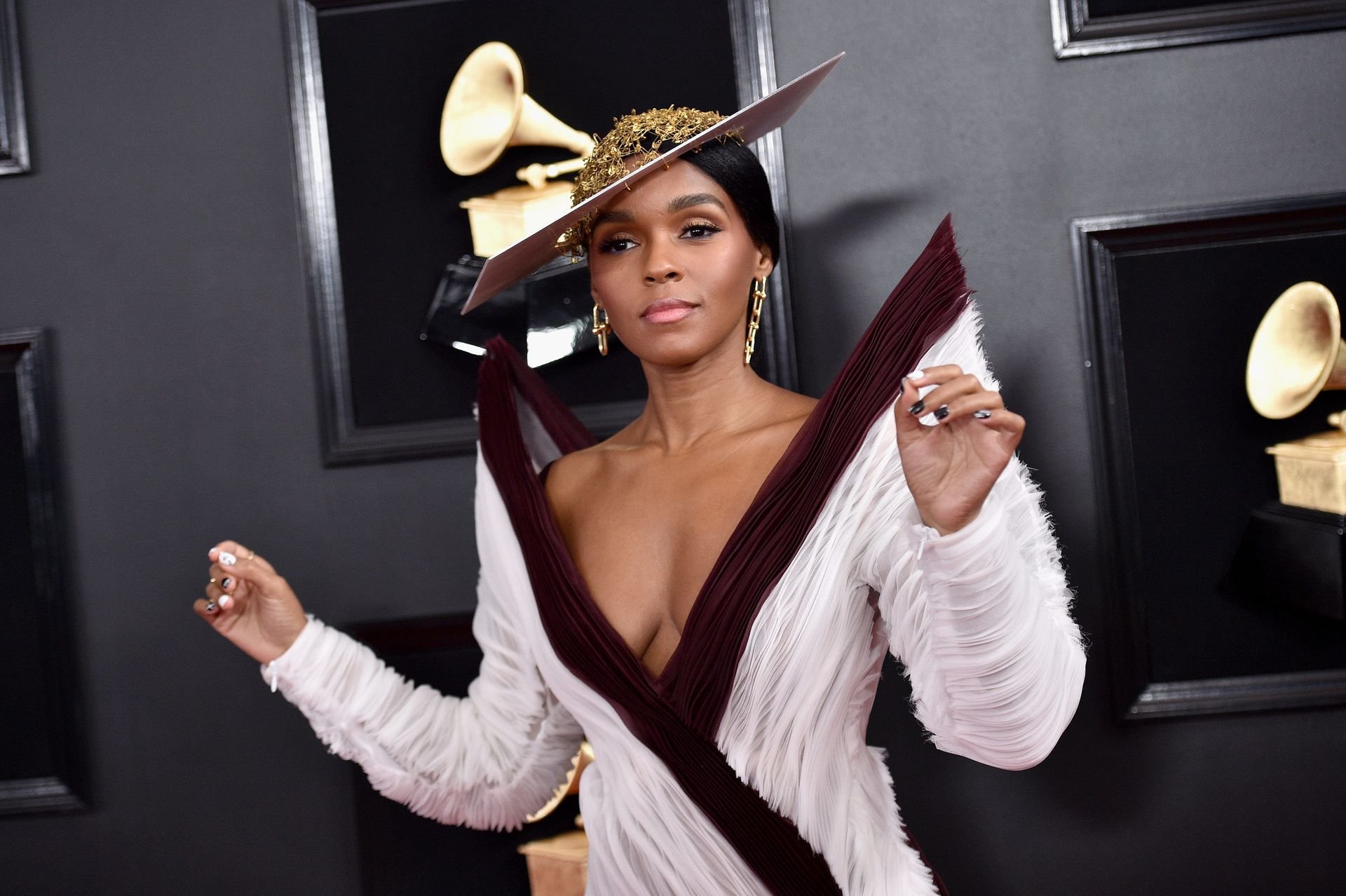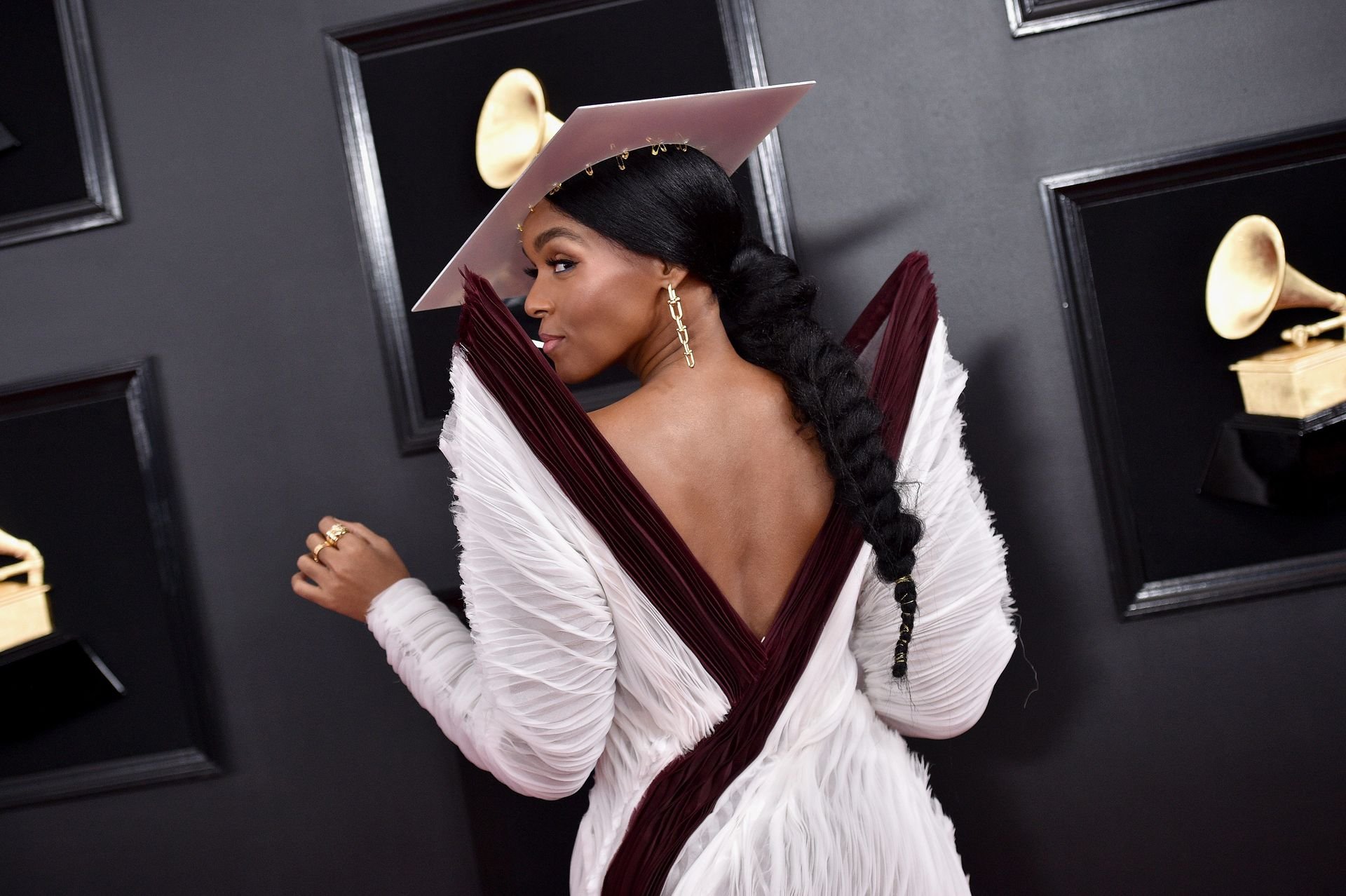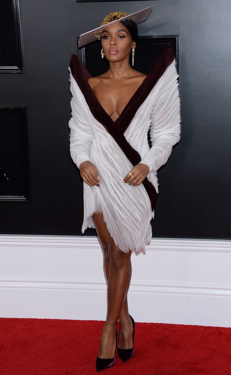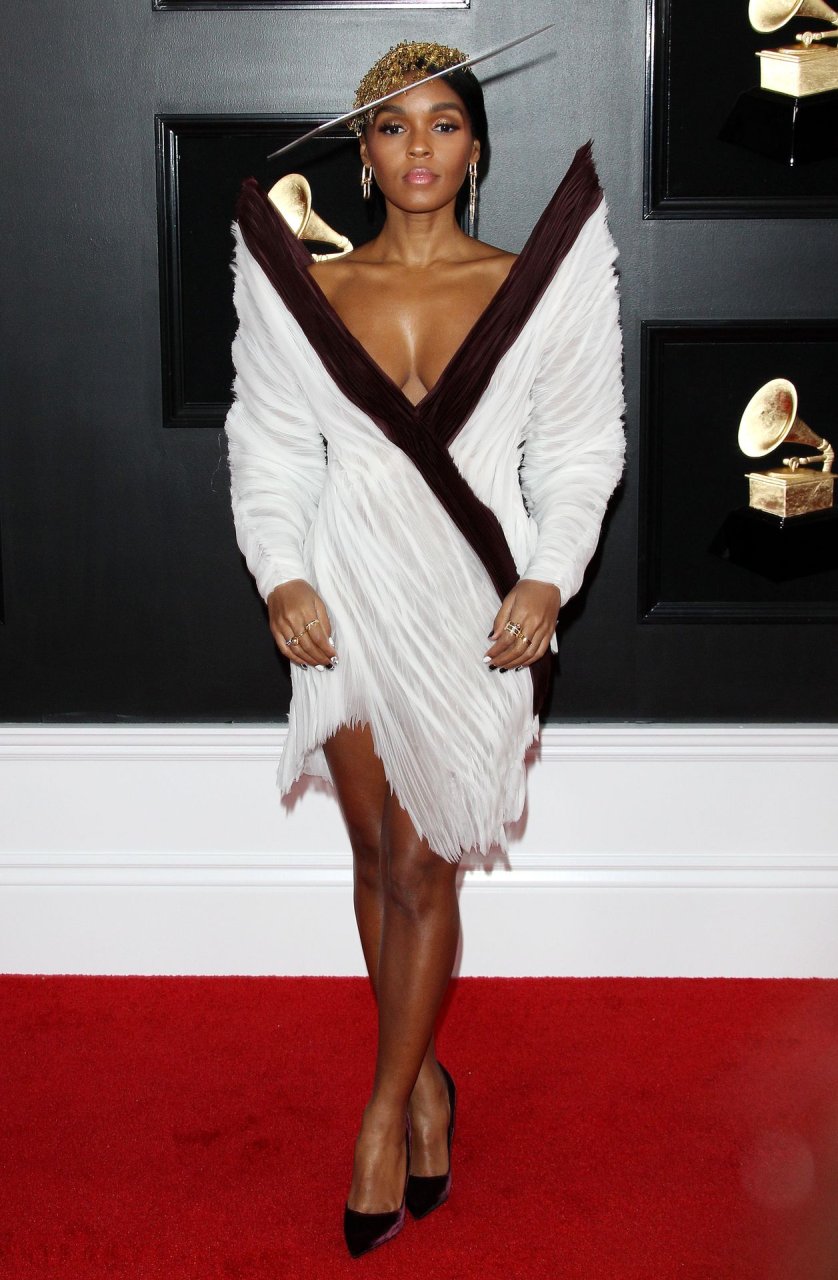 Janelle Monae affiche son décolleté en portant une robe étrange lors de la 61e cérémonie annuelle des Grammy Awards à Los Angeles, le 10/02/2019.