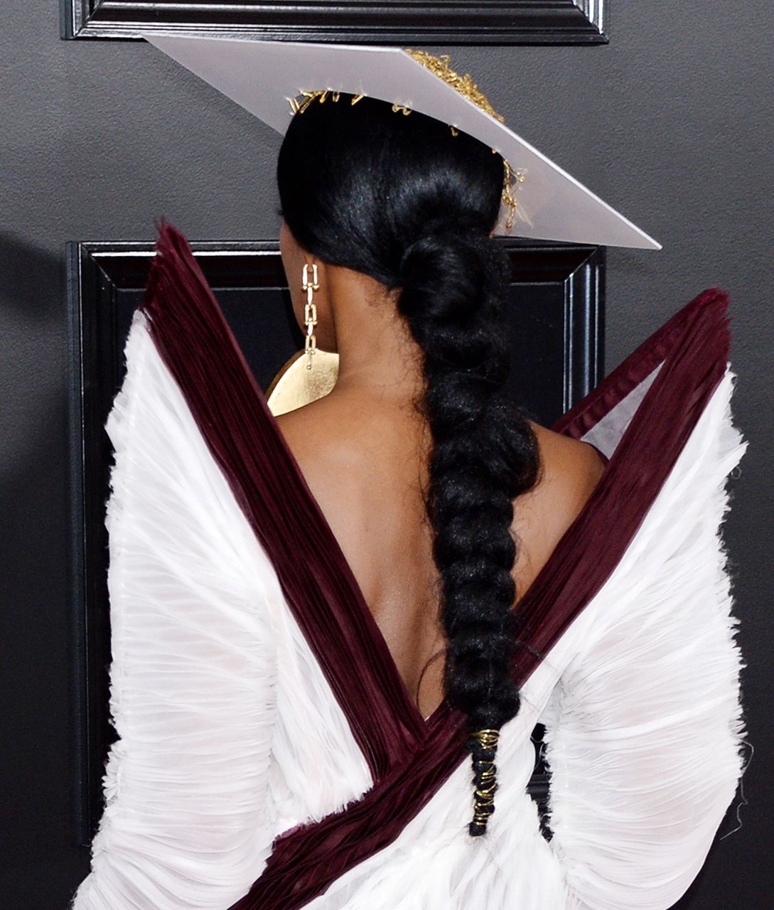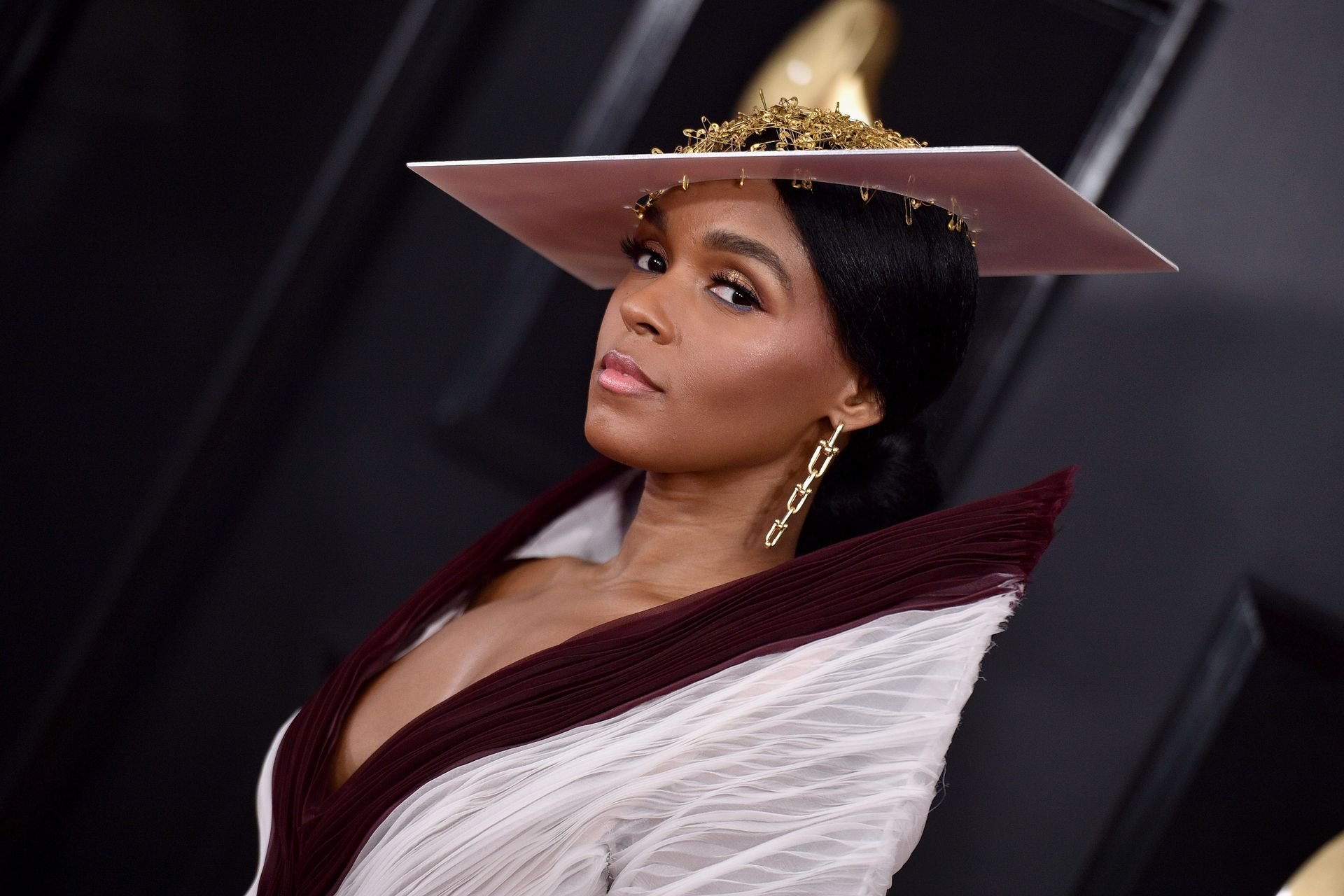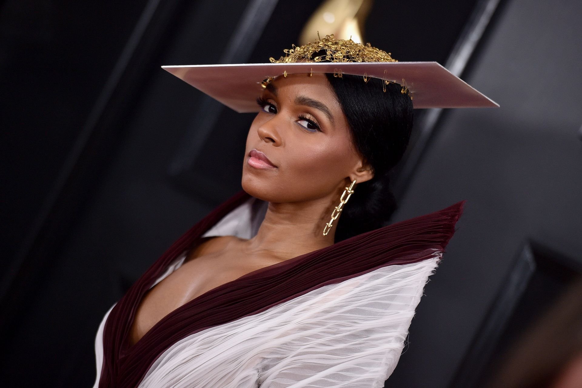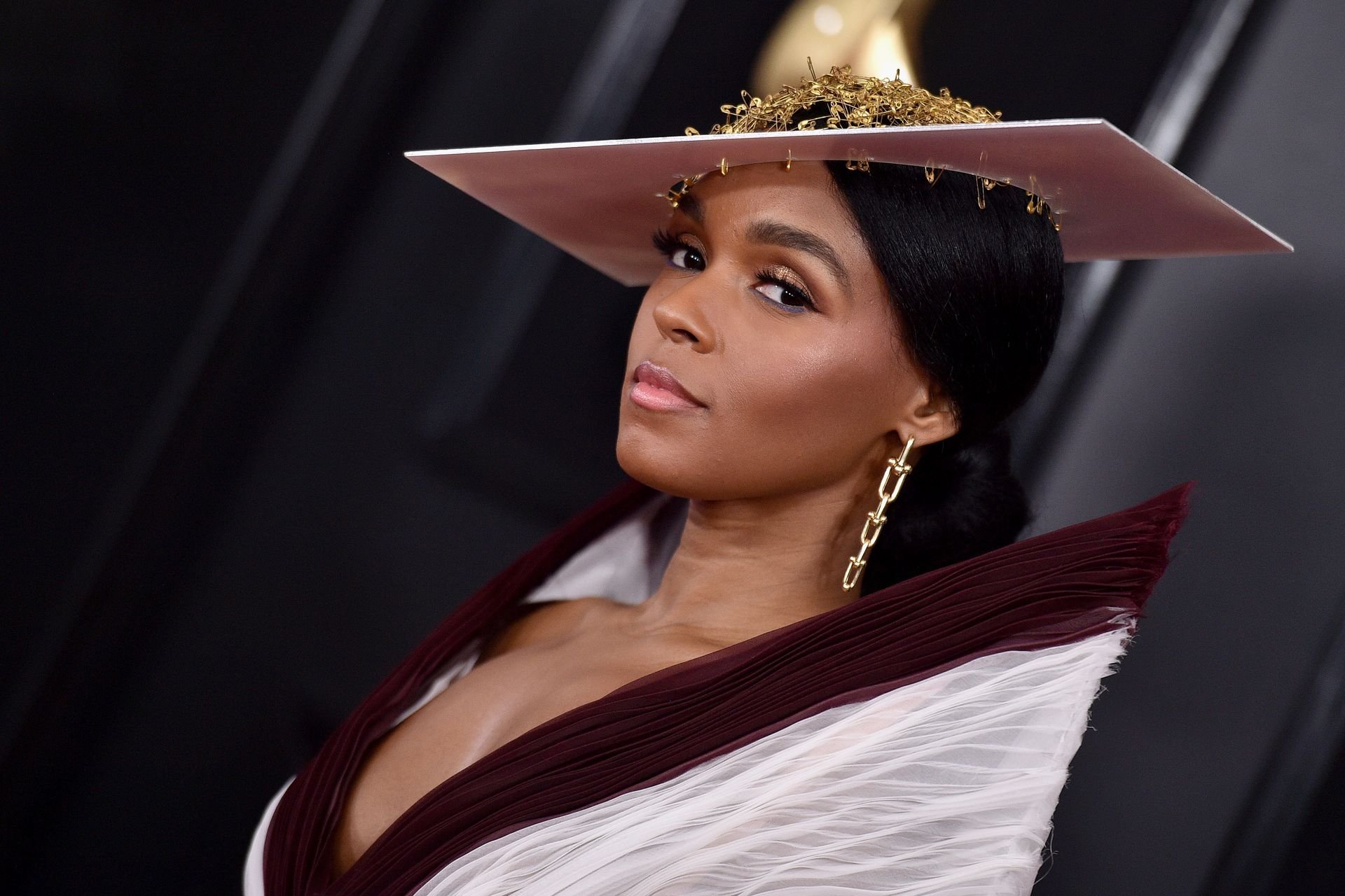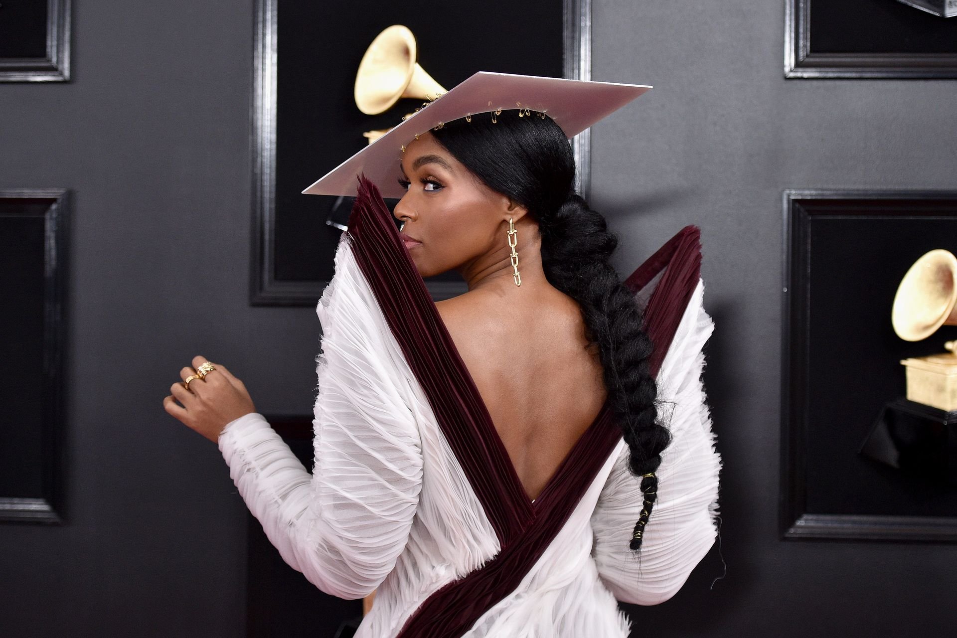Janelle Monae affiche son décolleté en portant une robe étrange lors de la 61e cérémonie annuelle des Grammy Awards à Los Angeles, le 10/02/2019.