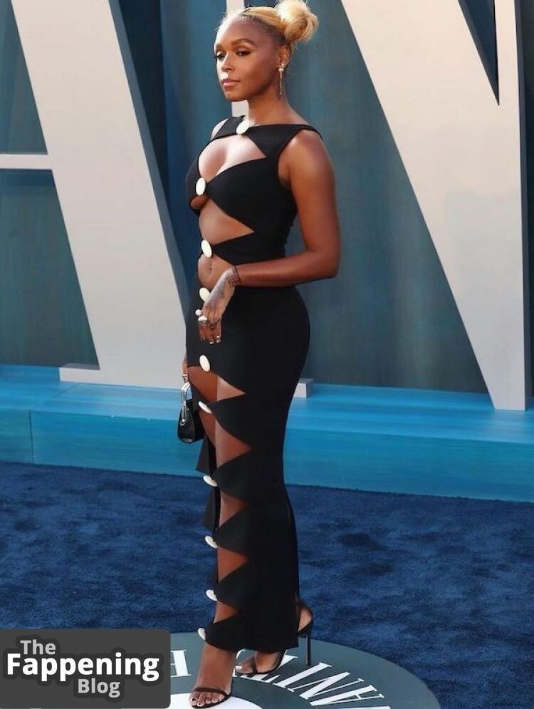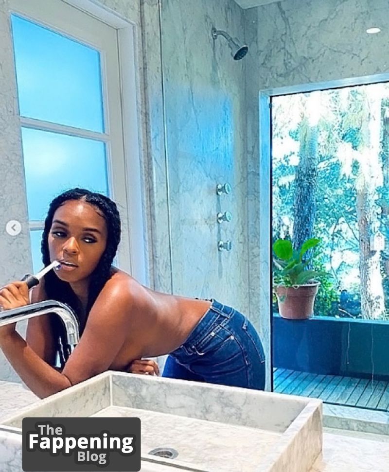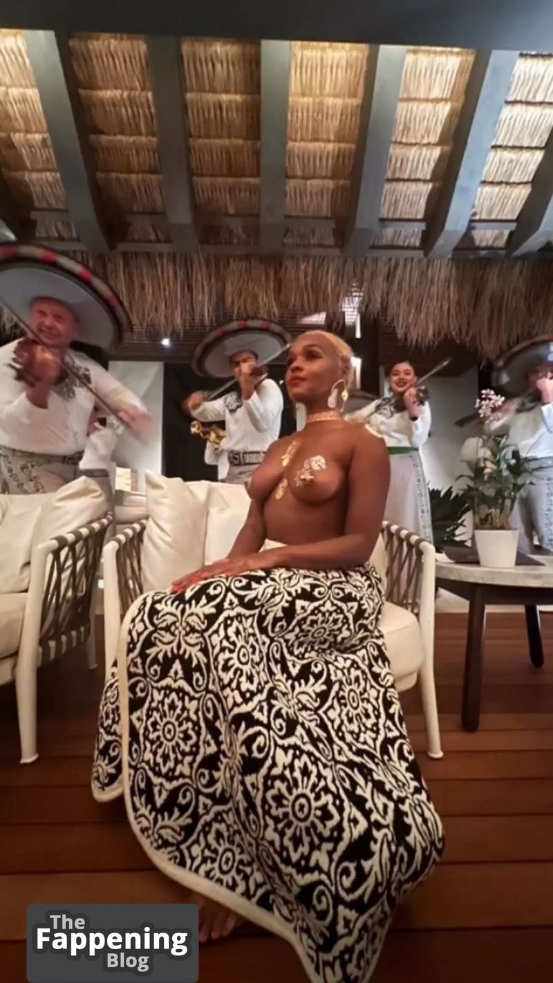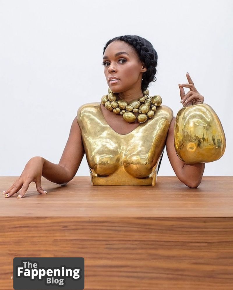 La collection de Janelle Monae est remplie de contenu explicite, présentant des clichés topless montrant ses seins, un décolleté généreux sans soutien-gorge, des fesses exposées, et son corps de mannequin serré dans des tenues révélatrices.