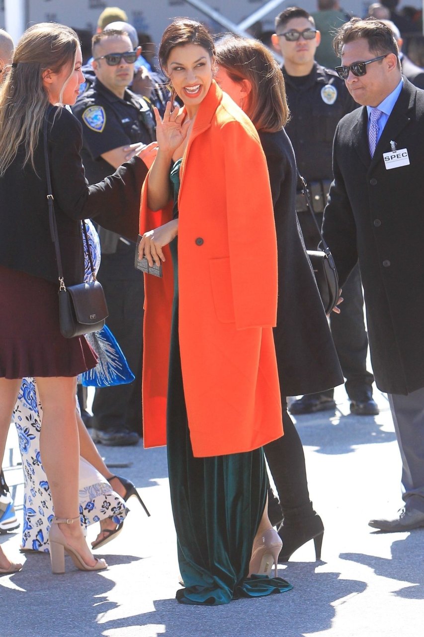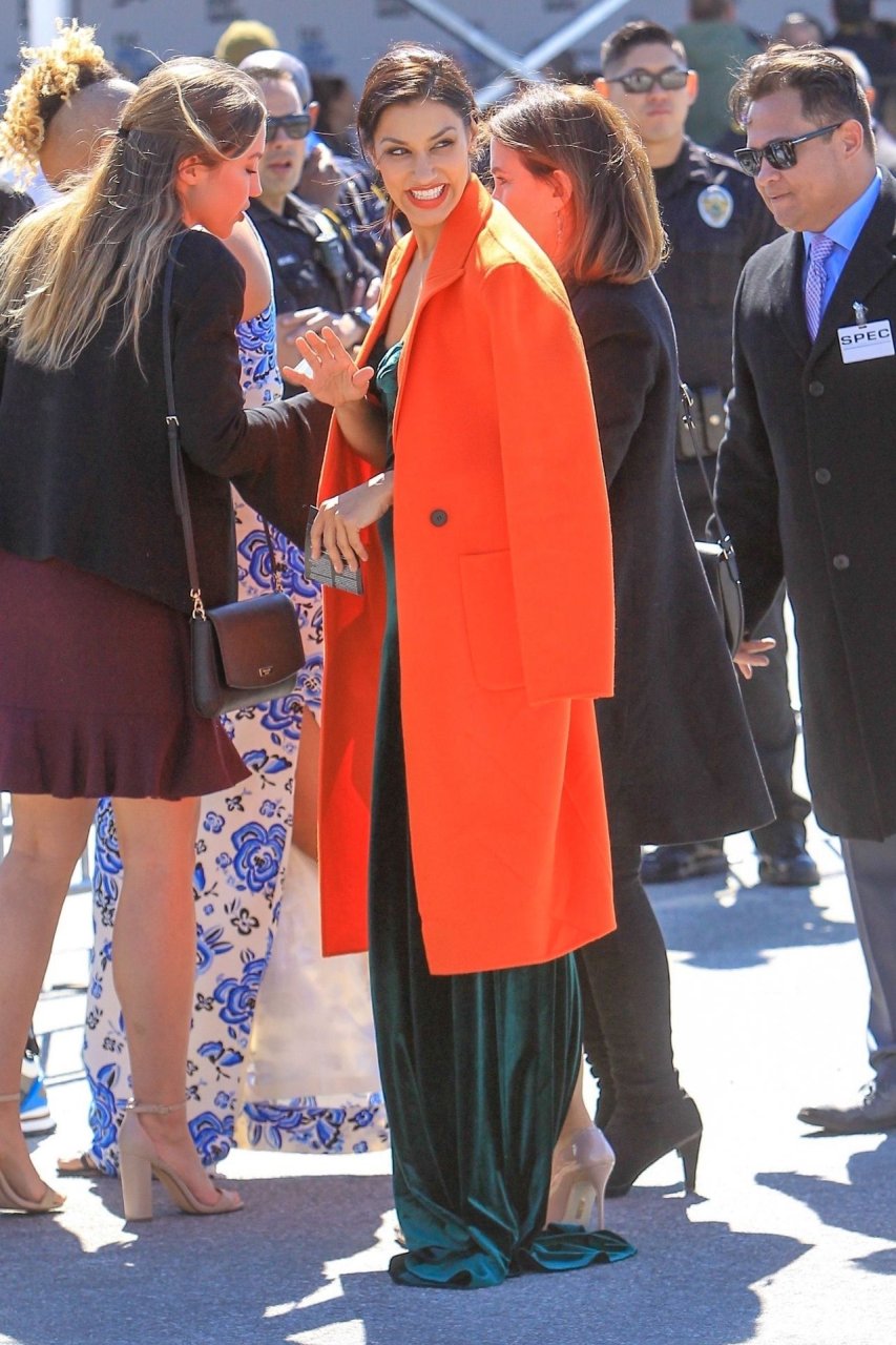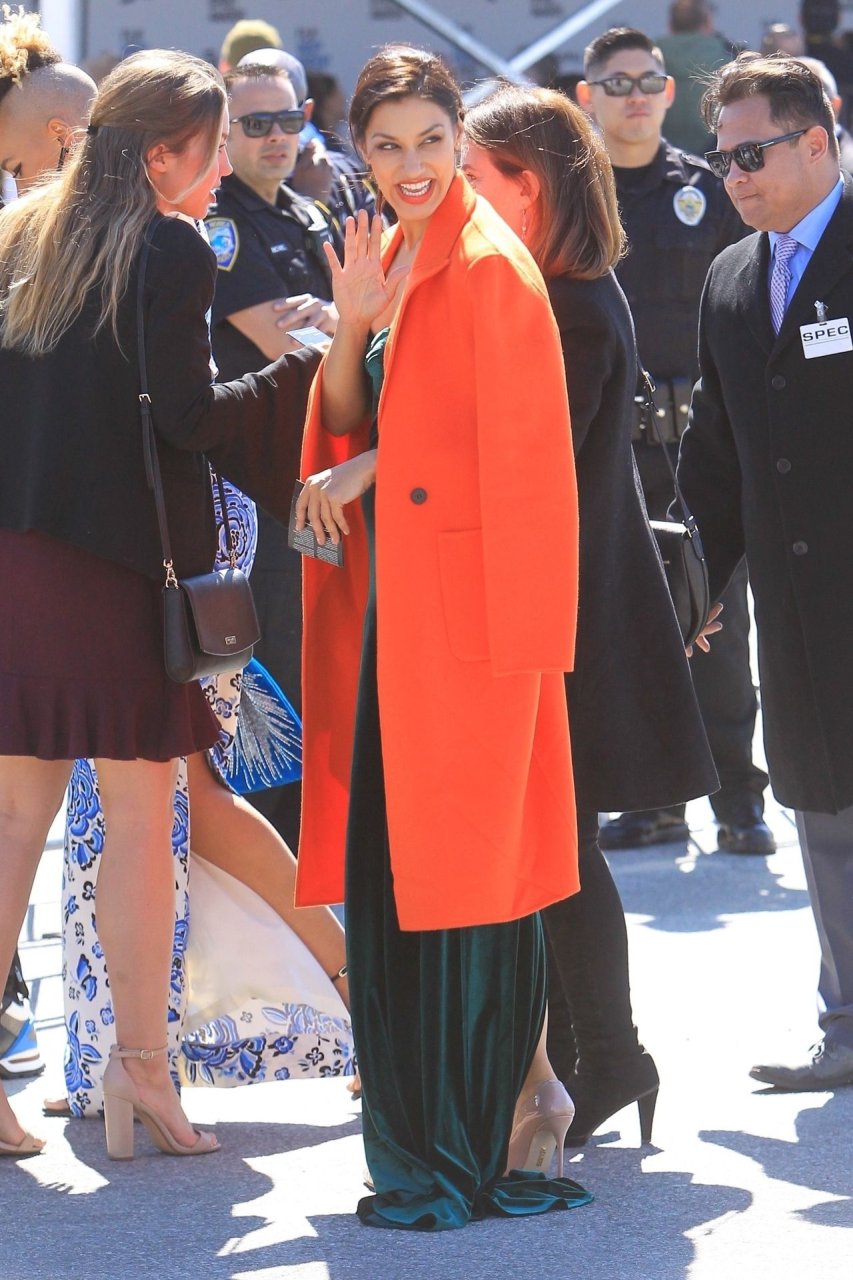 Janina Gavankar est à Santa Monica pour assister aux Independent Spirit Awards animés par Aubrey Plaza, le 23/02/2019. L’actrice de 38 ans porte un manteau orange néon vif par-dessus une robe en satin vert foncé. Janina opte pour des talons couleur nude pour compléter son look.