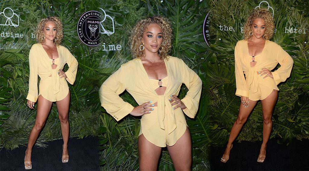 Le mannequin Jasmine Sanders portait un short très court qui mettait en pleine vue ses jambes impressionnantes et sculptées lors de la fête.