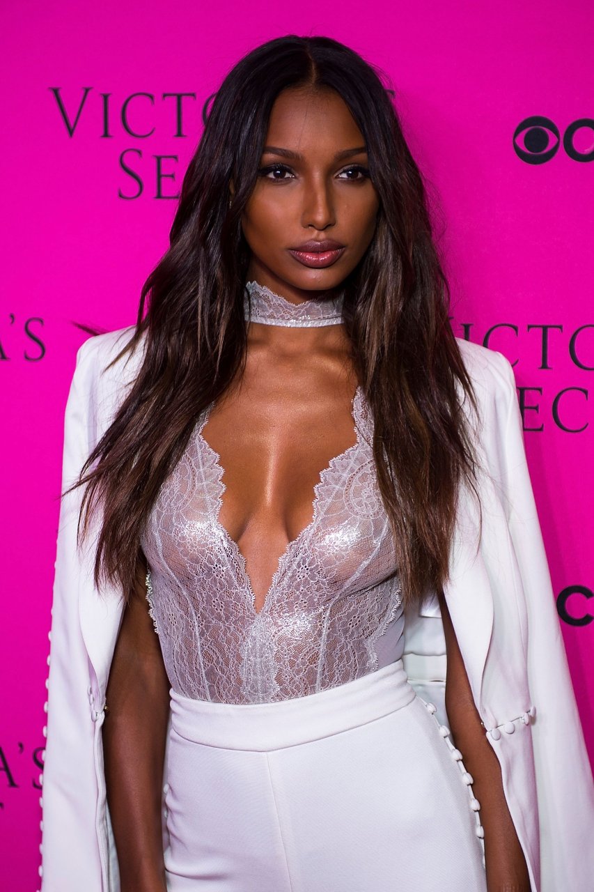 Le mannequin Jasmine Tookes, 26 ans, assiste à la soirée de visionnage du défilé Victoria’s Secret 2017 sur le tapis rose aux Spring Studios à New York, le 28/11/2017.