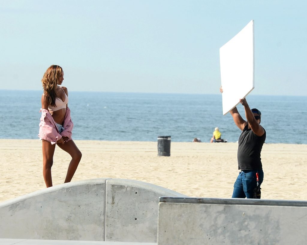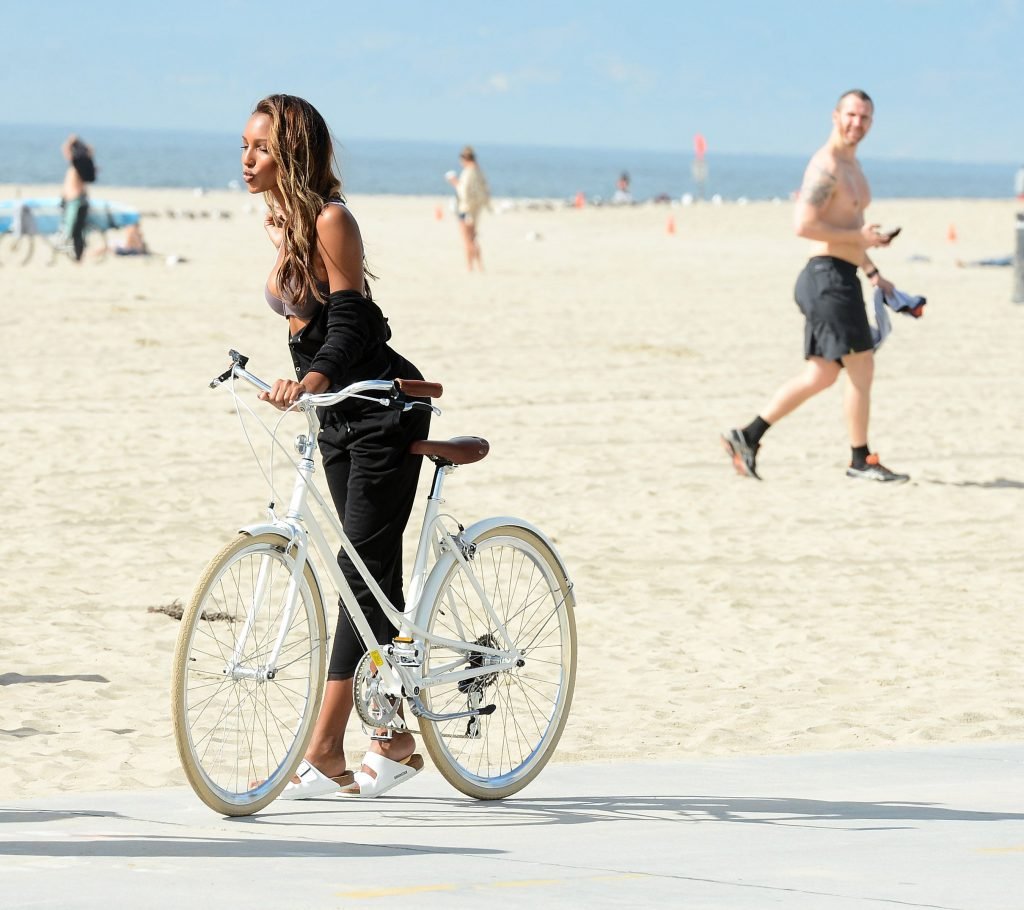 Le mannequin Jasmine Tookes, 26 ans, pose pour Victoria Secret Sport à Venice Beach, le 07/11/2017.