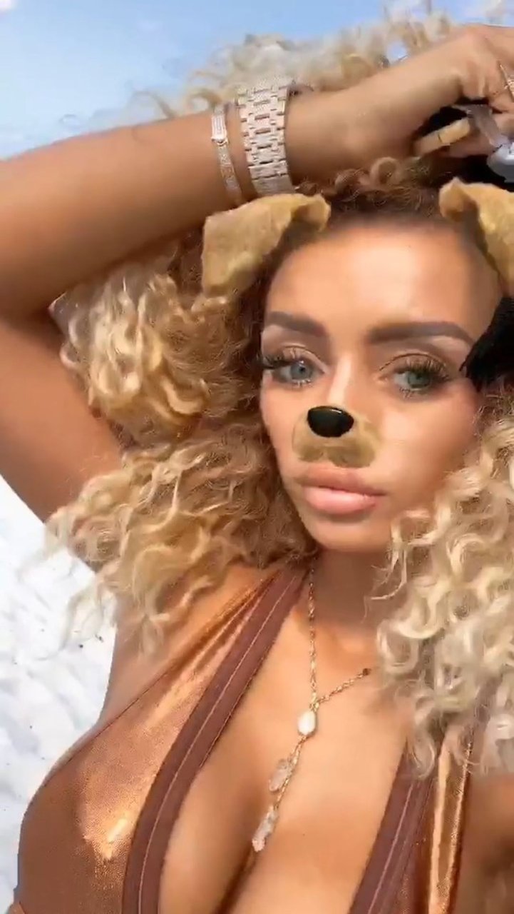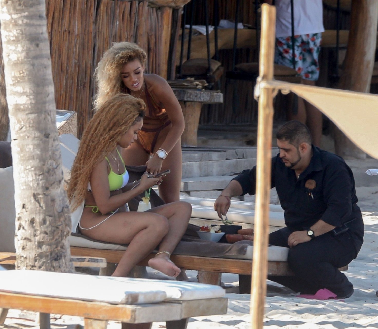 Jena Frumes prend des selfies en se relaxant avec Jilly Anais sur la plage à Tulum, Mexique, 01/05/2019. Les Youtubeuses montrent leurs corps en bikini tout en sirotant des boissons au soleil pendant leurs vacances ensemble.