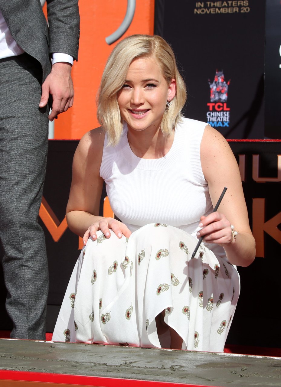 Photos sexy de Jennifer Lawrence – Cérémonie de l’empreinte de main de « The Hunger Games : La Révolte, Partie 2 » à Hollywood – 31/10/15. Jennifer Lawrence est une actrice américaine, connue pour « The Hunger Games », « X-Men » et « Serena ». Âgée de 25 ans (15 août 1990).