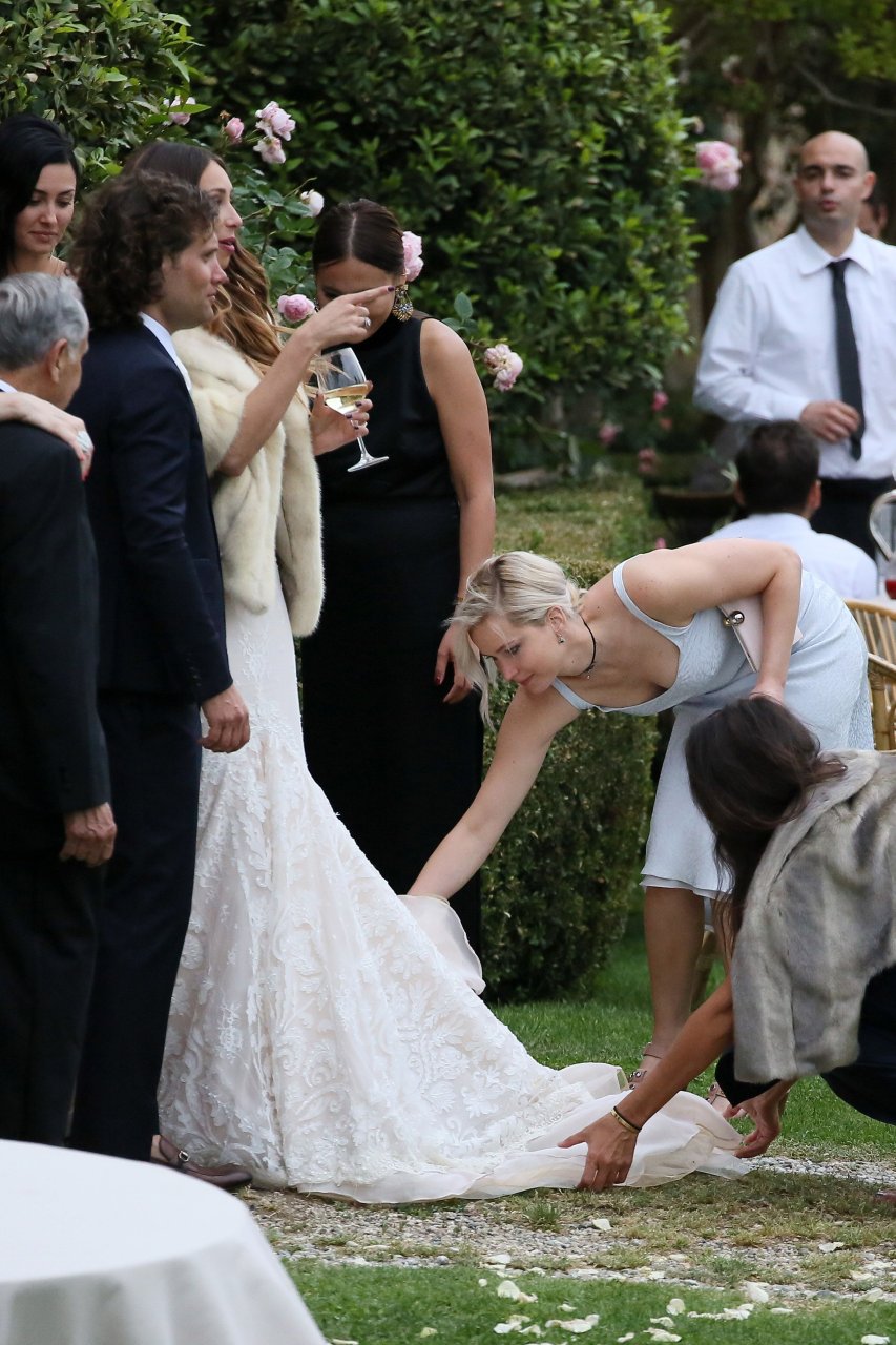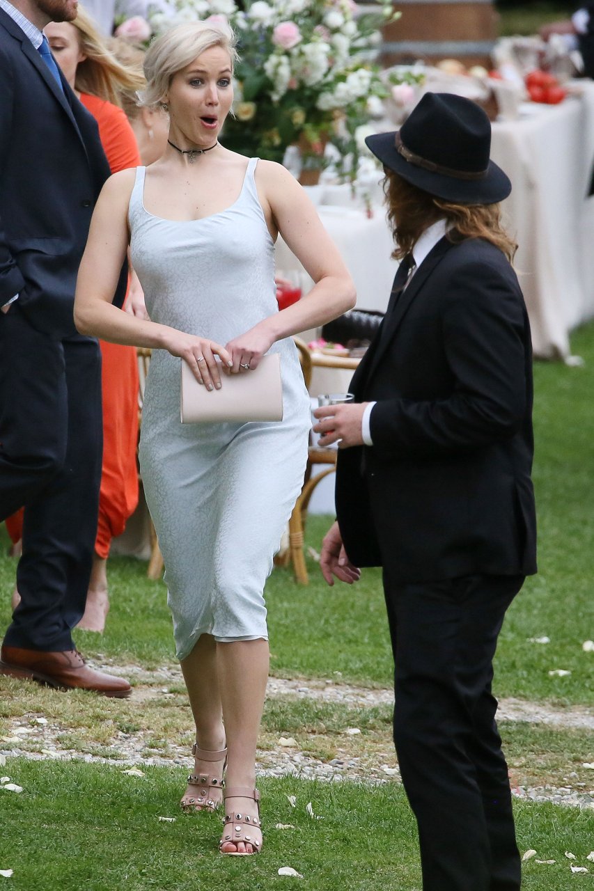 Jennifer Lawrence assiste au mariage de Laura Simpson à Florence, en Italie, le 02/06/2016. Robe super moulante ! Jennifer Lawrence est une actrice américaine, connue pour « Hunger Games », « X-Men » et « Serena ». Âge : 25 ans (15 août 1990).