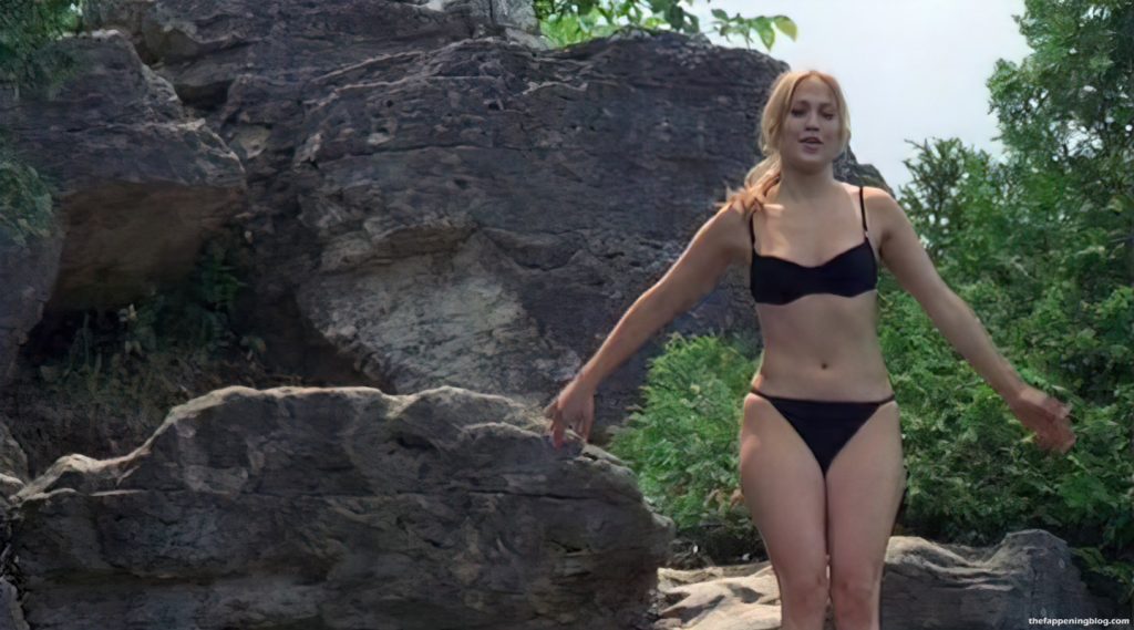 Jennifer est sexy dans un bikini noir avant de plonger d’une falaise puis d’embrasser un homme dans l’eau en dessous.