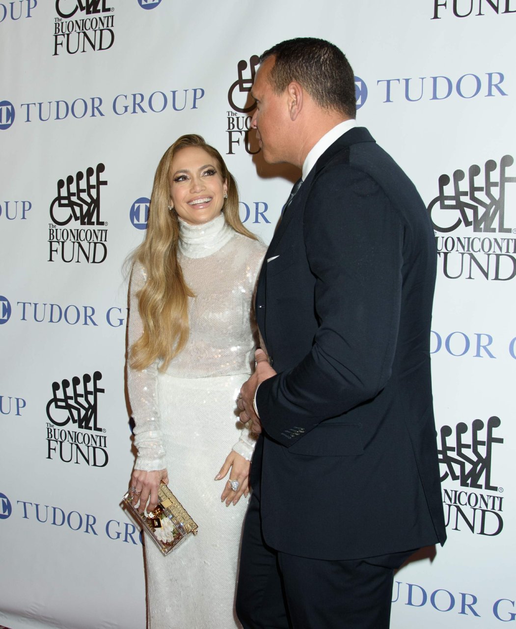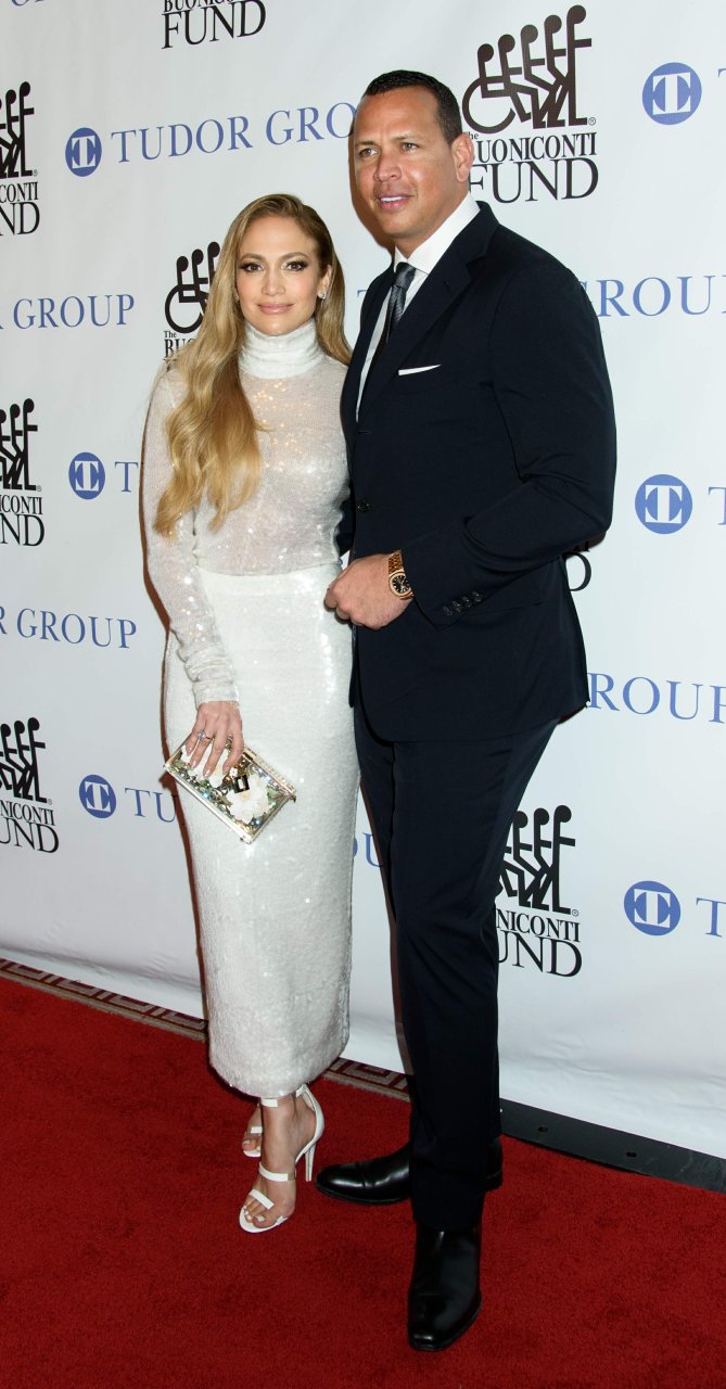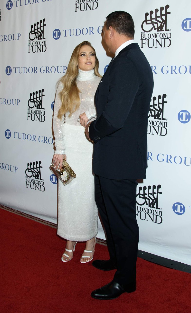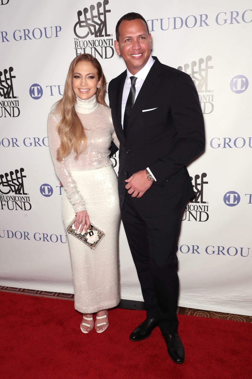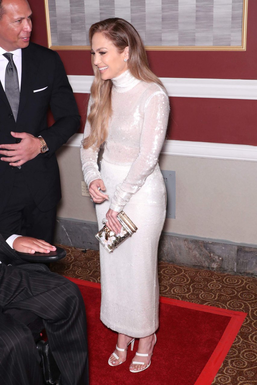 Superstar Jennifer Lopez (49 ans) pose sur le tapis rouge avec son petit ami Alex Rodriguez lors du 33e dîner annuel des Grandes Légendes du Sport à New York, le 24/09/2018.
