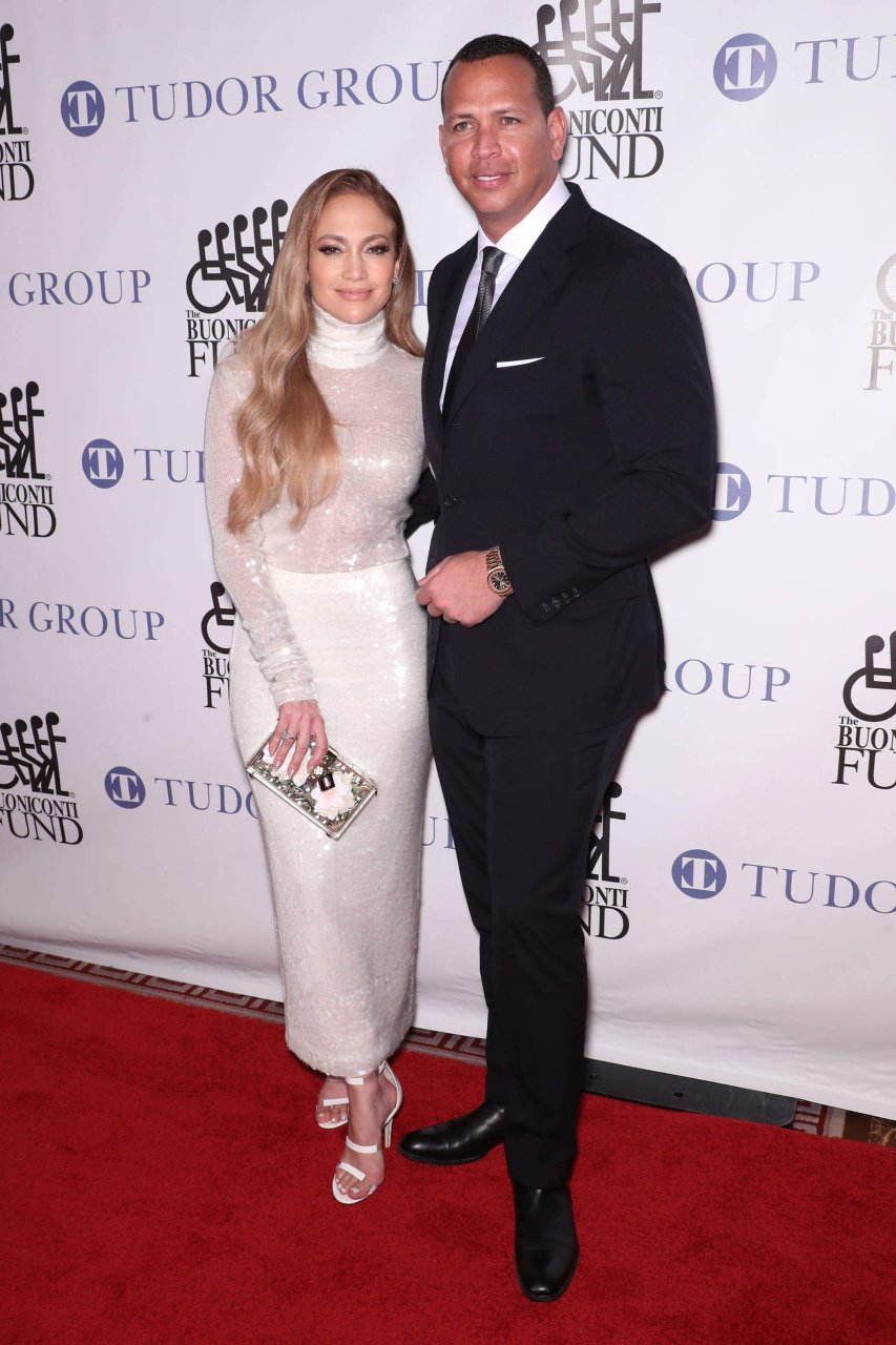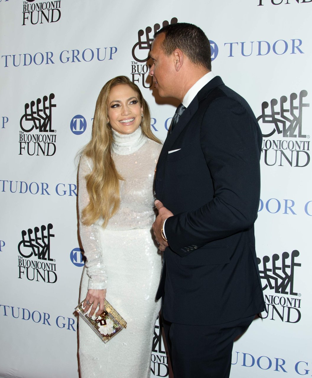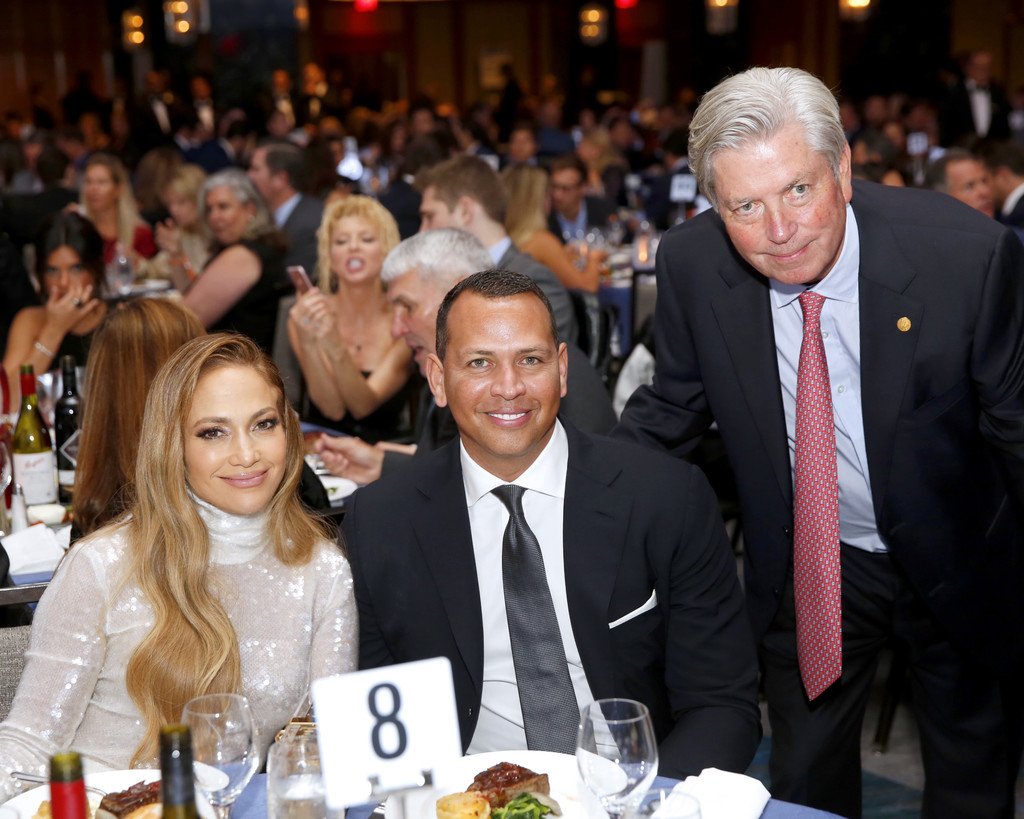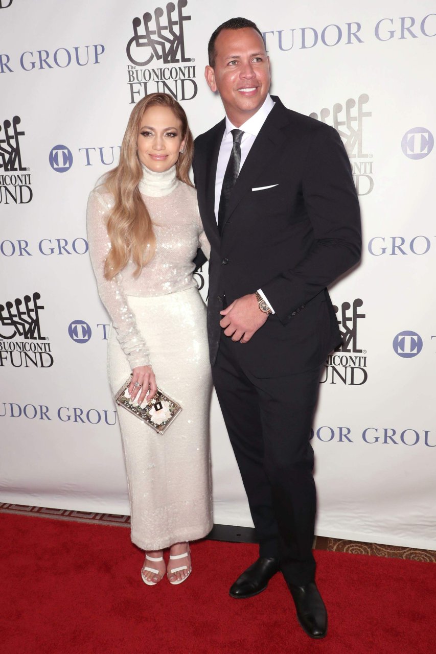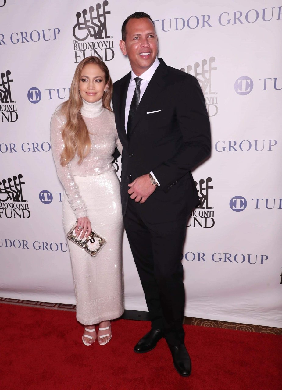 Superstar Jennifer Lopez (49 ans) pose sur le tapis rouge avec son petit ami Alex Rodriguez lors du 33e dîner annuel des Grandes Légendes du Sport à New York, le 24/09/2018.
