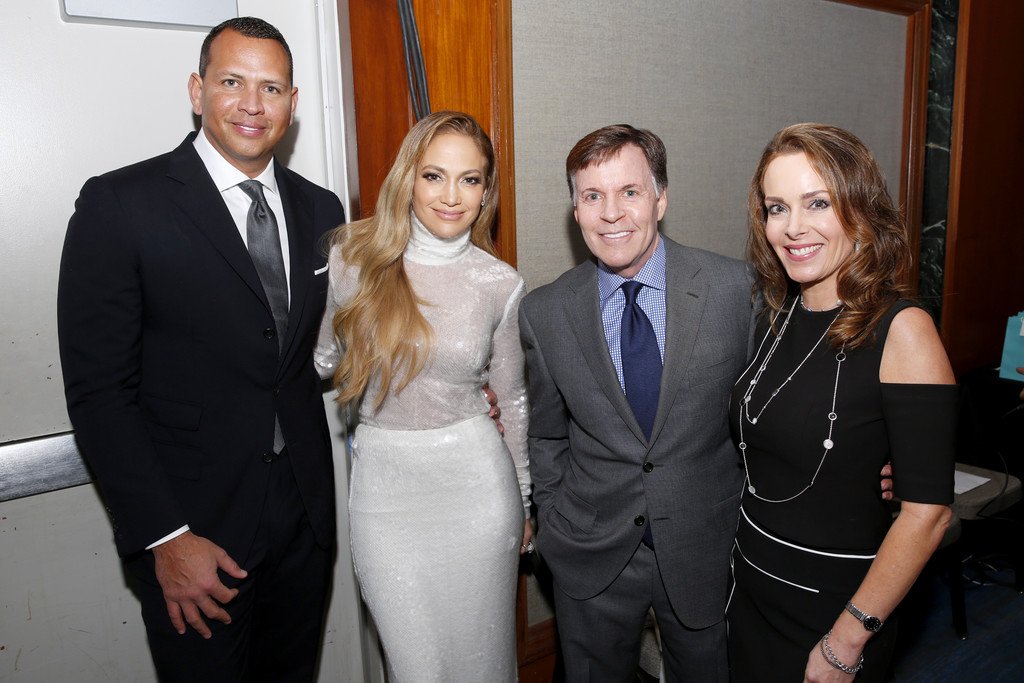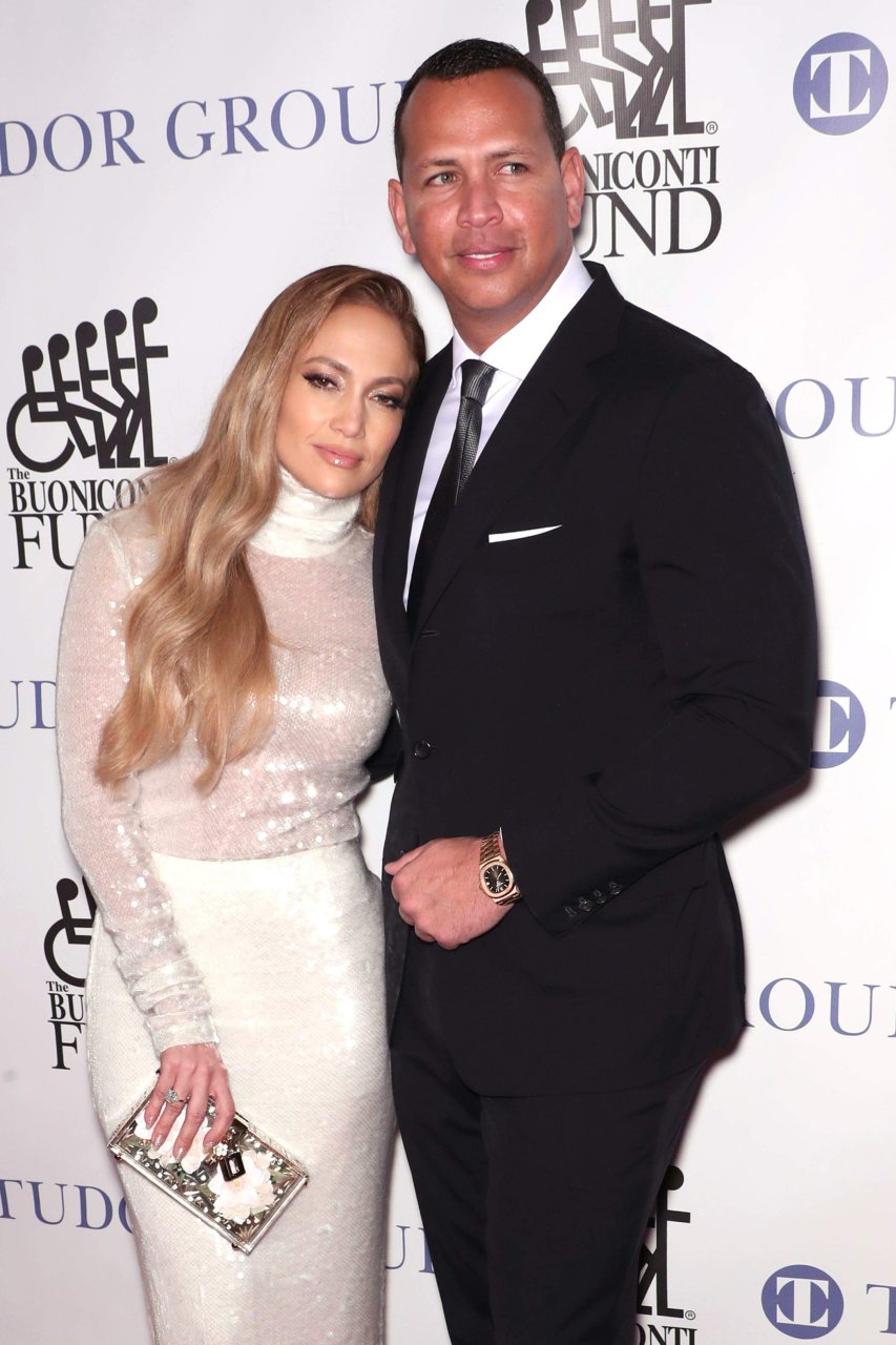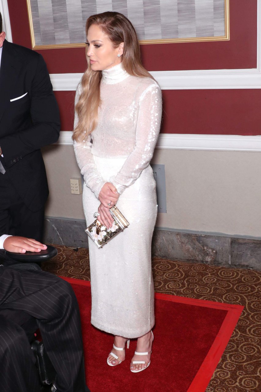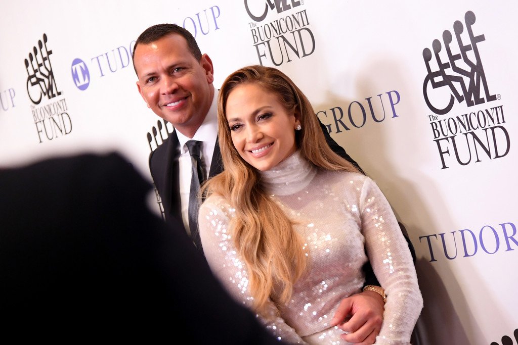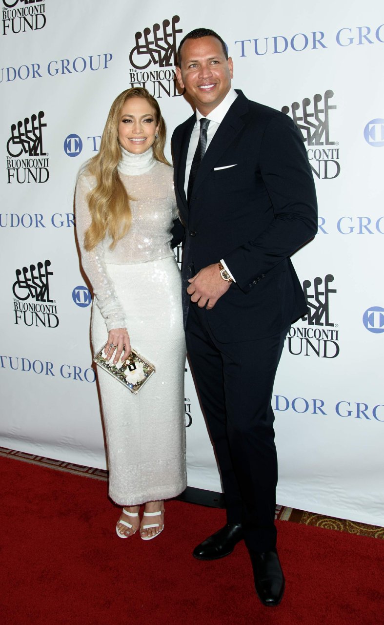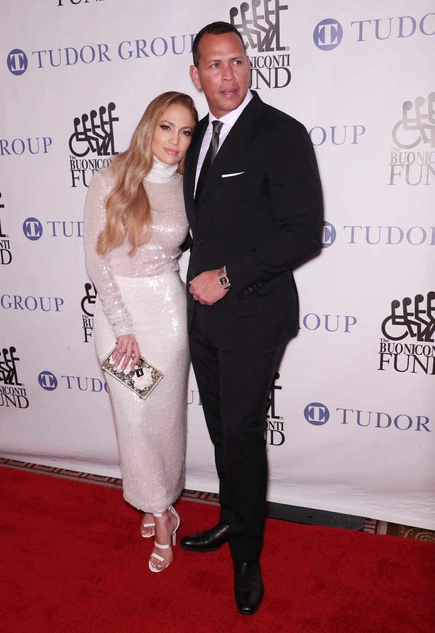 Superstar Jennifer Lopez (49 ans) pose sur le tapis rouge avec son petit ami Alex Rodriguez lors du 33e dîner annuel des Grandes Légendes du Sport à New York, le 24/09/2018.