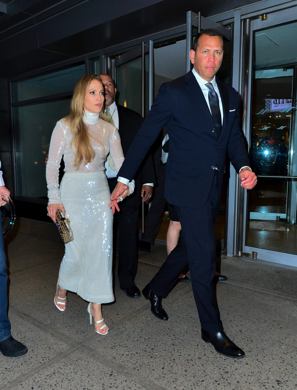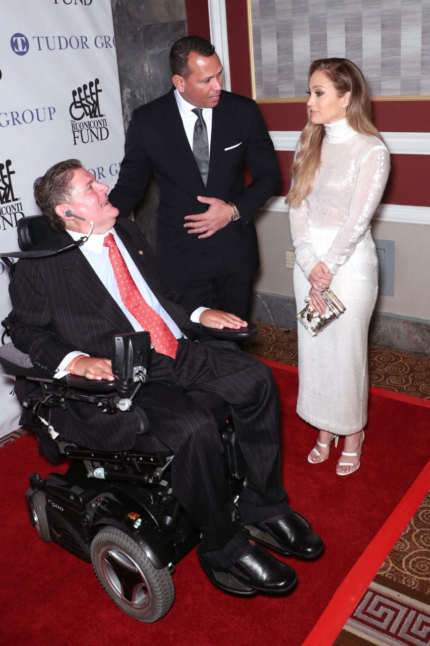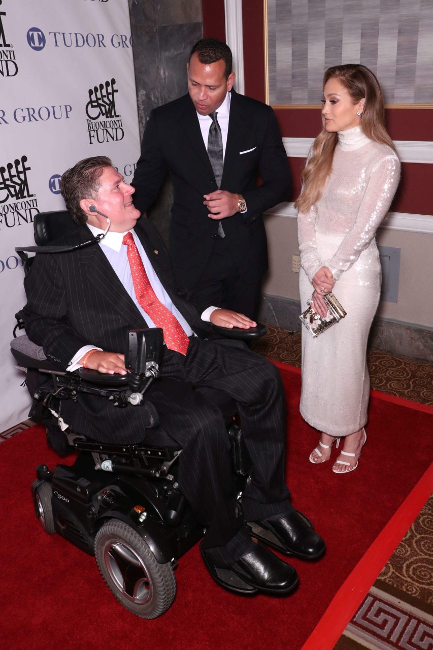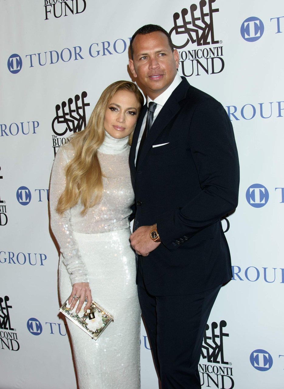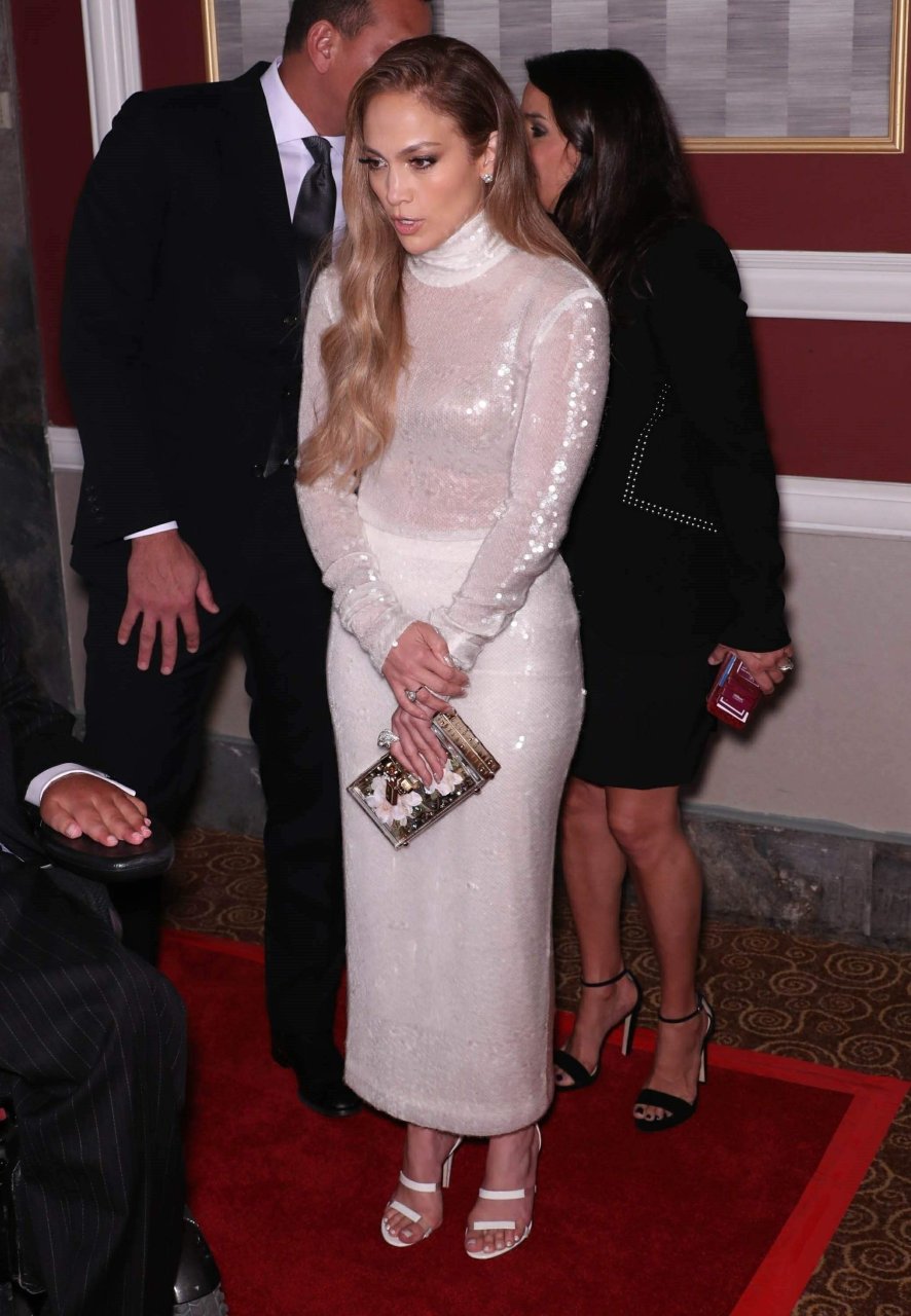 Superstar Jennifer Lopez (49 ans) pose sur le tapis rouge avec son petit ami Alex Rodriguez lors du 33e dîner annuel des Grandes Légendes du Sport à New York, le 24/09/2018.
