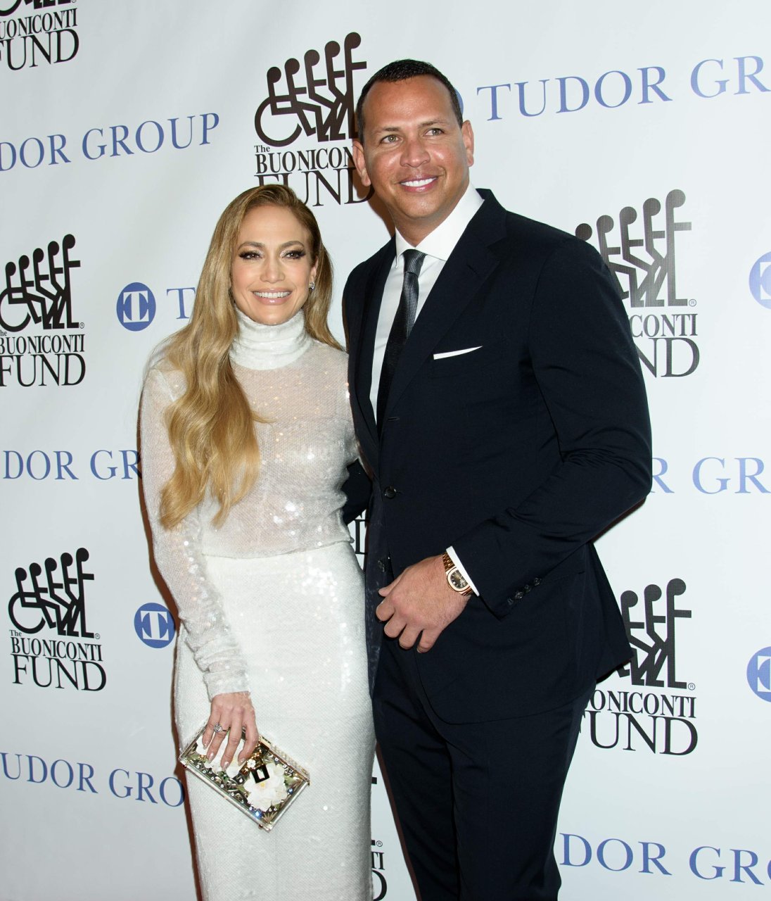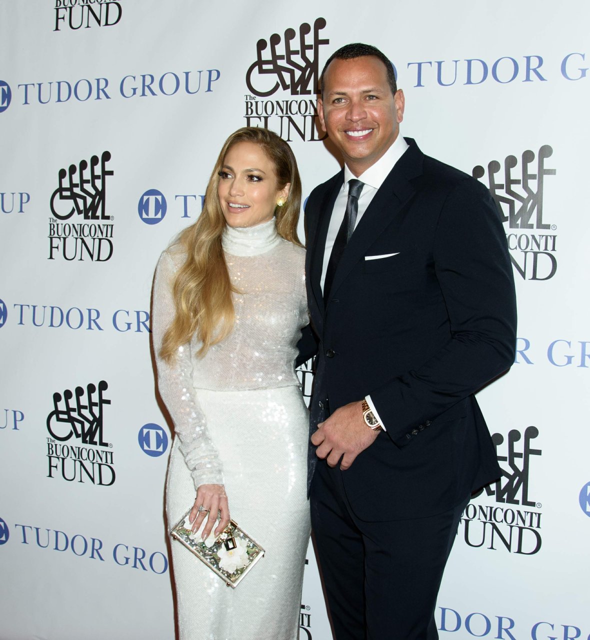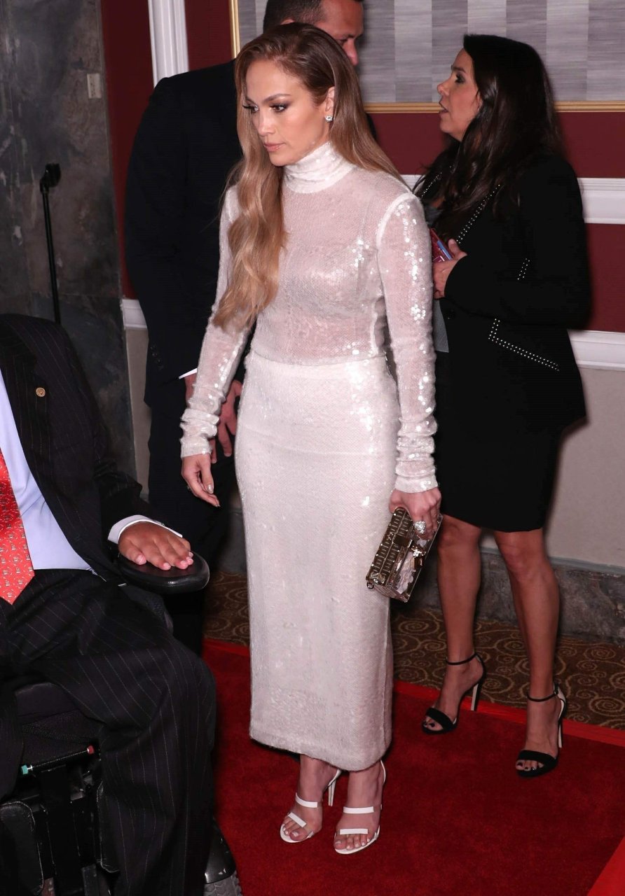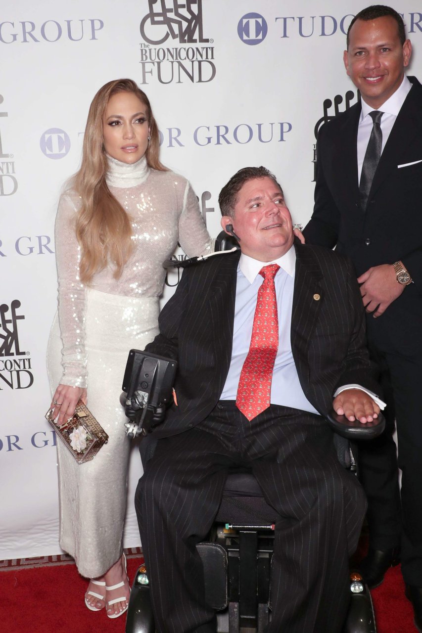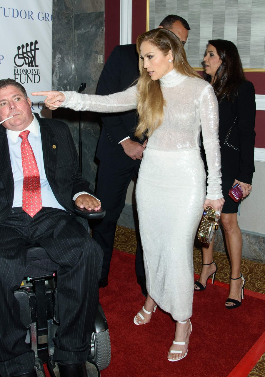 Superstar Jennifer Lopez (49 ans) pose sur le tapis rouge avec son petit ami Alex Rodriguez lors du 33e dîner annuel des Grandes Légendes du Sport à New York, le 24/09/2018.