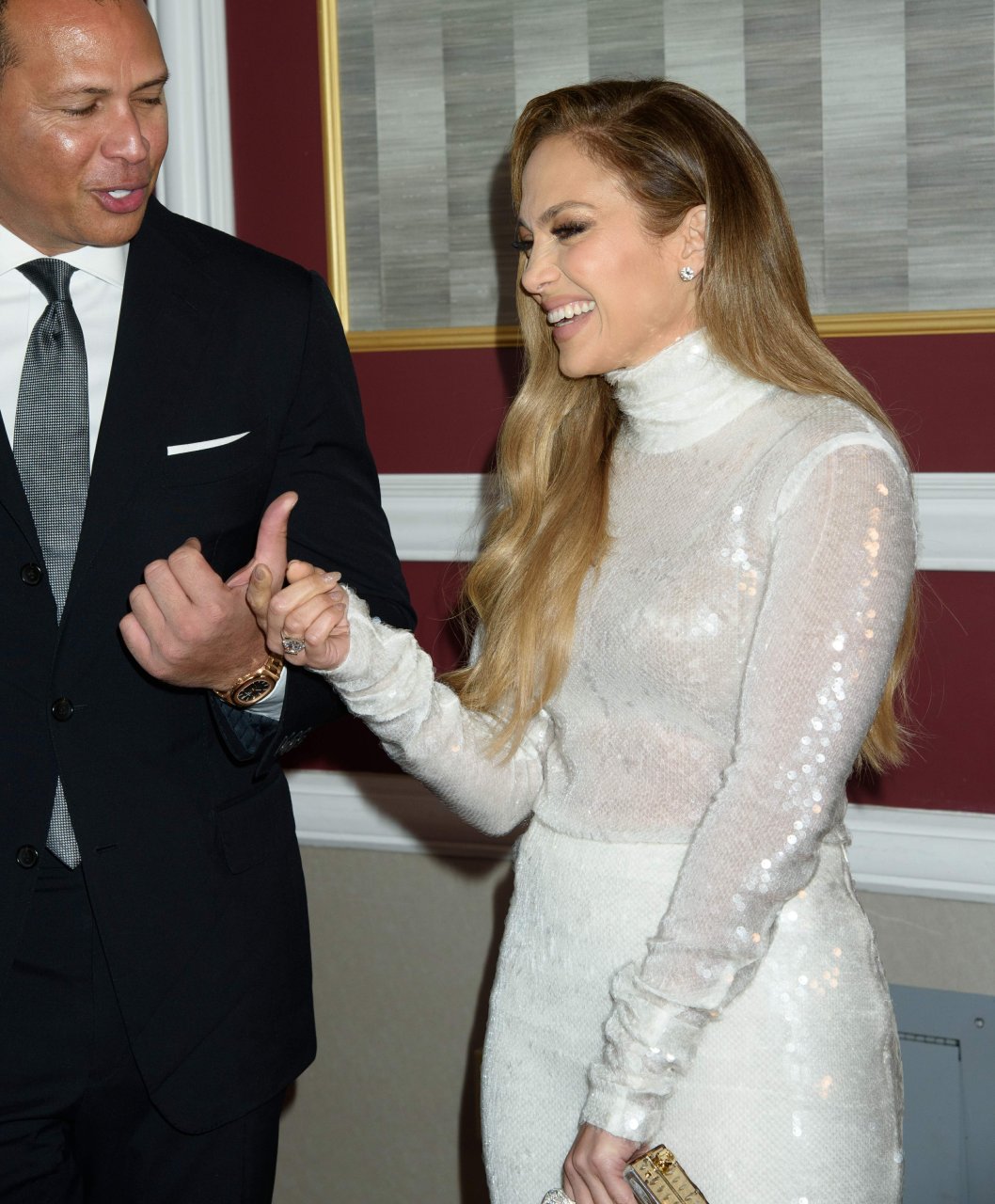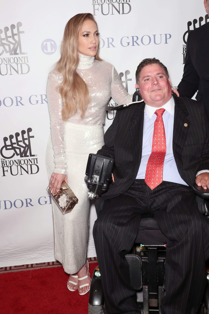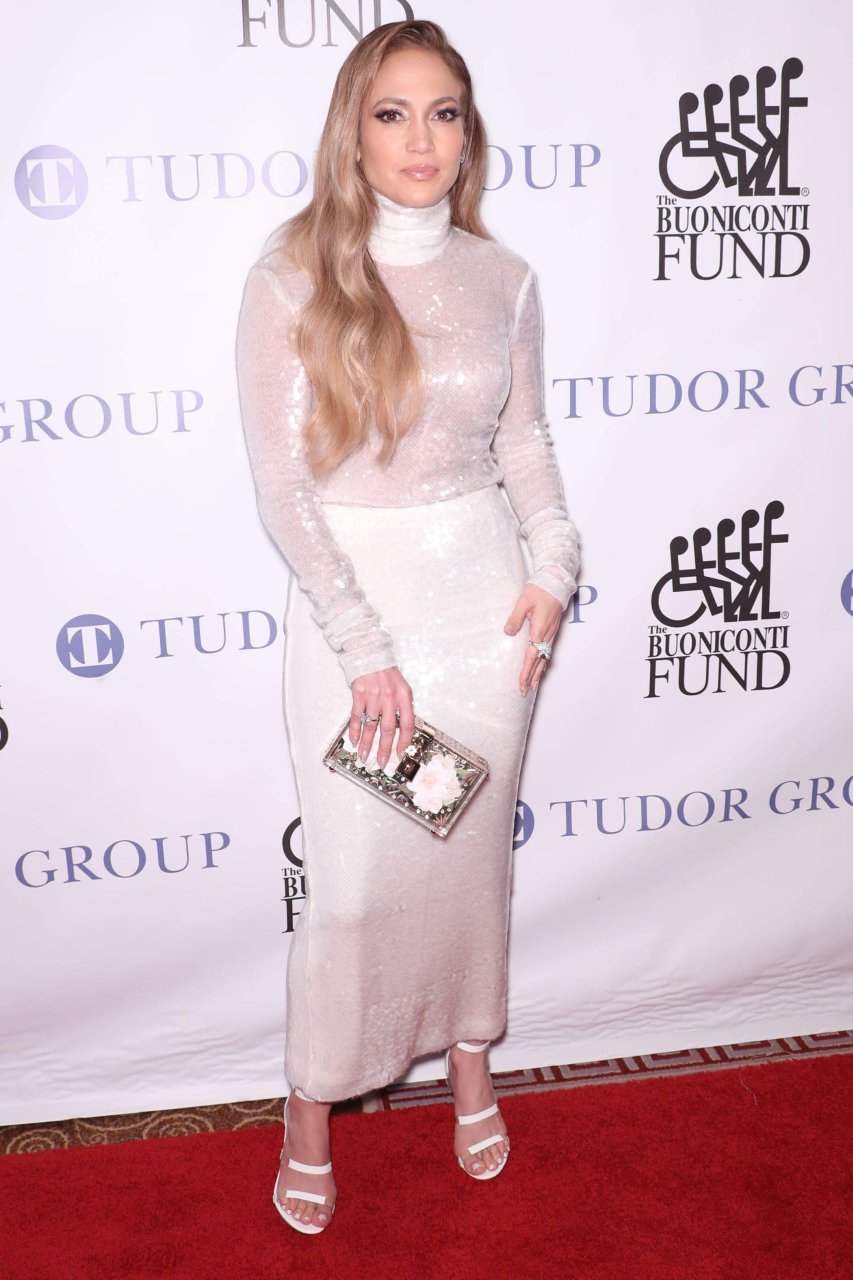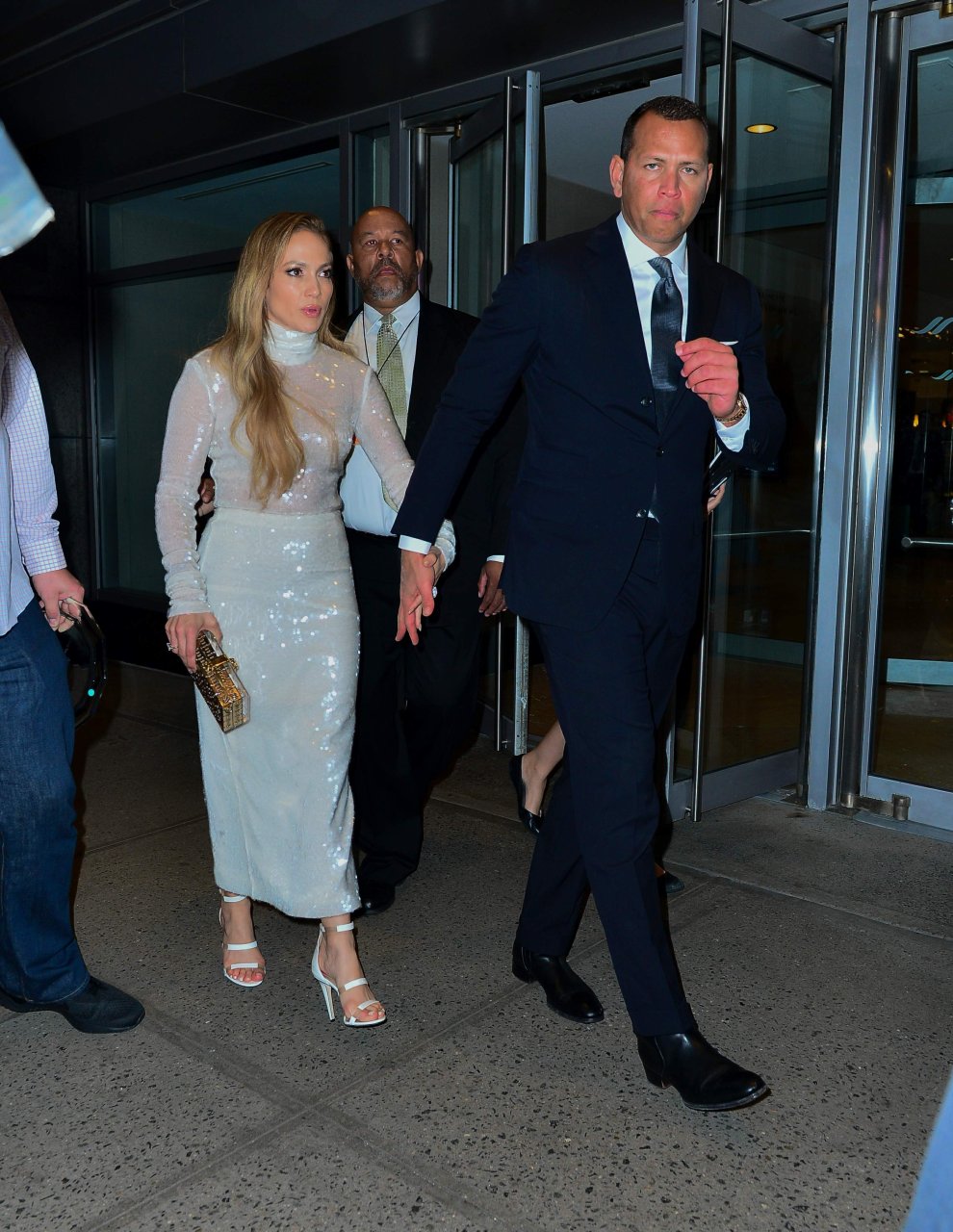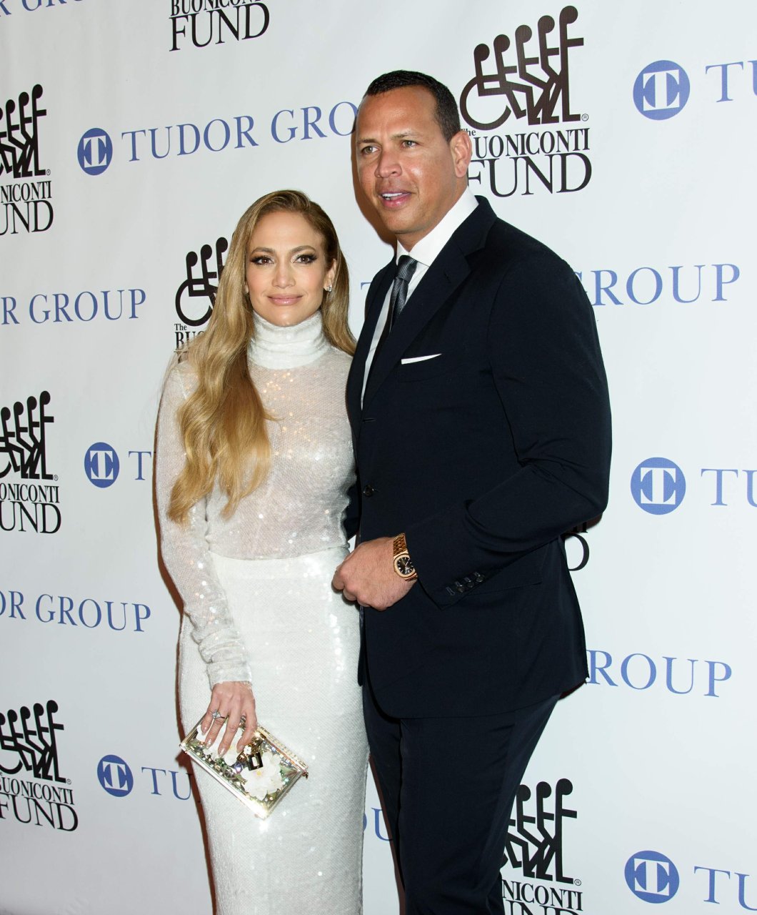Superstar Jennifer Lopez (49 ans) pose sur le tapis rouge avec son petit ami Alex Rodriguez lors du 33e dîner annuel des Grandes Légendes du Sport à New York, le 24/09/2018.