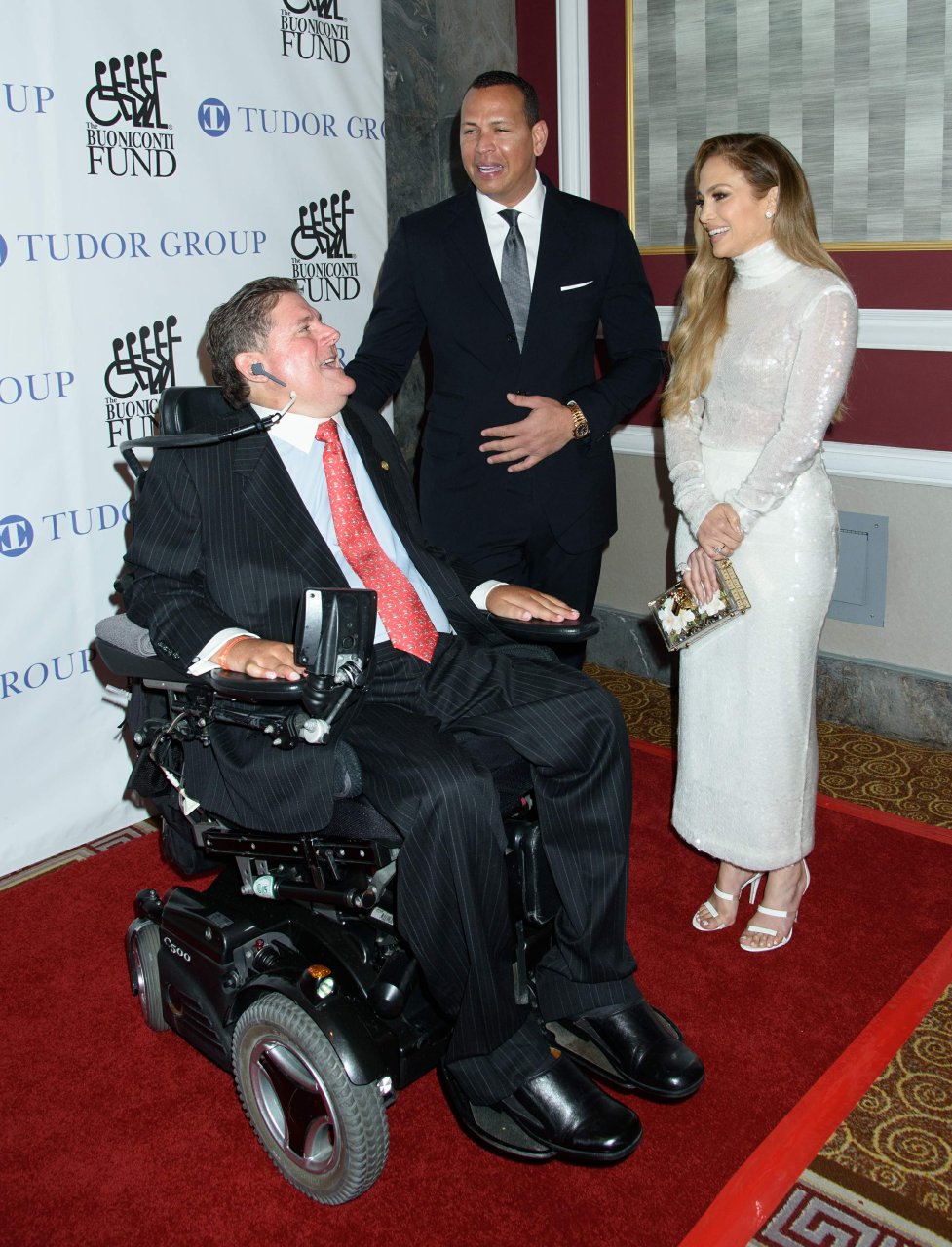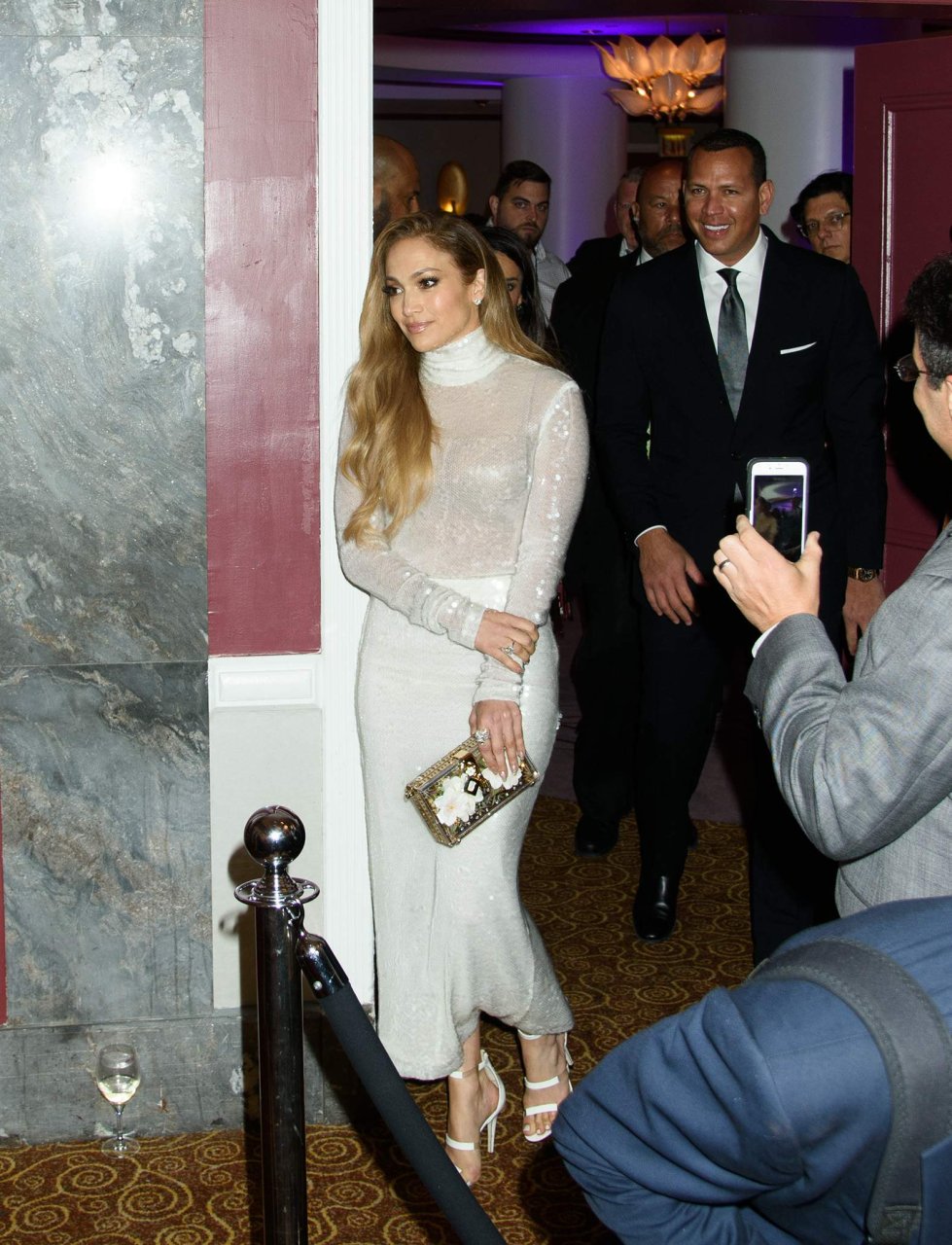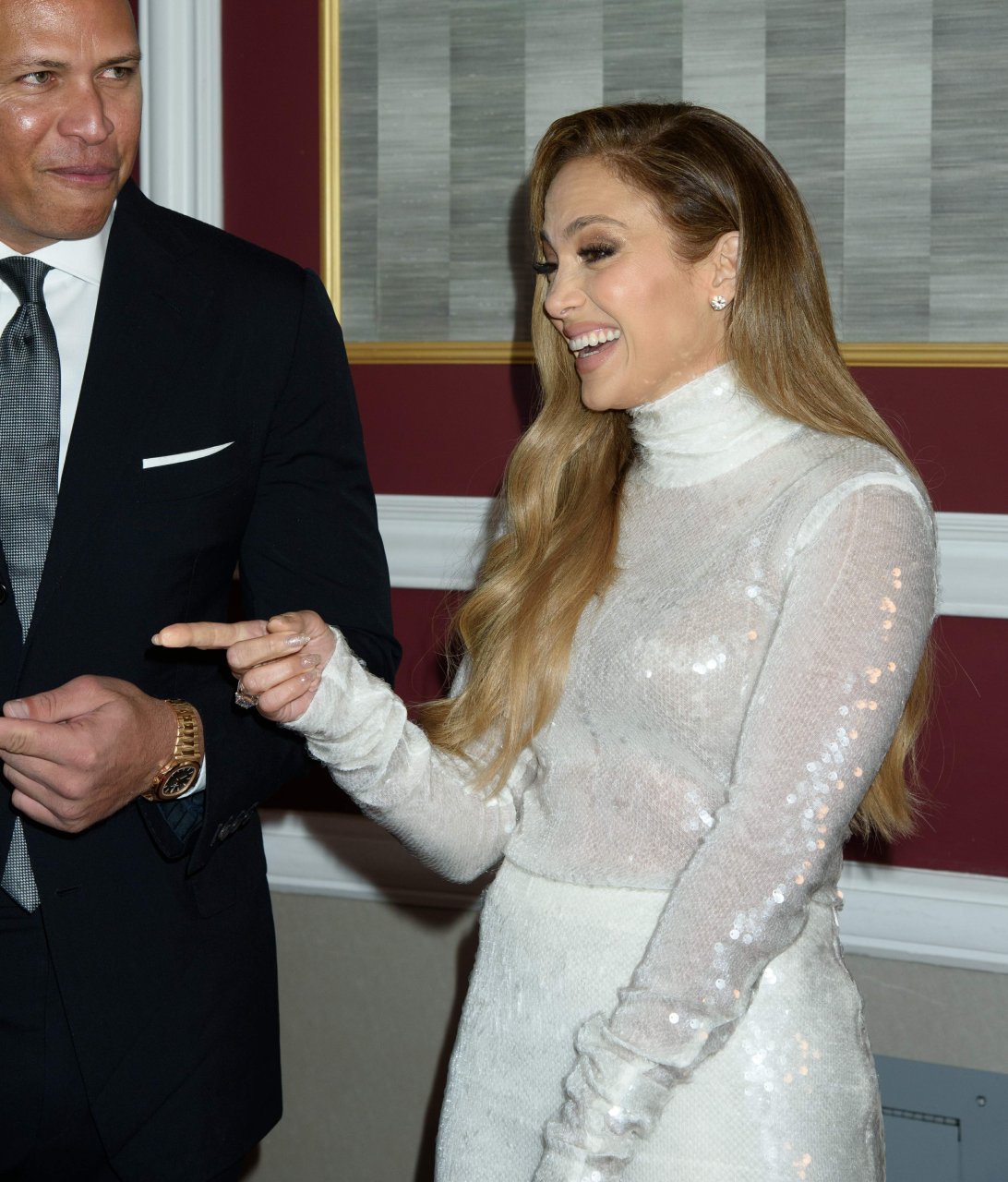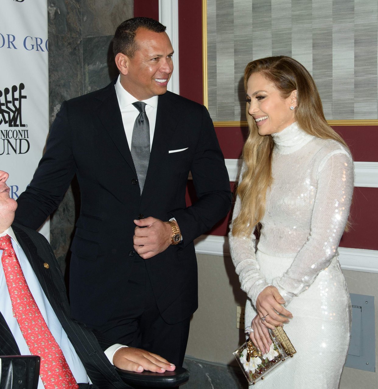 Superstar Jennifer Lopez (49 ans) pose sur le tapis rouge avec son petit ami Alex Rodriguez lors du 33e dîner annuel des Grandes Légendes du Sport à New York, le 24/09/2018.