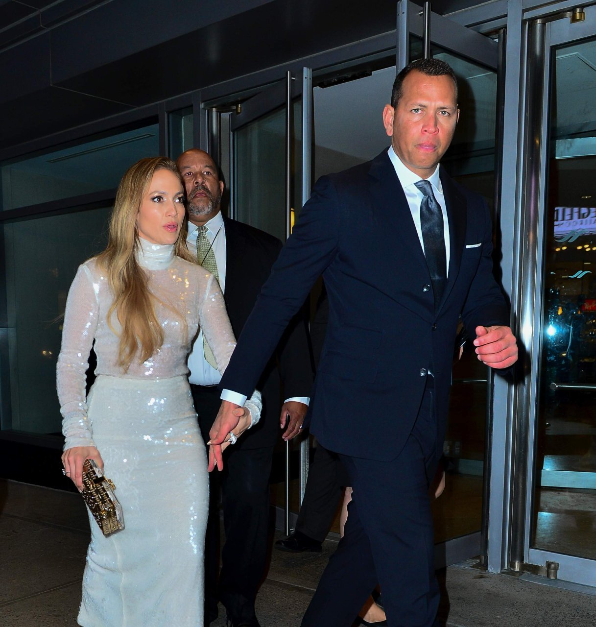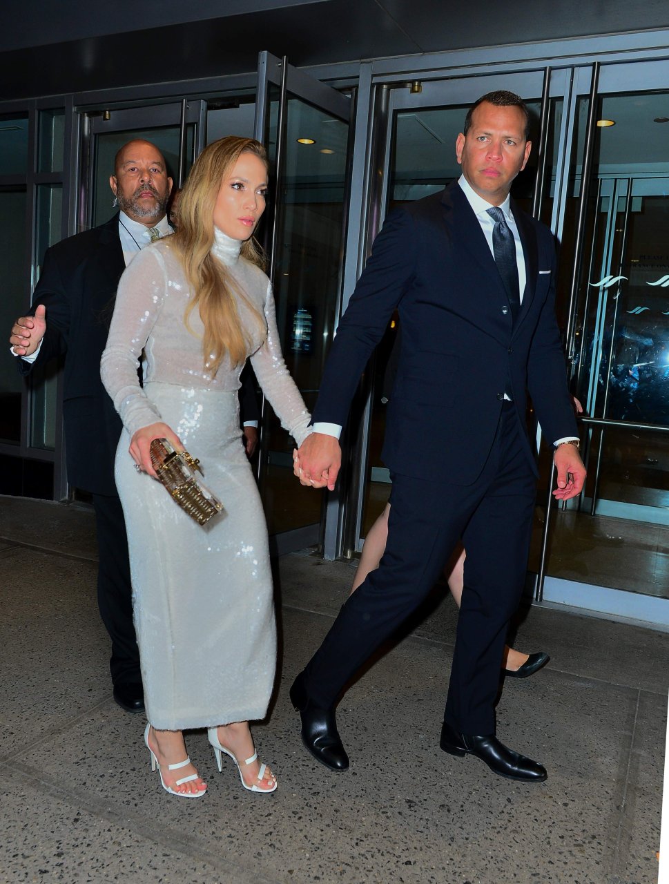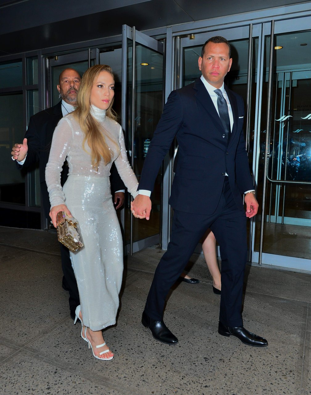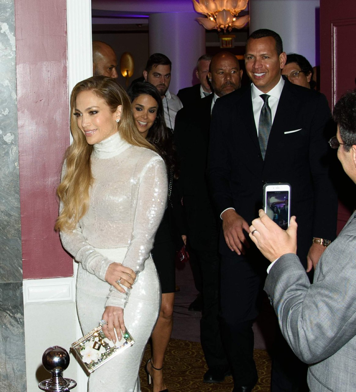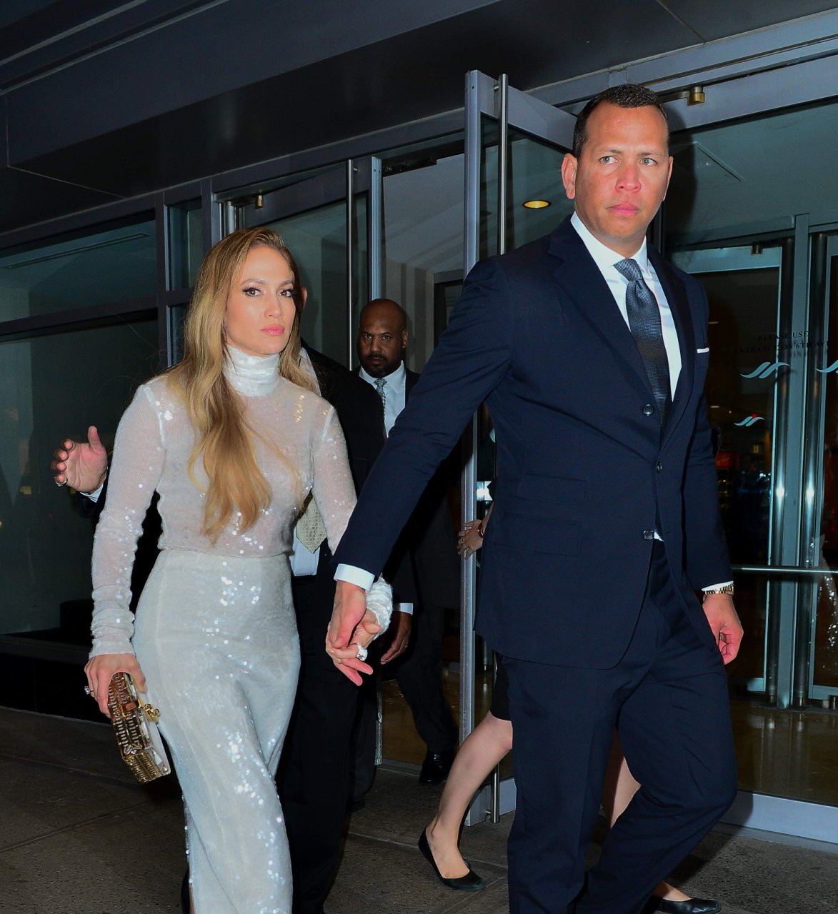 Superstar Jennifer Lopez (49 ans) pose sur le tapis rouge avec son petit ami Alex Rodriguez lors du 33e dîner annuel des Grandes Légendes du Sport à New York, le 24/09/2018.