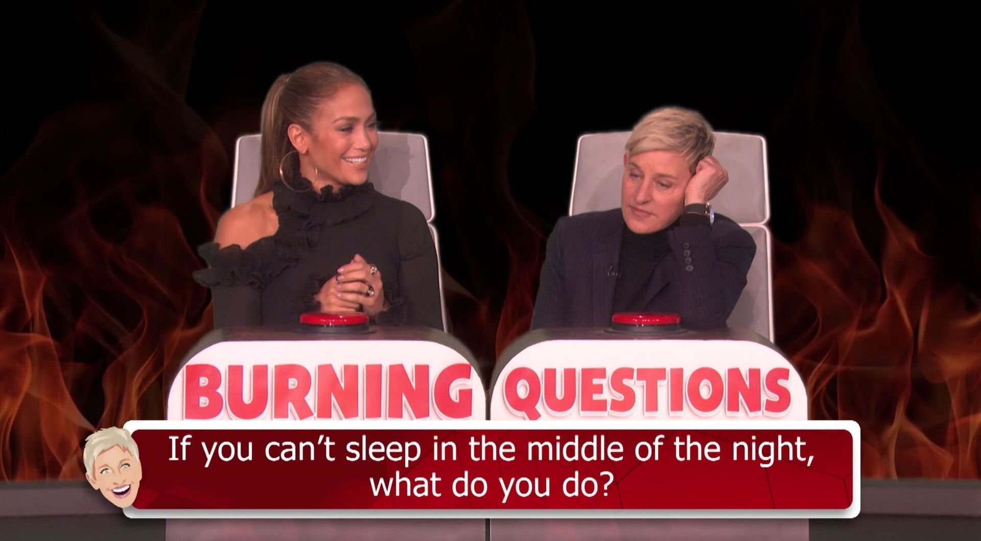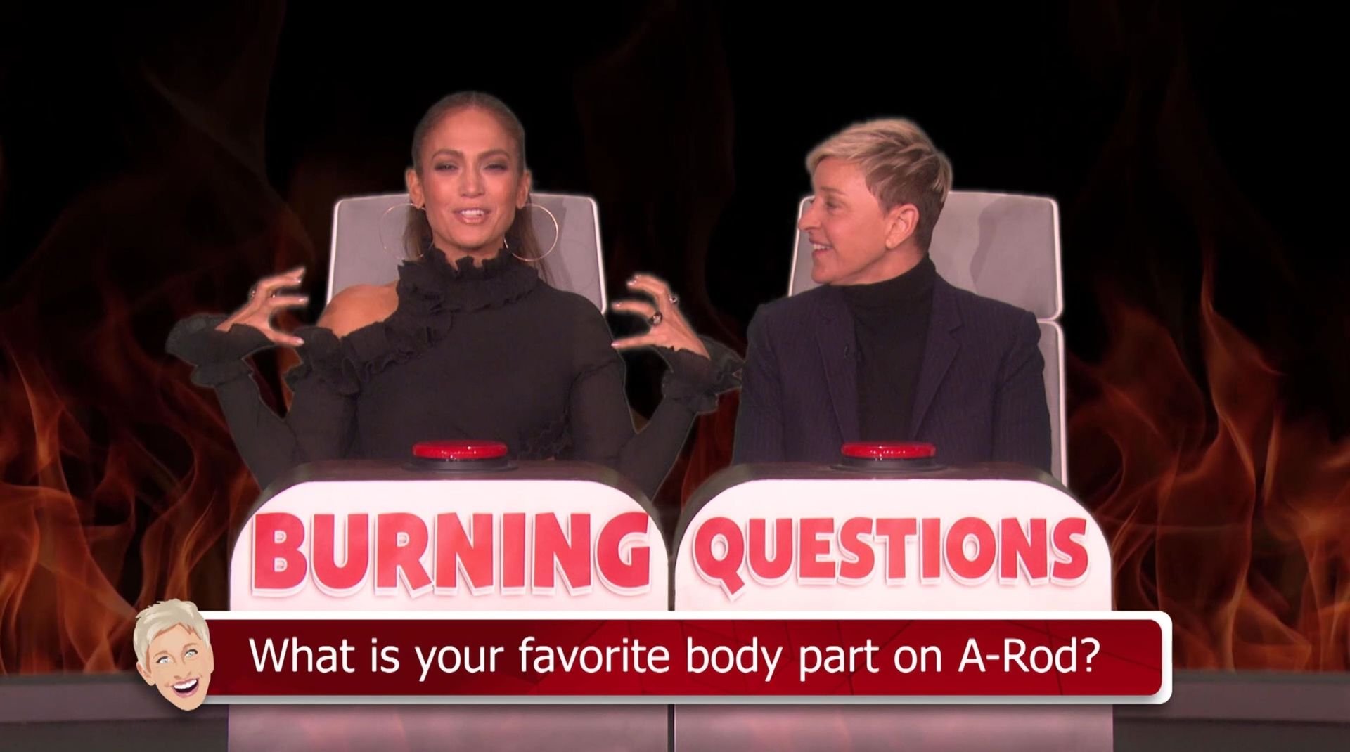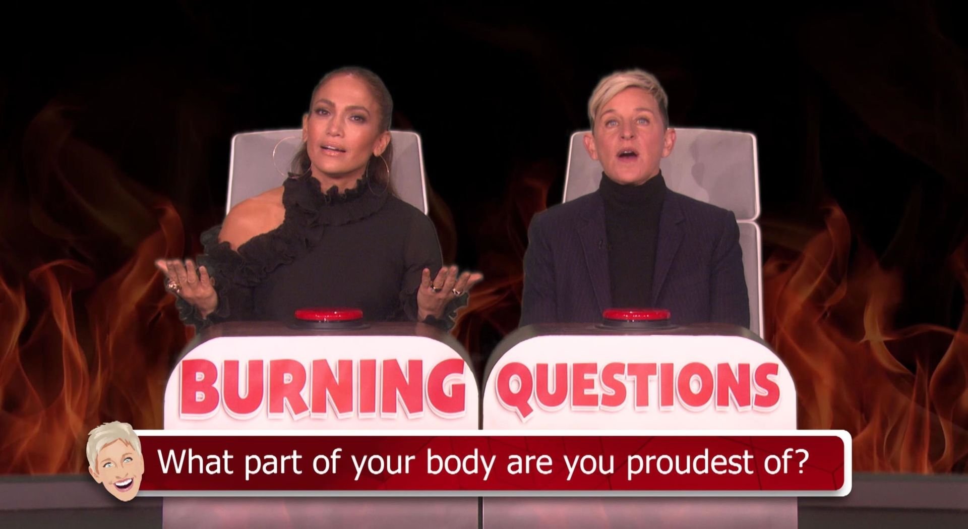 Jennifer Lopez est restée choquée lorsque Ellen DeGeneres a évoqué le pénis d’Alex Rodriguez lors d’un jeu de Burning Questions dans The Ellen Show. La chanteuse et actrice s’est assise dans le siège chaud avec Ellen pour jouer au jeu où elle doit répondre à une série de questions personnelles avec la première chose qui lui vient à l’esprit. Lorsqu’on lui a demandé quelle était sa partie du corps préférée, Jennifer a fait une pause et a dit : “Mes abdos.”
