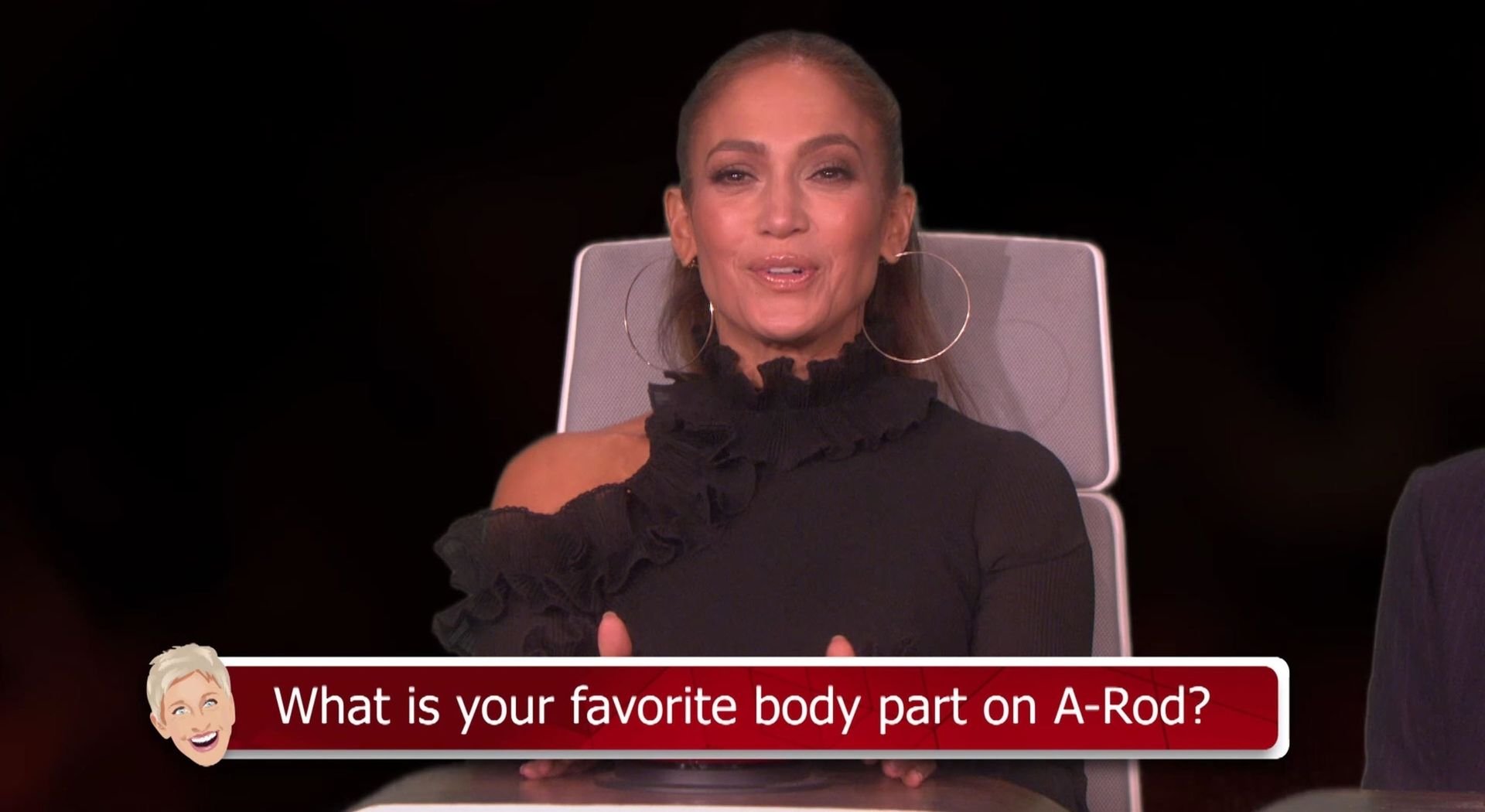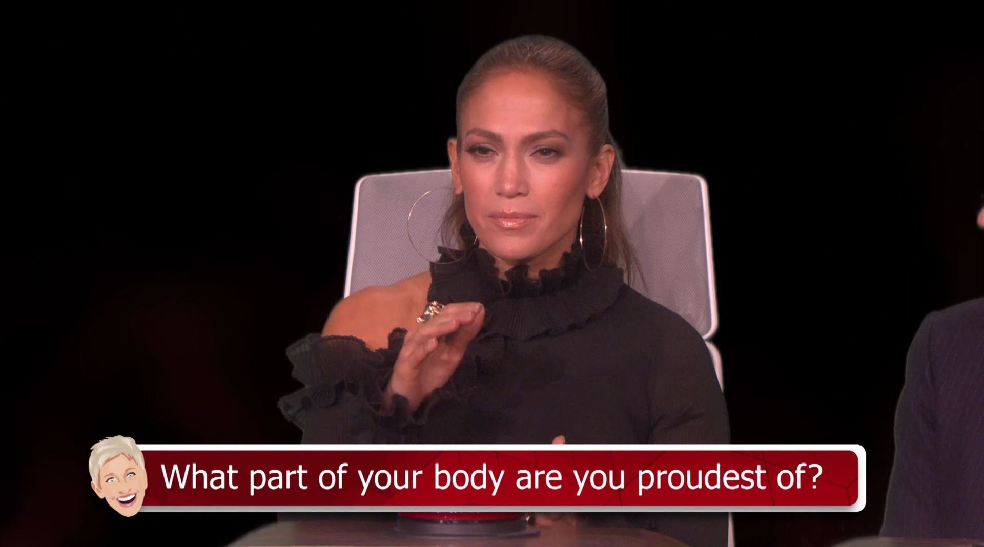 Ellen a interprété la pause ainsi : “Il y a tellement de choses dont être fier, et j’essaie de penser à une dont je suis fière !” Mais le vrai moment amusant est arrivé quand Ellen a demandé à Jennifer de nommer sa partie préférée du corps de son petit ami A-Rod. J-Lo savait exactement où elle voulait en venir mais était déterminée à ne pas lui donner cette réponse. “Je vais dire, j’adore ses bras,” a dit JLo. Elle a ensuite retourné la question à Ellen, ce qui pourrait avoir été une erreur.