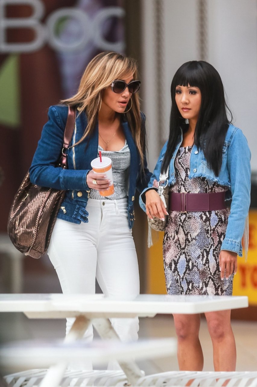 Jennifer Lopez est éblouissante sur le tournage de “Hustlers” aux côtés de sa co-star, Constance Wu à New York, le 26/03/2019.