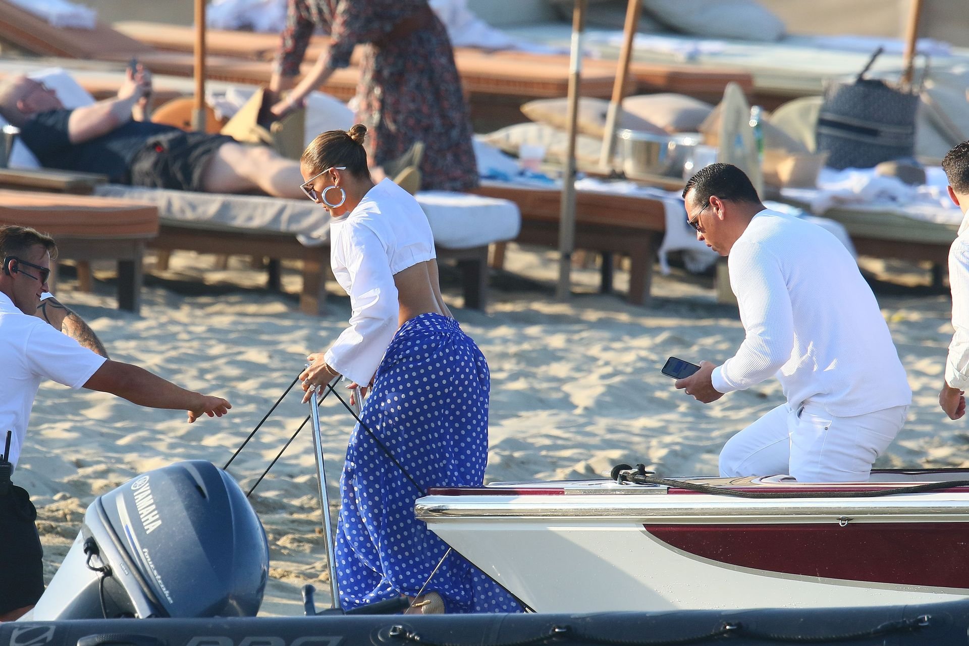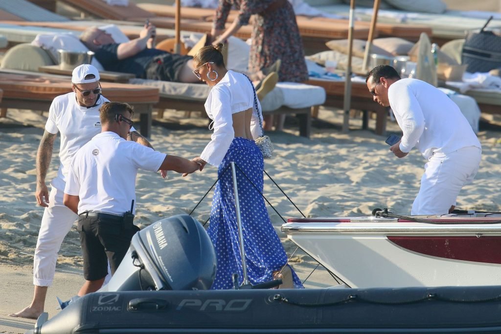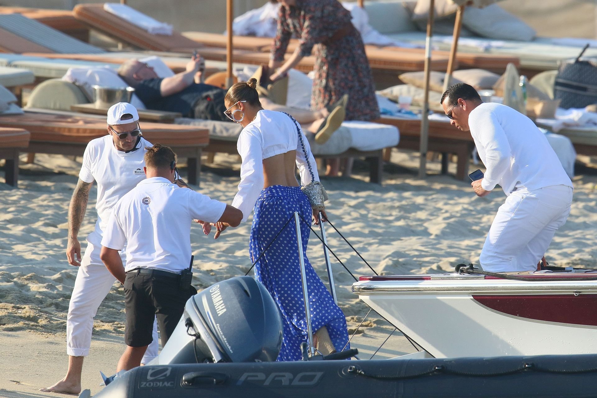 Jennifer Lopez et Alex Rodriguez ont été vus arrivant à Nikki Beach dans le sud de la France pour le 60e anniversaire de Magic Johnson, le 02/09/2019.