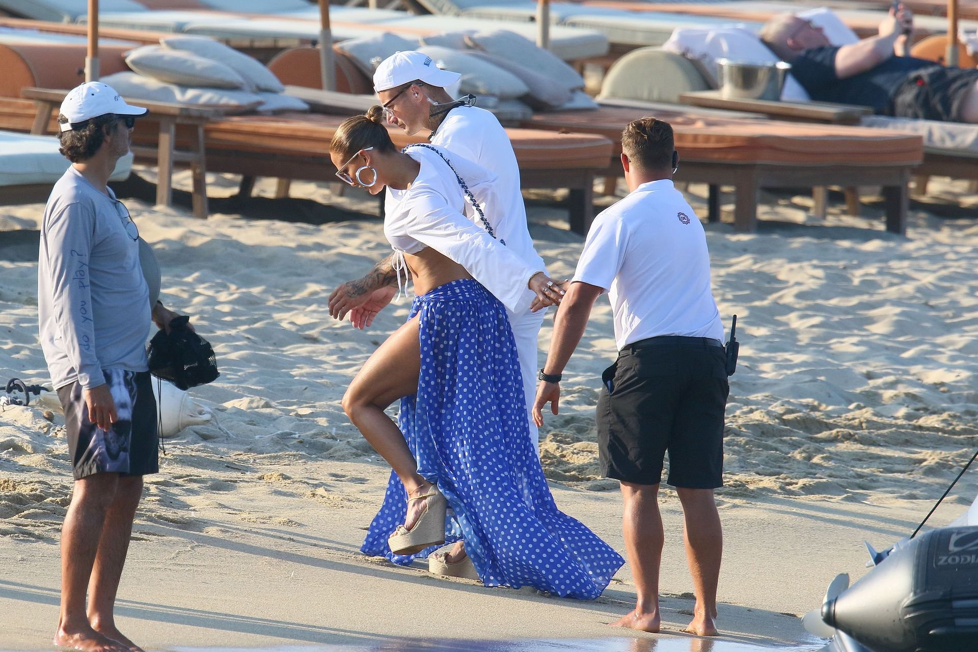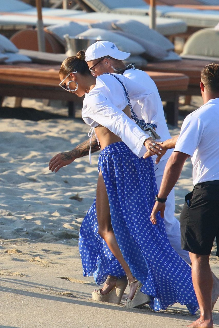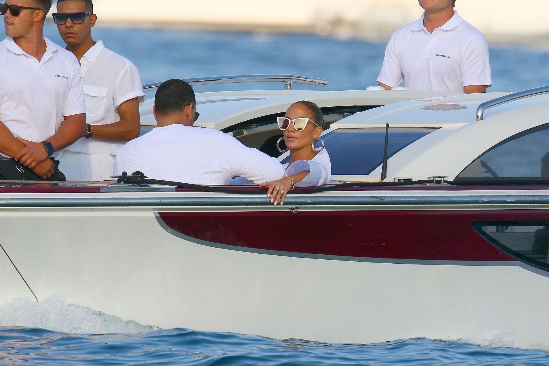 Jennifer Lopez et Alex Rodriguez ont été vus arrivant à Nikki Beach dans le sud de la France pour le 60e anniversaire de Magic Johnson, le 02/09/2019.