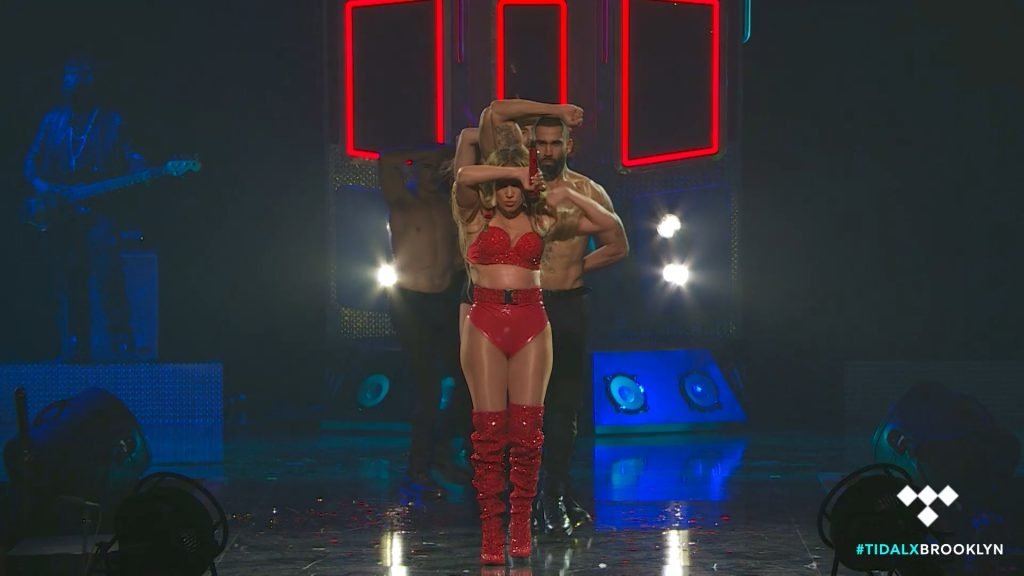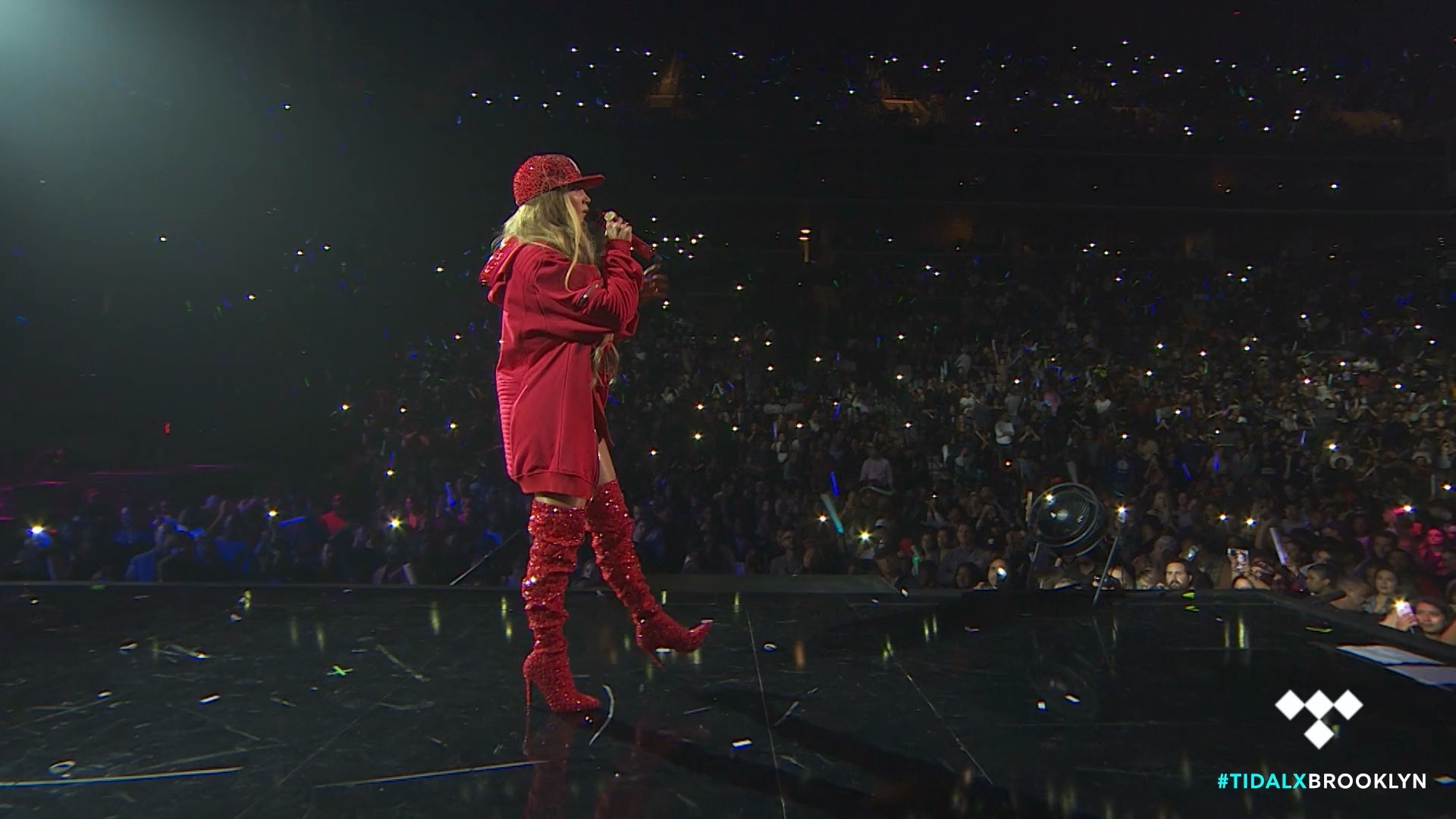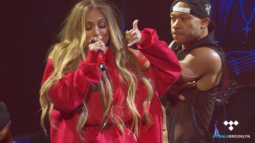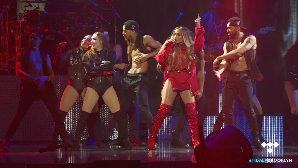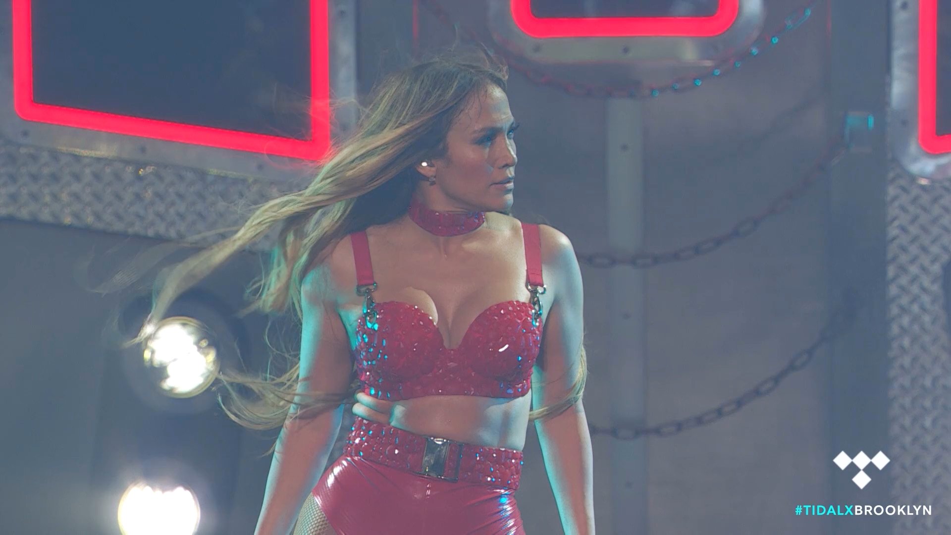 Jennifer Lopez se produit lors du troisième concert caritatif annuel TIDAL X BROOKLYN à New York, le 17/10/2017. Jennifer Lynn López est une chanteuse américaine, danseuse, actrice. Âge – 48 ans.