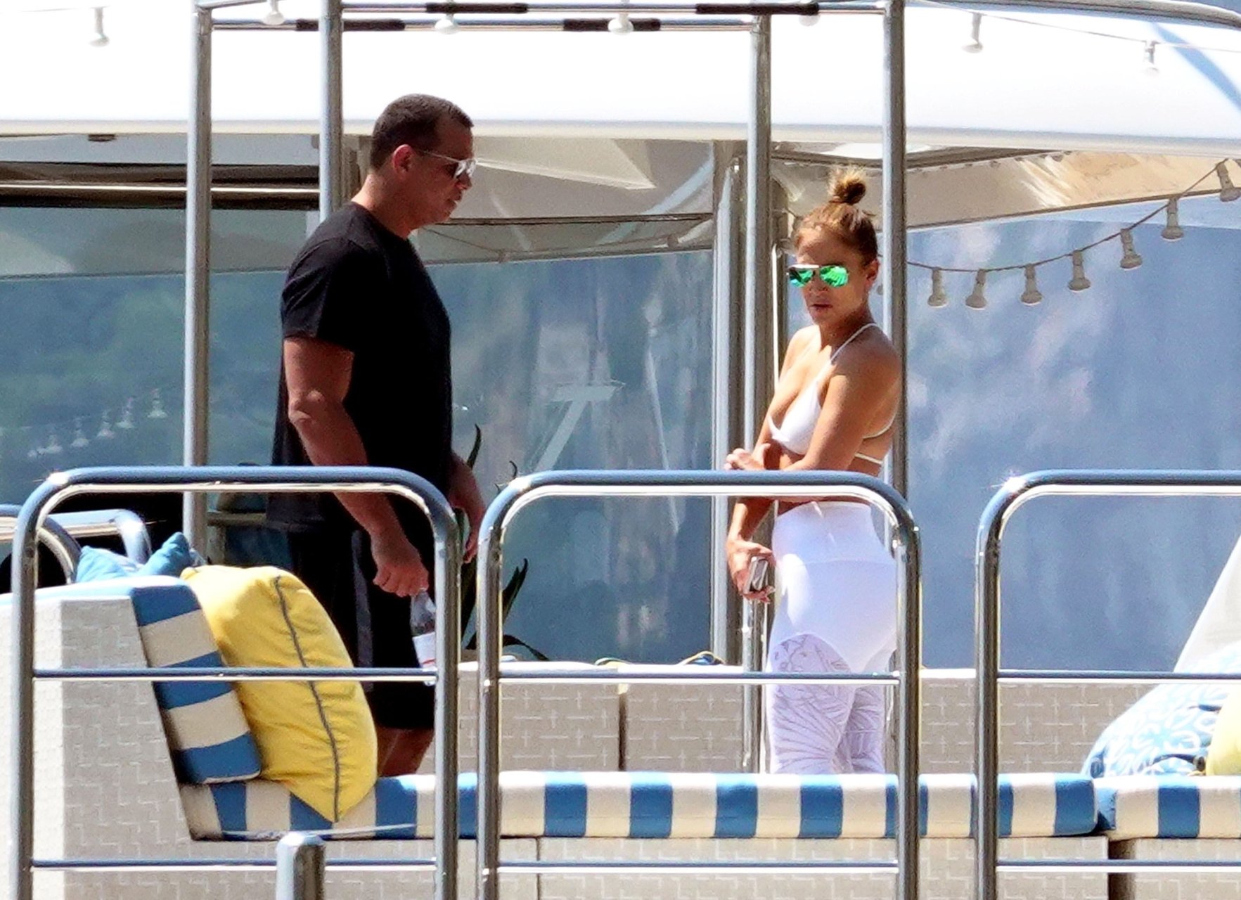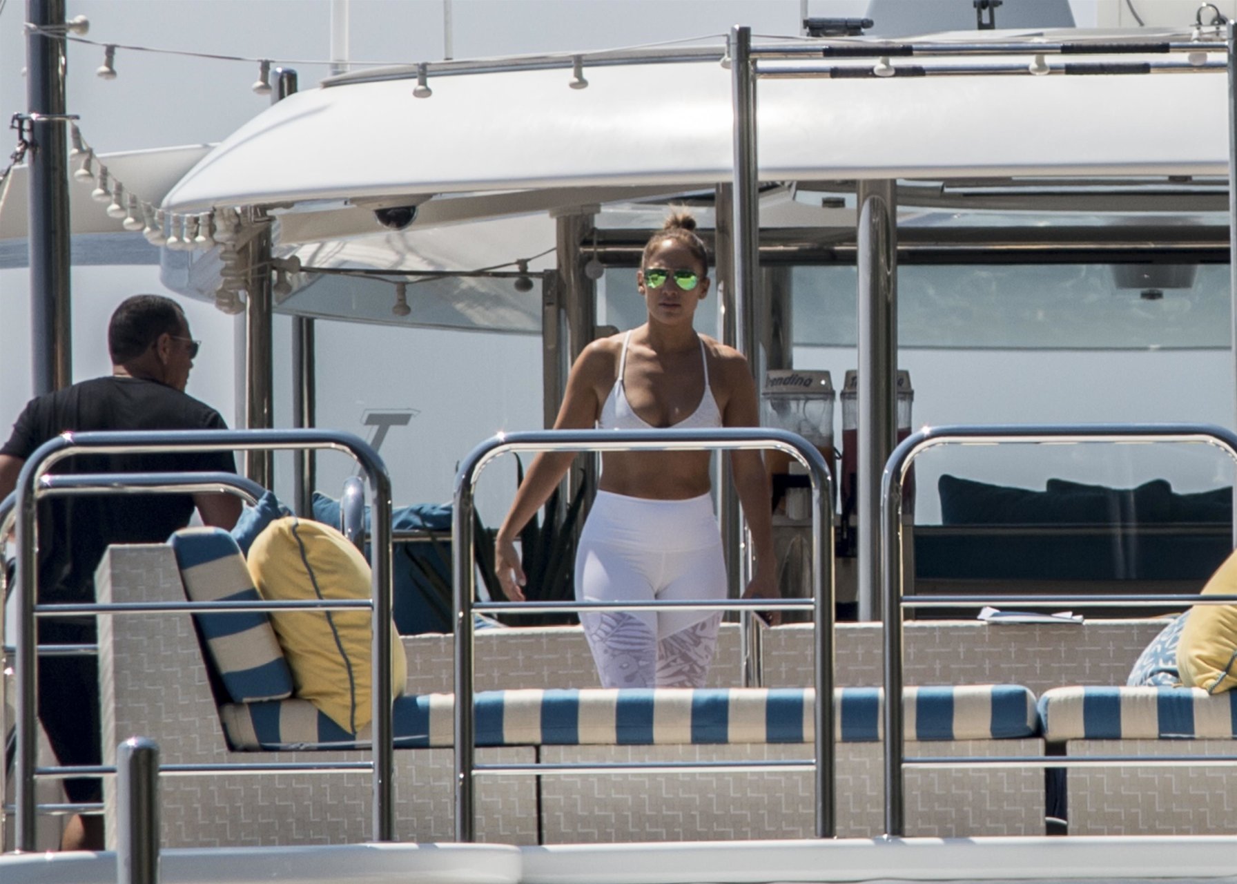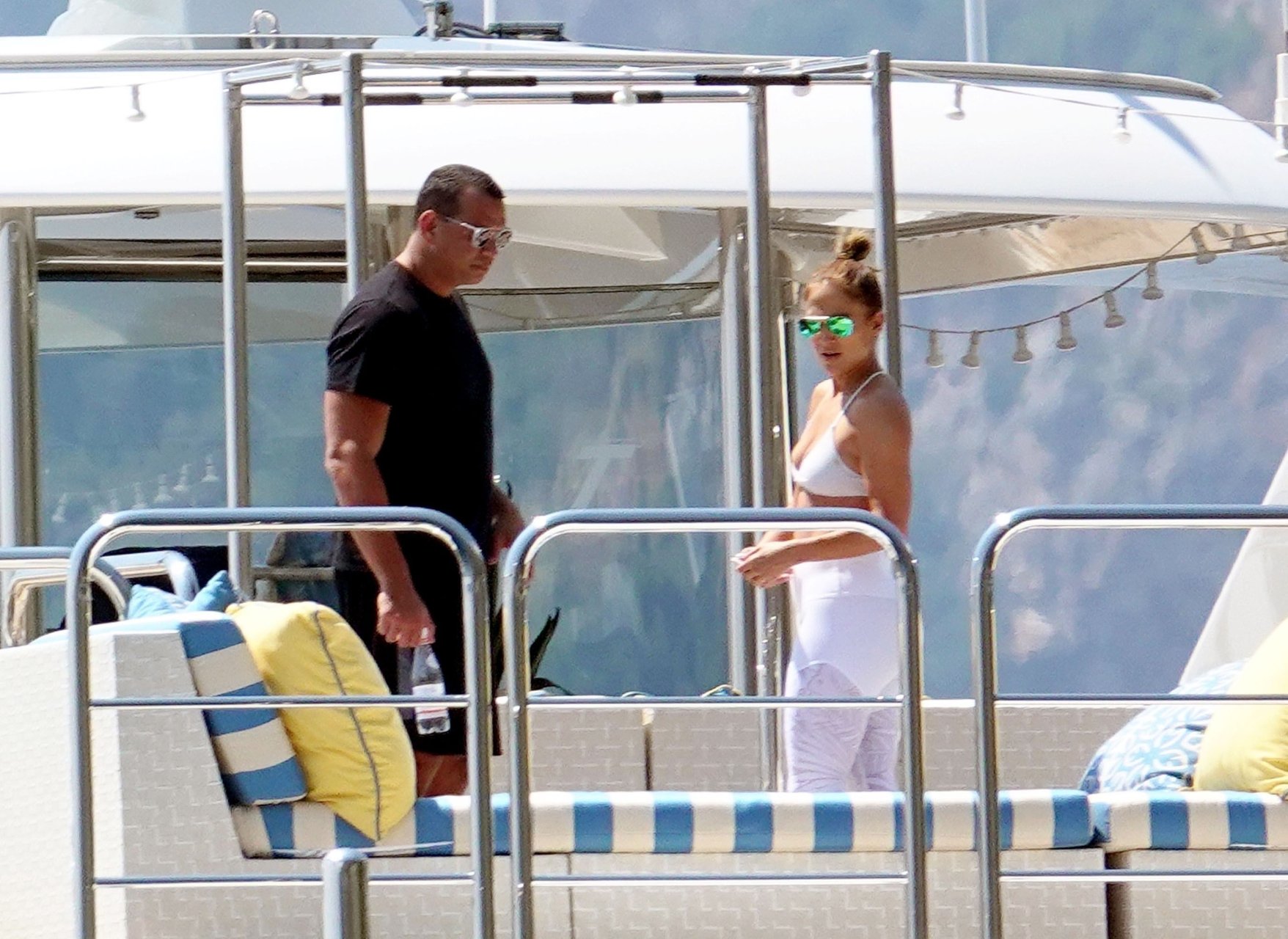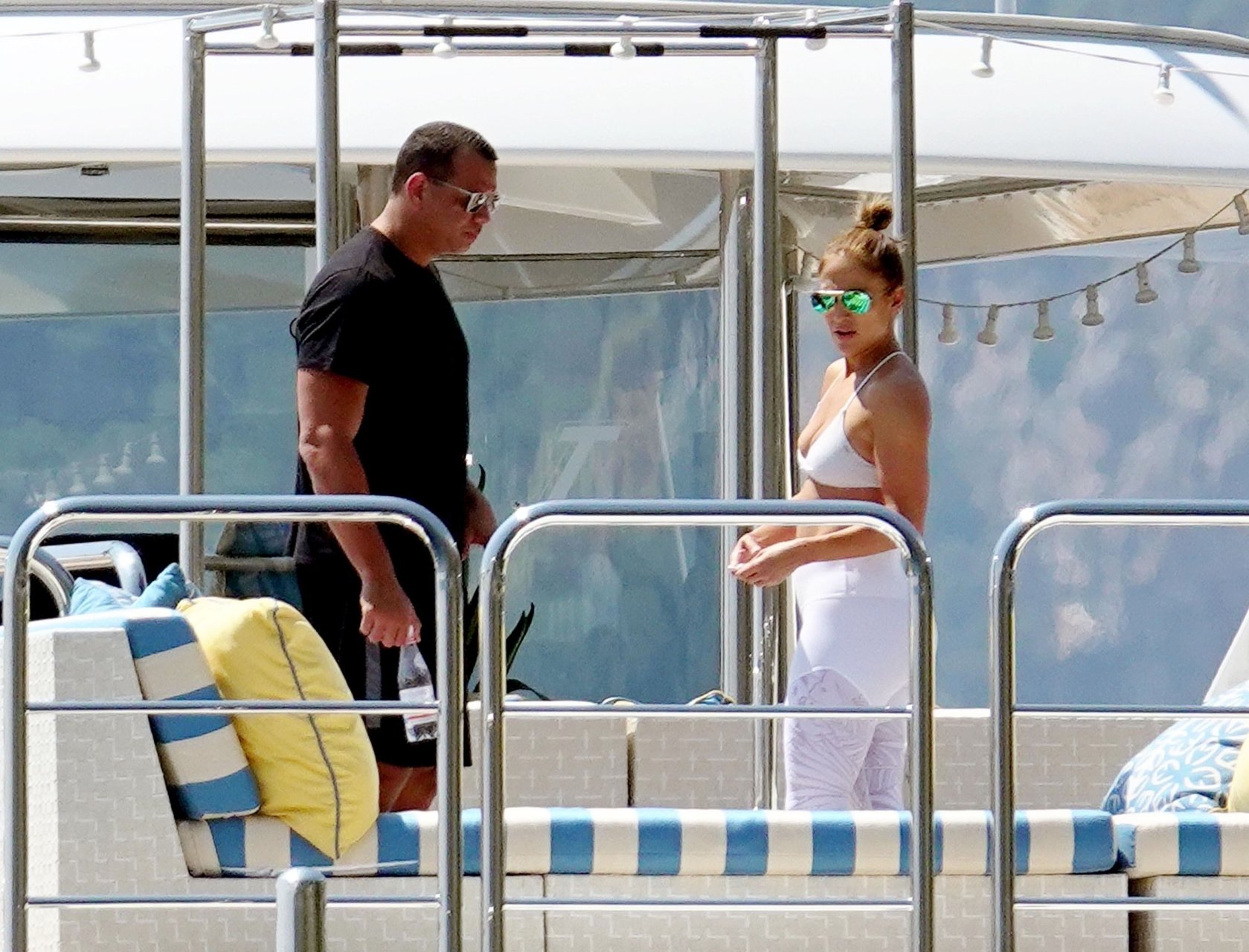 JLo a été aperçue avec son petit ami, Alex Rodriguez, sur leur yacht de luxe, accompagnés du producteur de musique et manager de Jennifer, Benny Medina. Le groupe est en vacances sur leur yacht de luxe à Positano, le 08/07/2018.