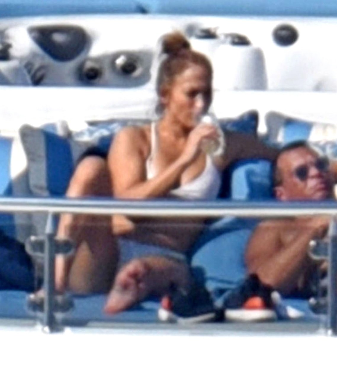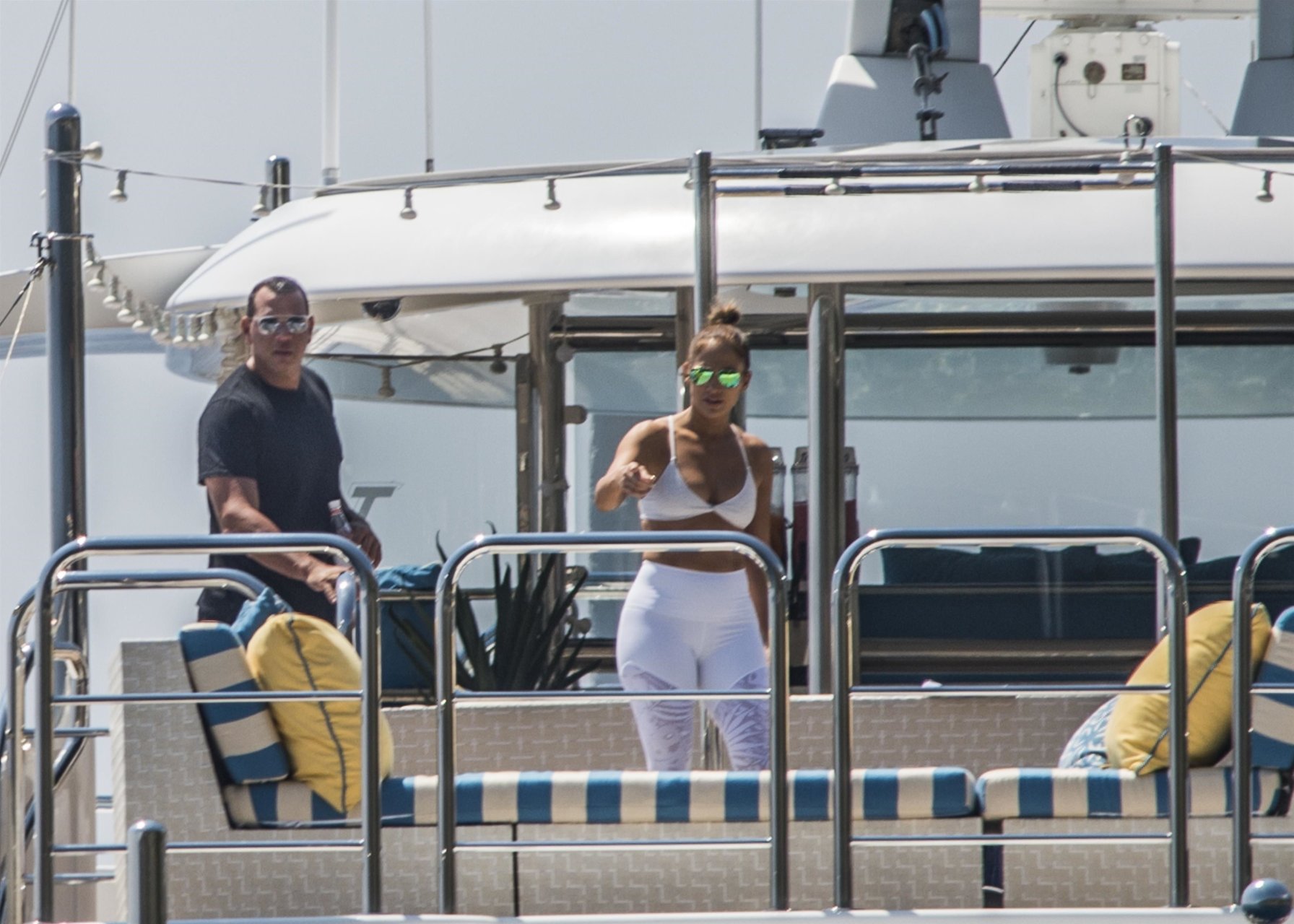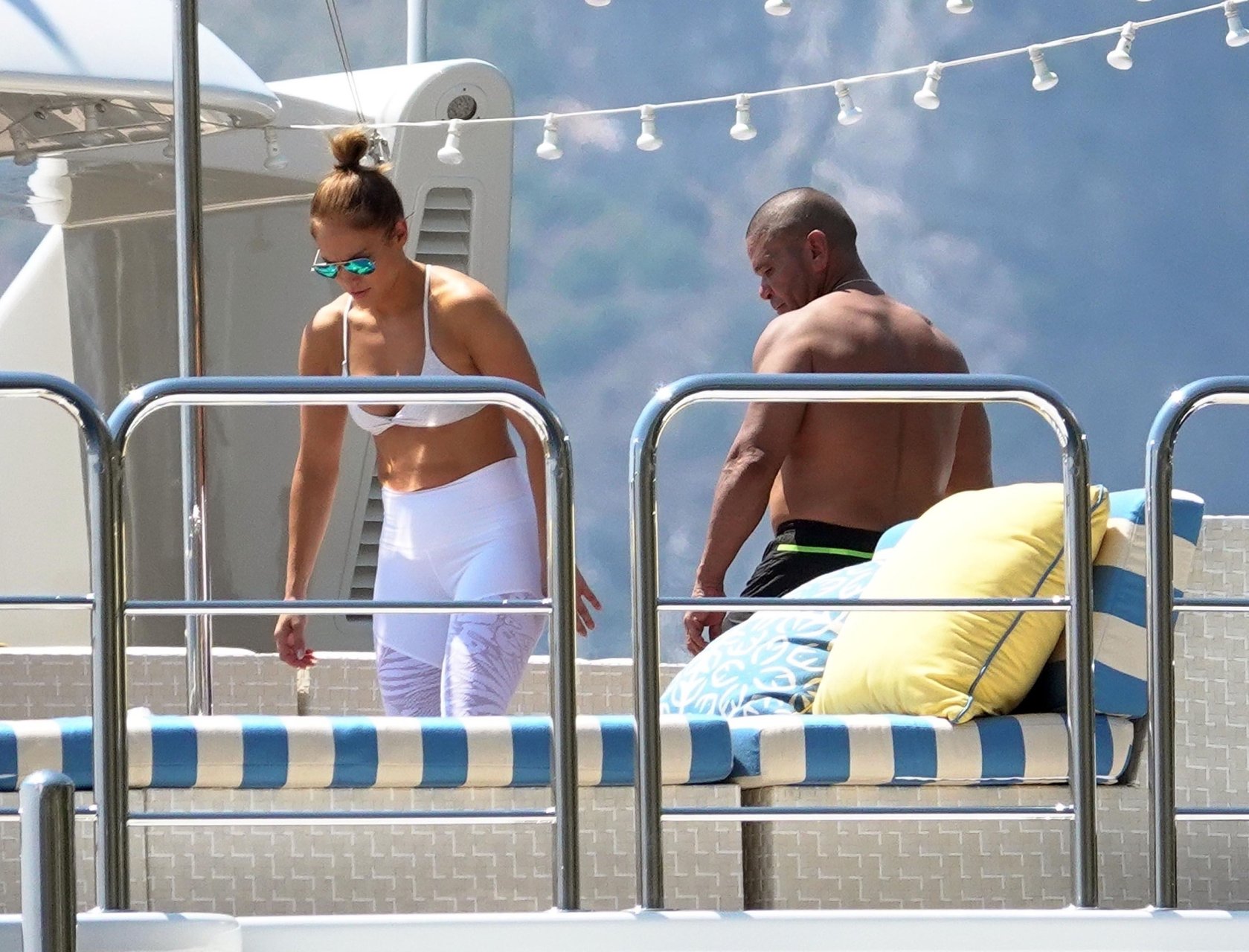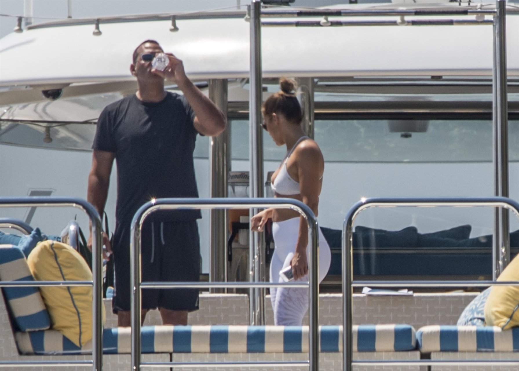 JLo a été aperçue avec son petit ami, Alex Rodriguez, sur leur yacht de luxe, accompagnés du producteur de musique et manager de Jennifer, Benny Medina. Le groupe est en vacances sur leur yacht de luxe à Positano, le 08/07/2018.