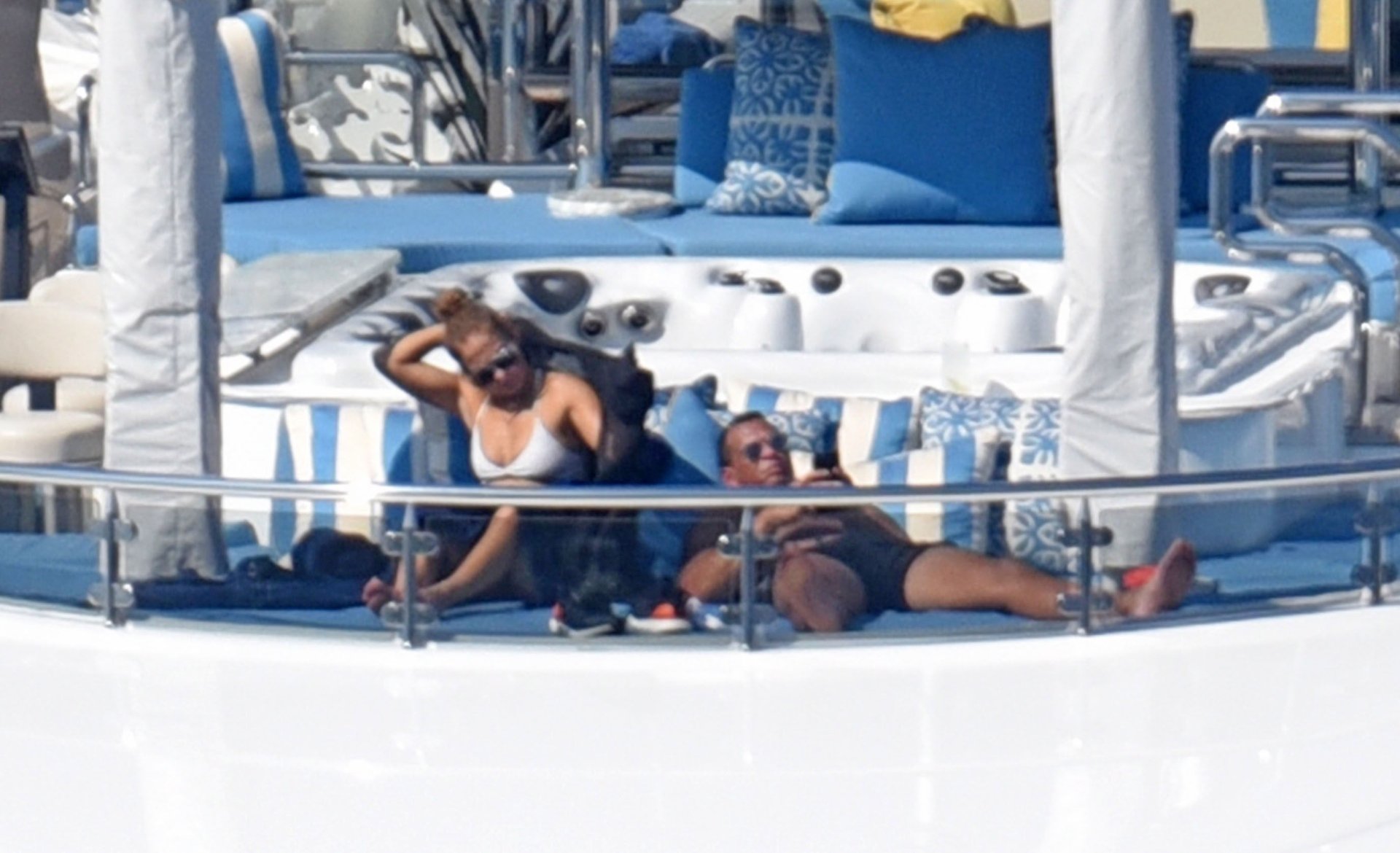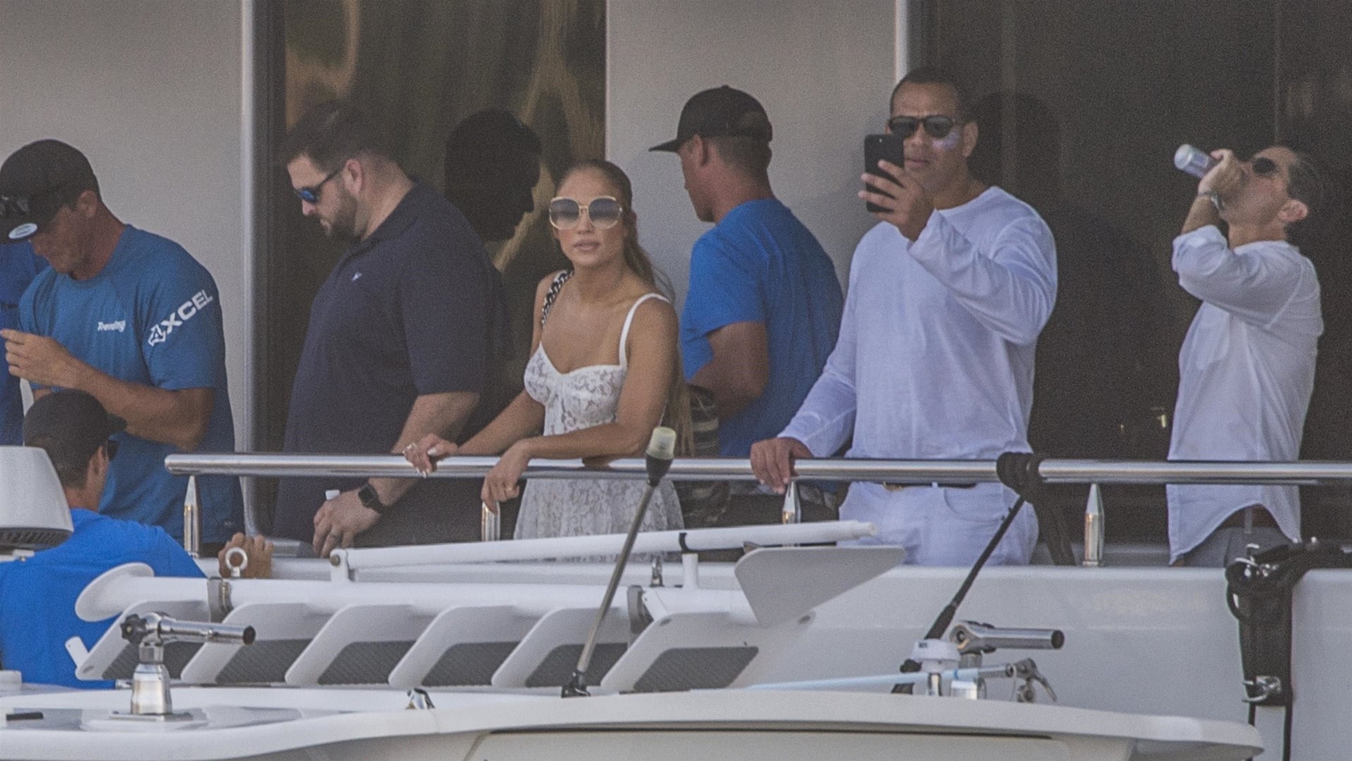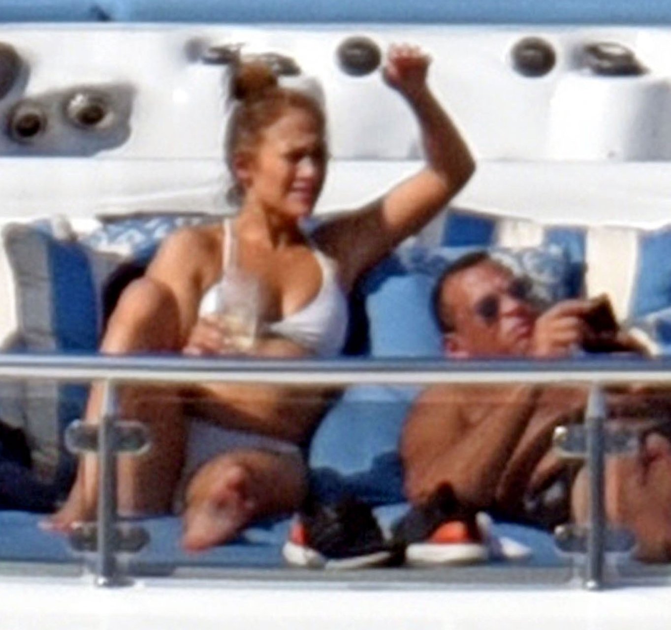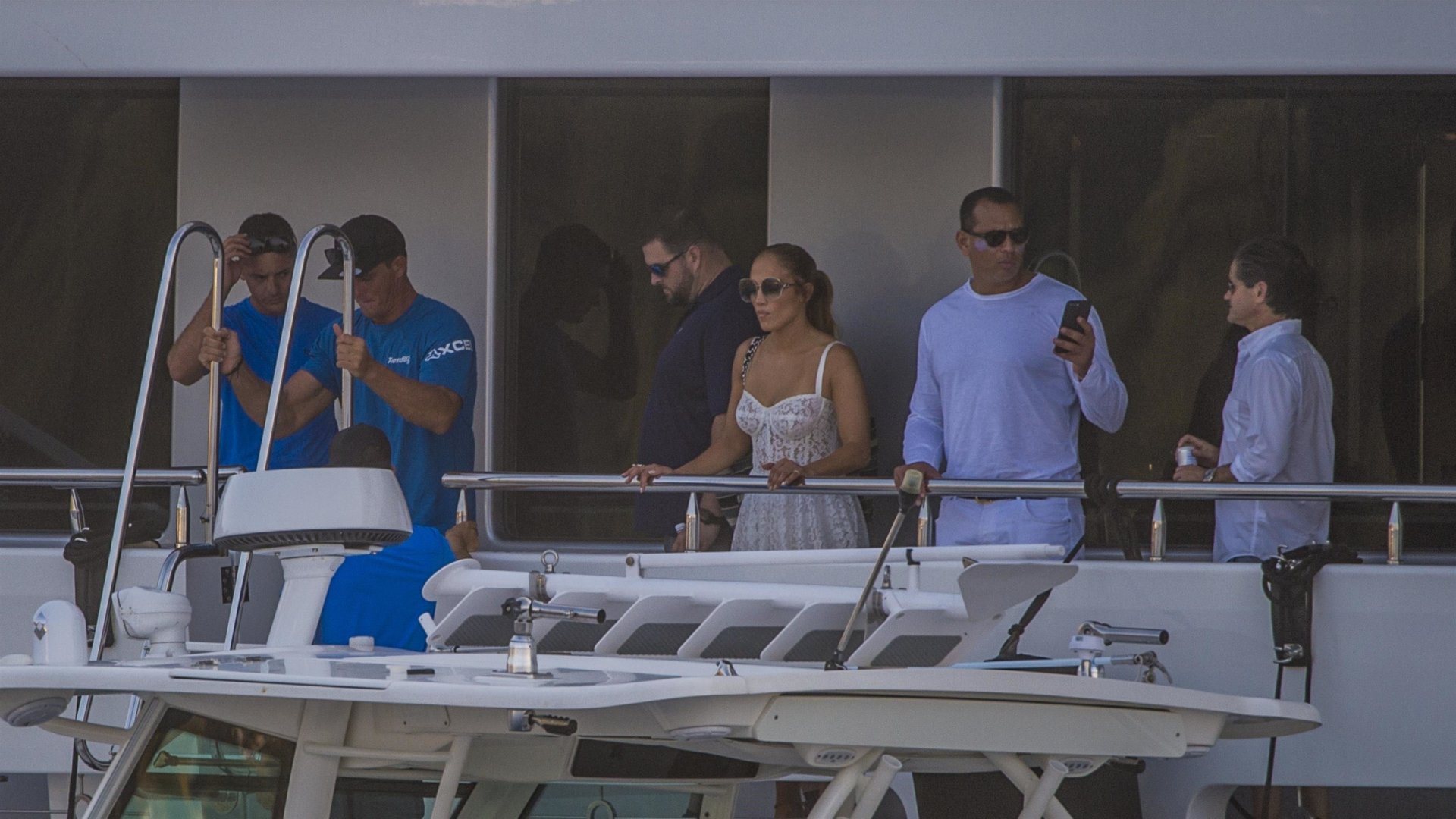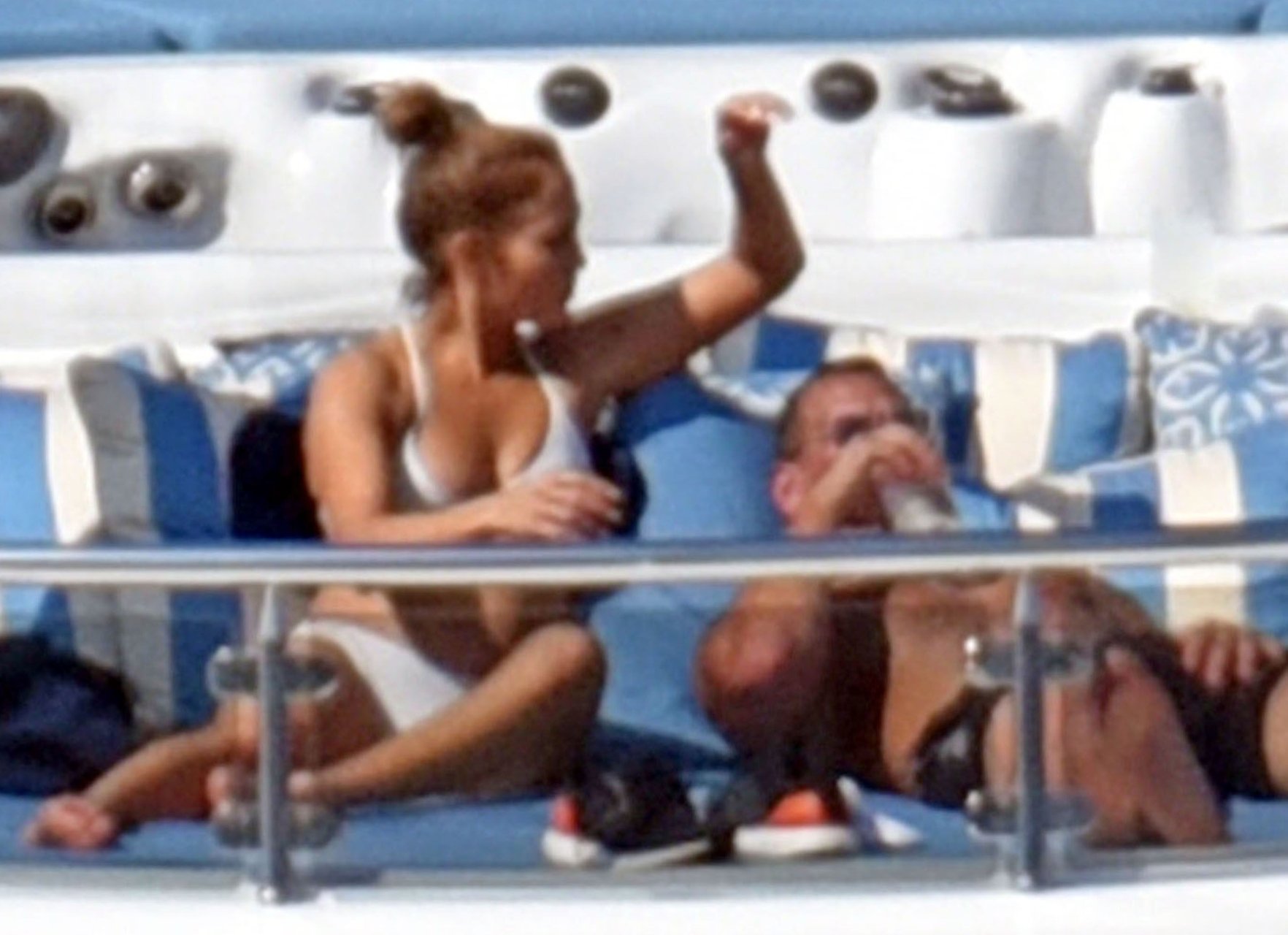 JLo a été aperçue avec son petit ami, Alex Rodriguez, sur leur yacht de luxe, accompagnés du producteur de musique et manager de Jennifer, Benny Medina. Le groupe est en vacances sur leur yacht de luxe à Positano, le 08/07/2018.