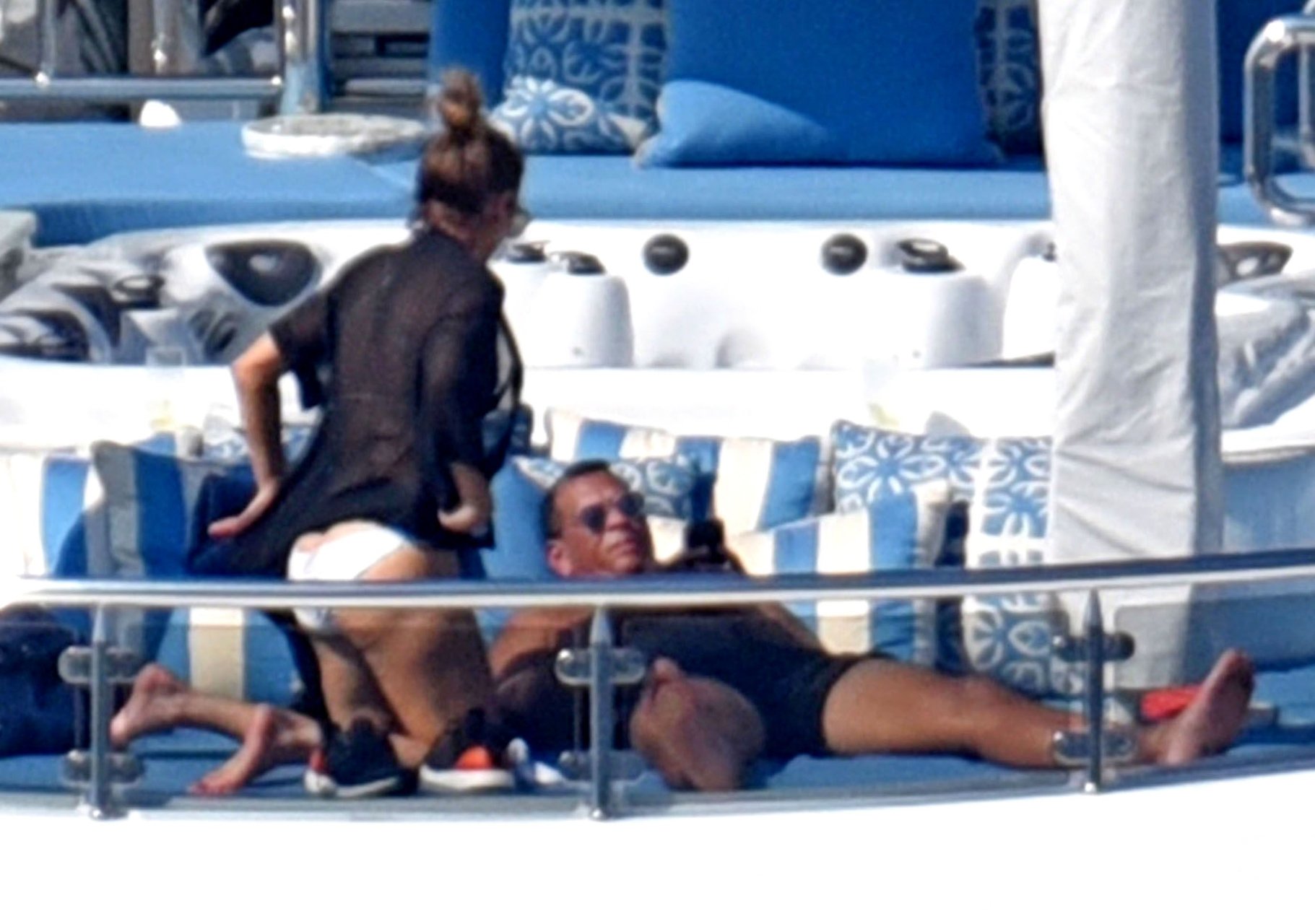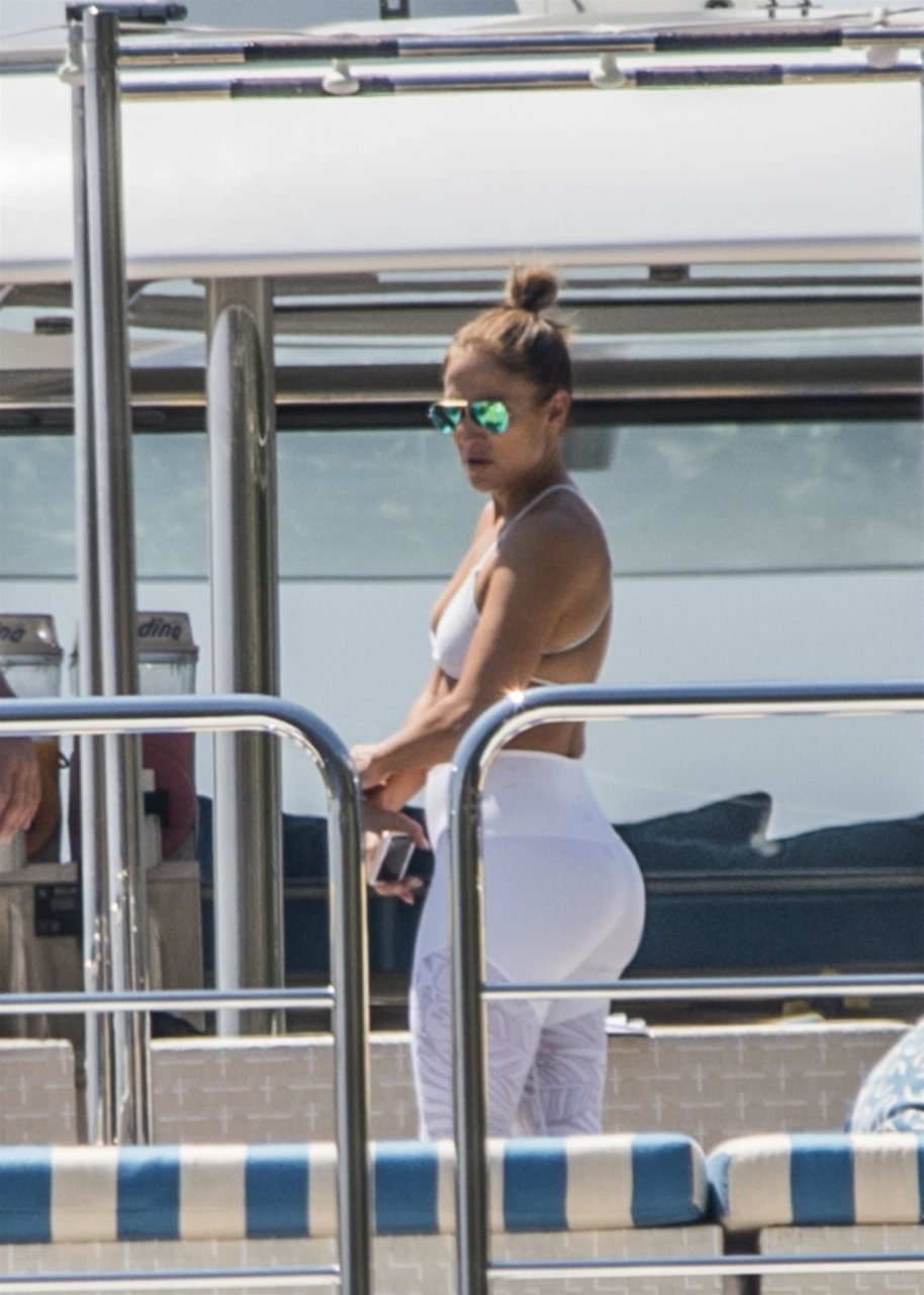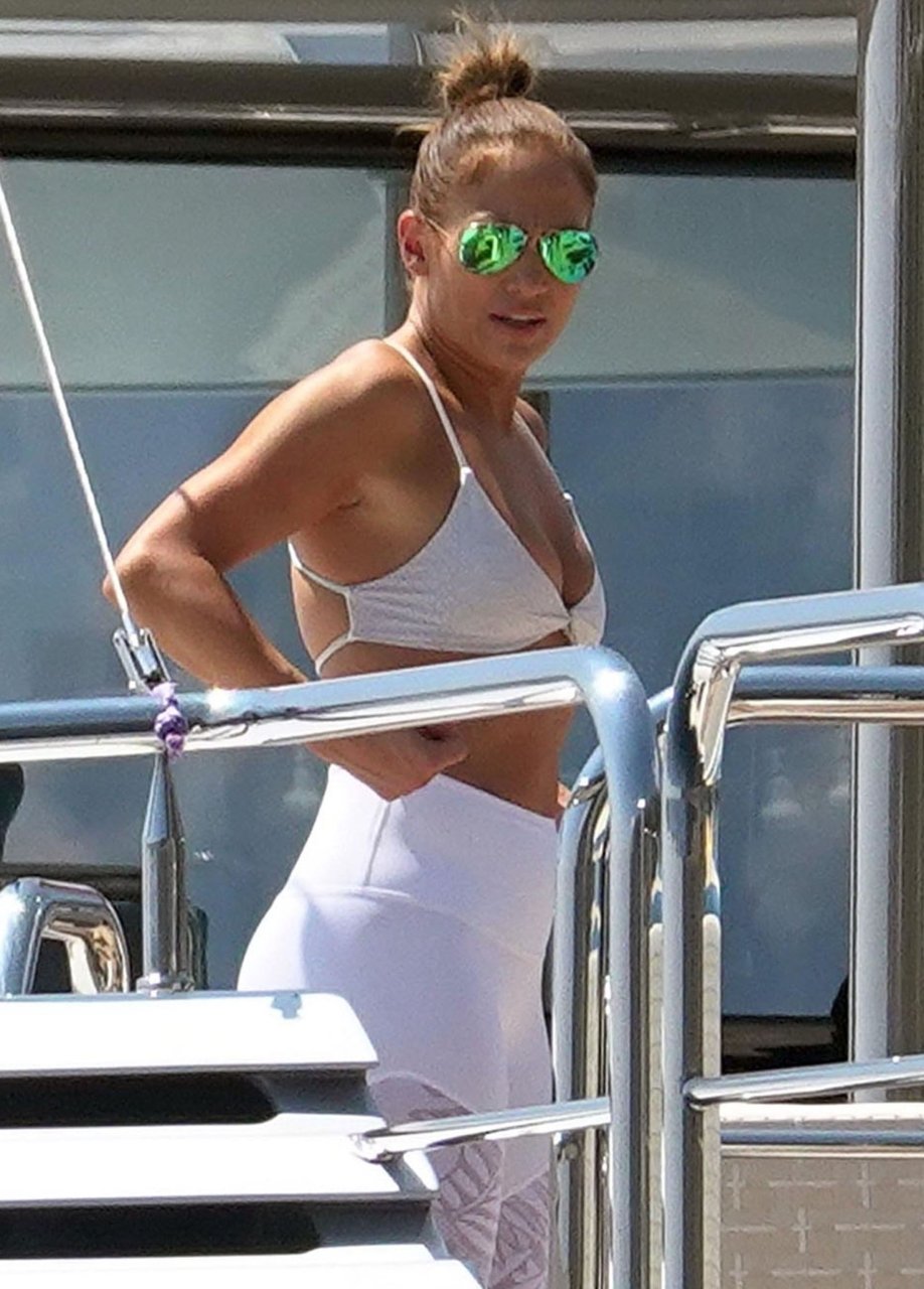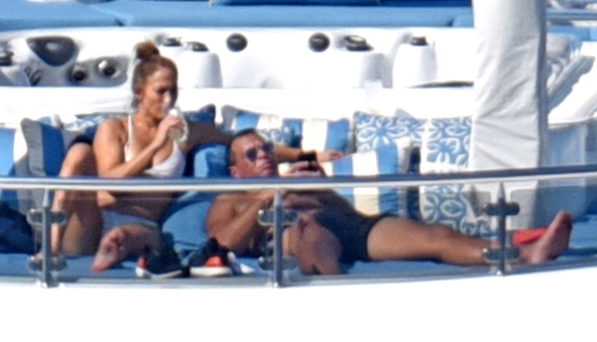 JLo a été aperçue avec son petit ami, Alex Rodriguez, sur leur yacht de luxe, accompagnés du producteur de musique et manager de Jennifer, Benny Medina. Le groupe est en vacances sur leur yacht de luxe à Positano, le 08/07/2018.