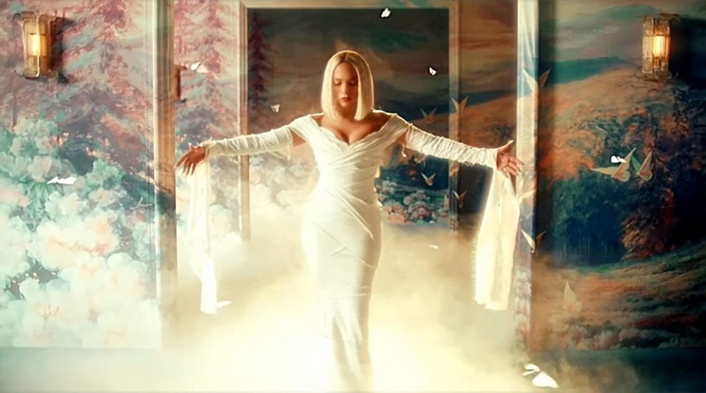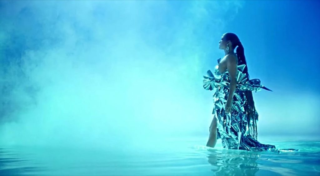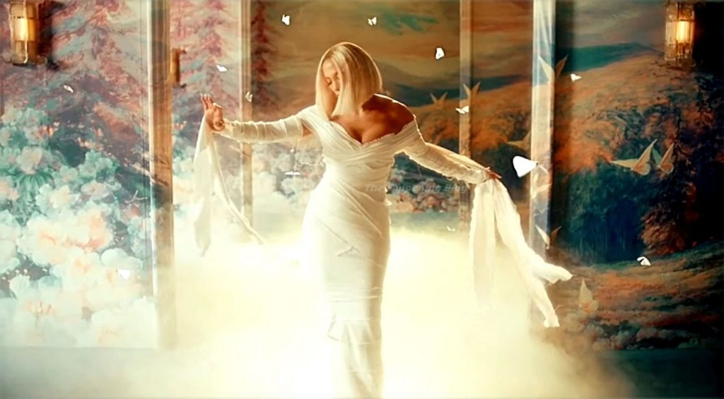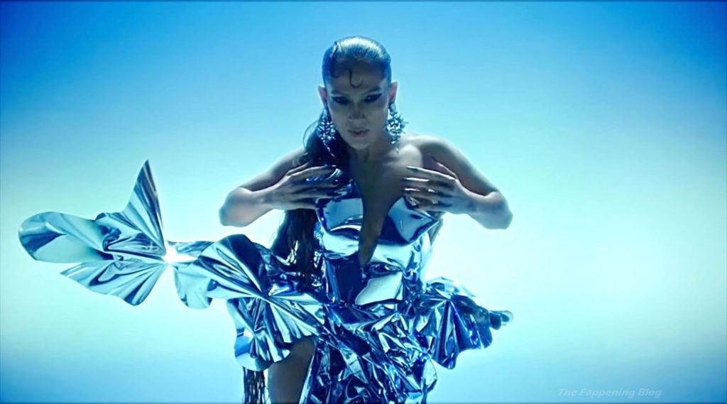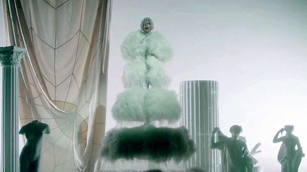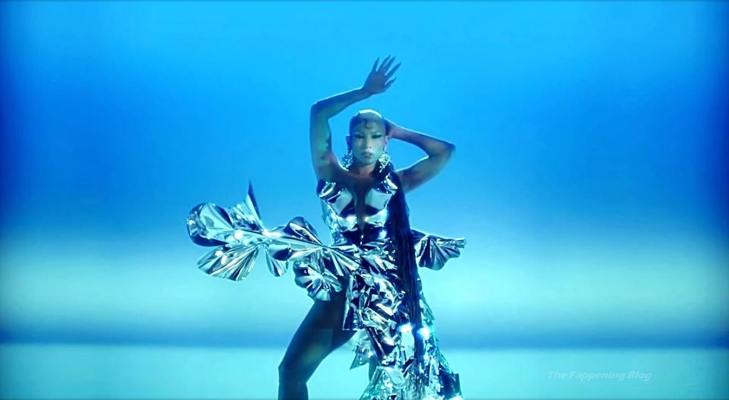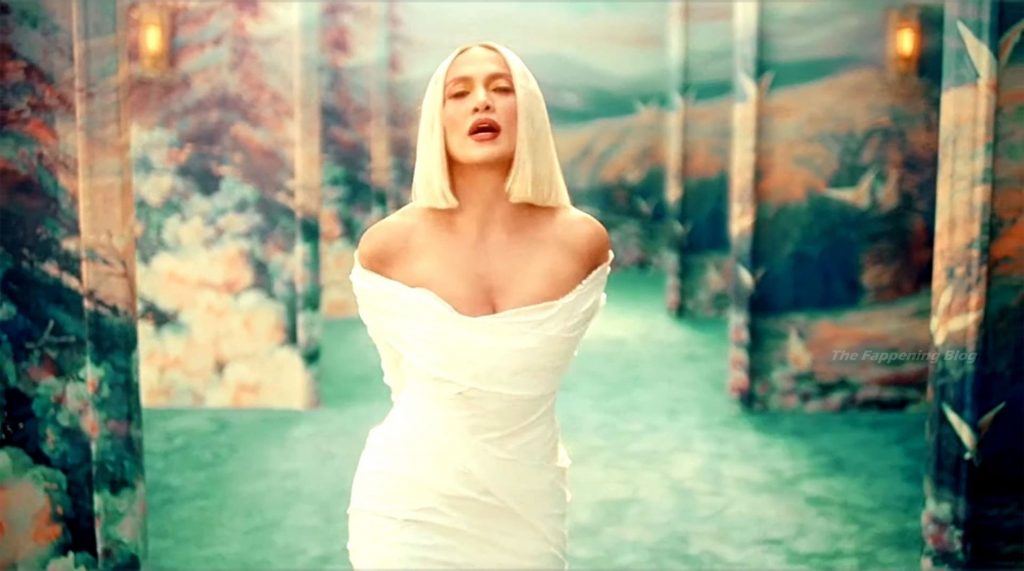 Ses abdominaux impressionnants et sa silhouette musclée étaient visibles dans les scènes nues ainsi que dans plusieurs autres looks éthérés qu’elle portait dans la vidéo.