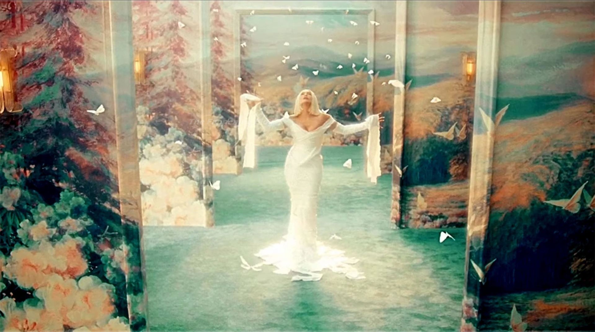 Ses abdominaux impressionnants et sa silhouette musclée étaient visibles dans les scènes nues ainsi que dans plusieurs autres looks éthérés qu’elle portait dans la vidéo.