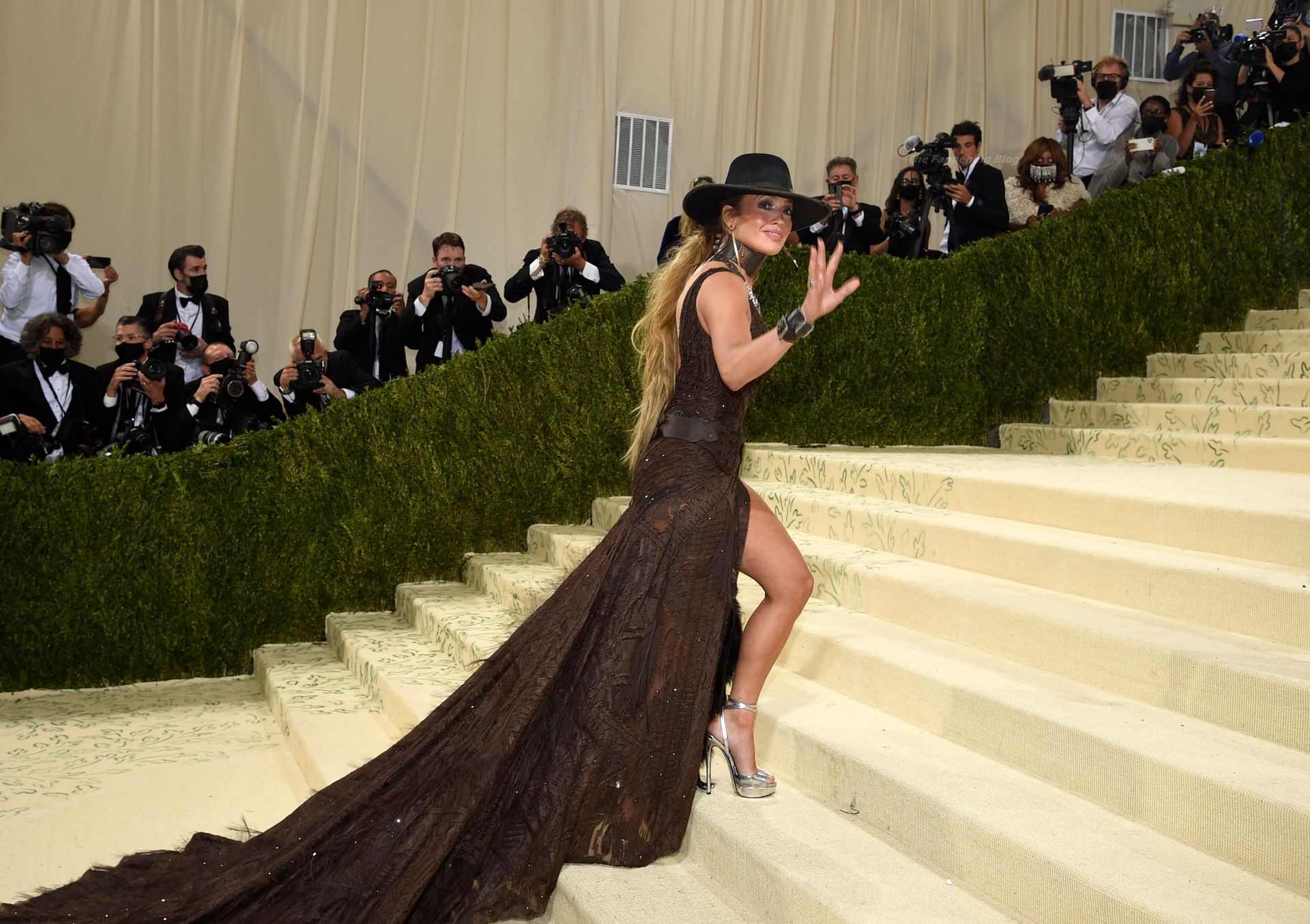 Chanteuse/actrice Jennifer Lopez assiste au Met Gala 2021 Célébrant In America : Un Lexique de la Mode au Metropolitan Museum of Art à New York, 13/09/2021.