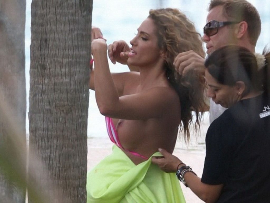 Paparazzi ont surpris la modèle fitness Jennifer Nicole Lee avec de faux seins nus lors d’une séance photo (2012).