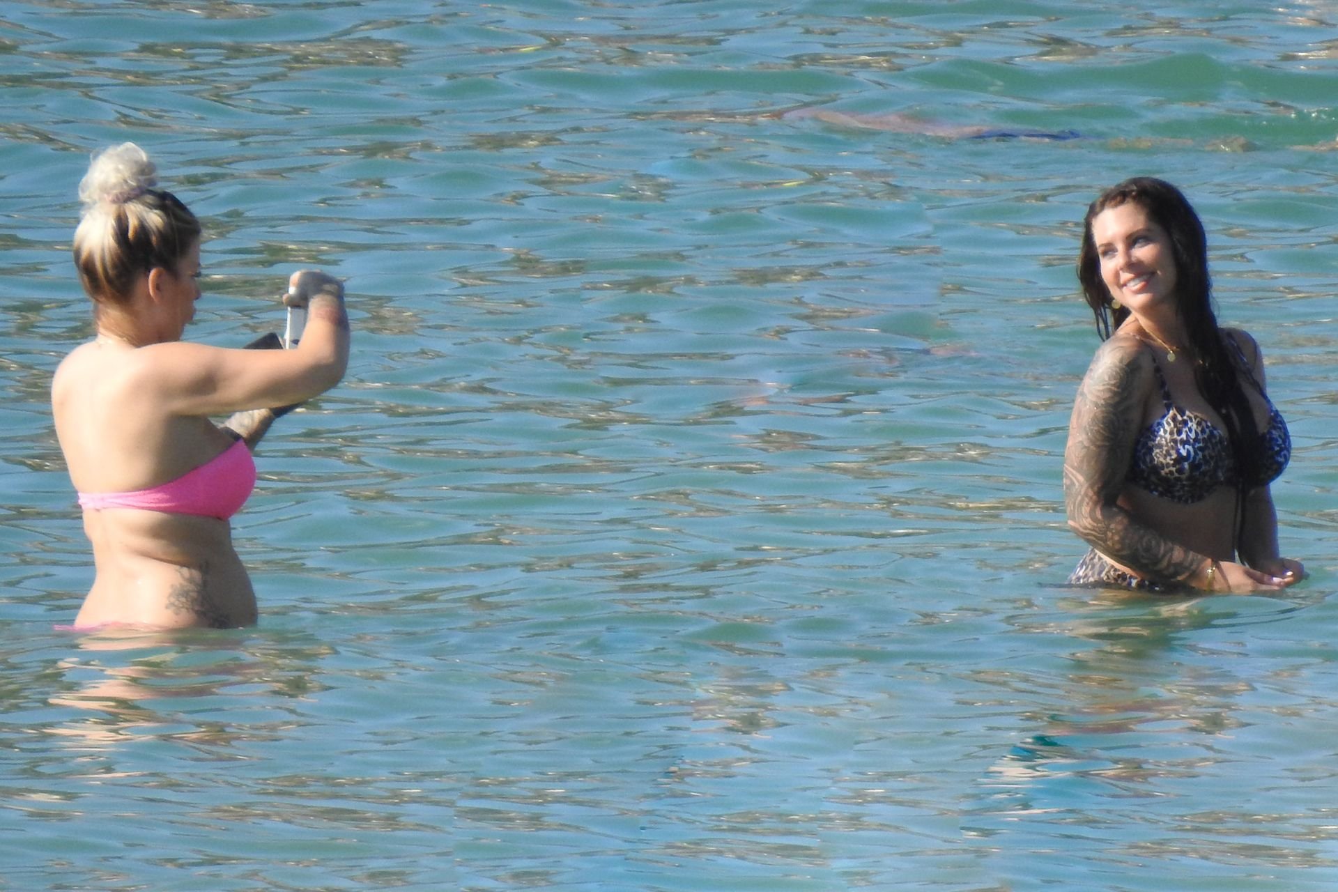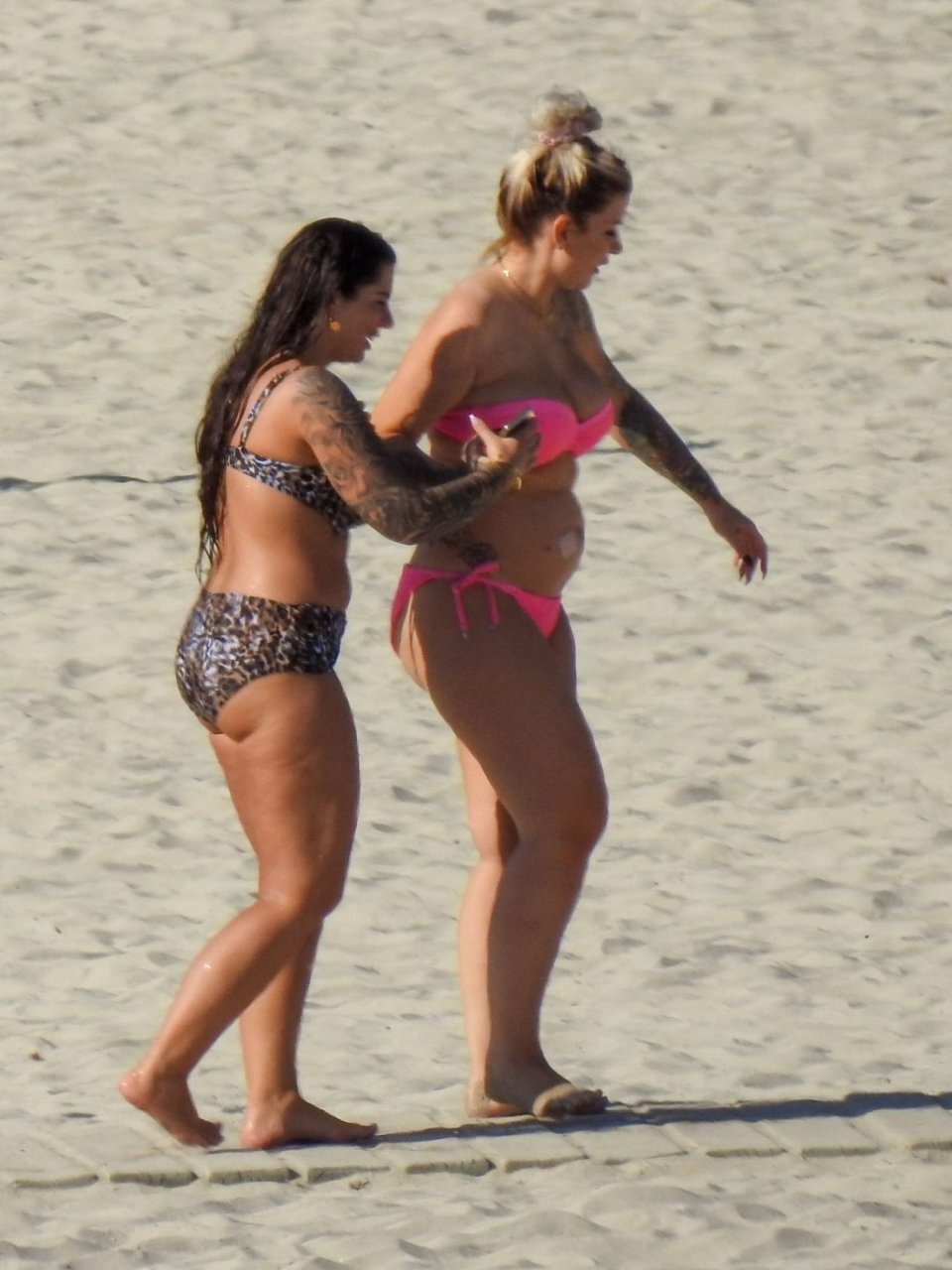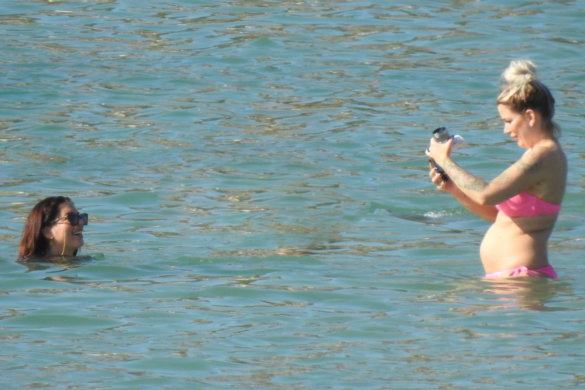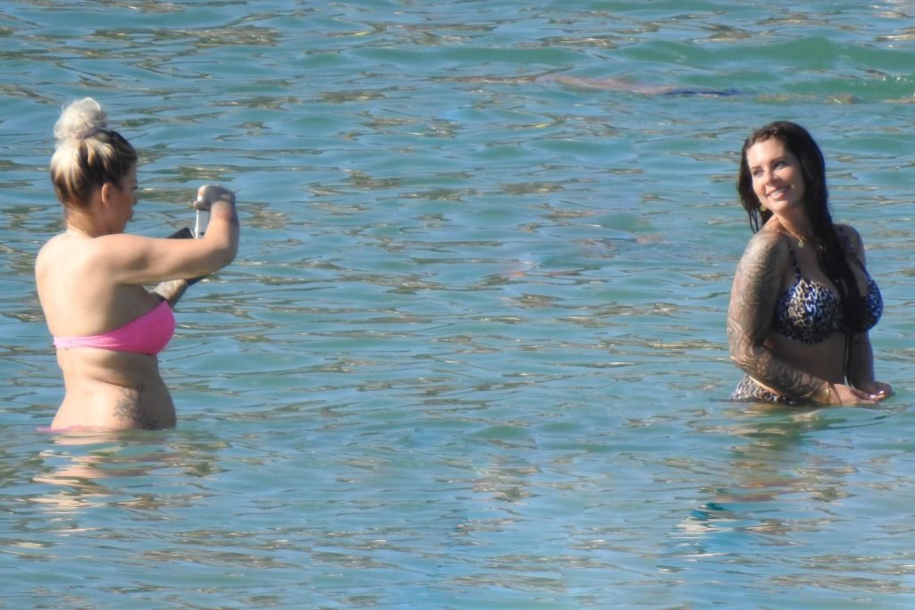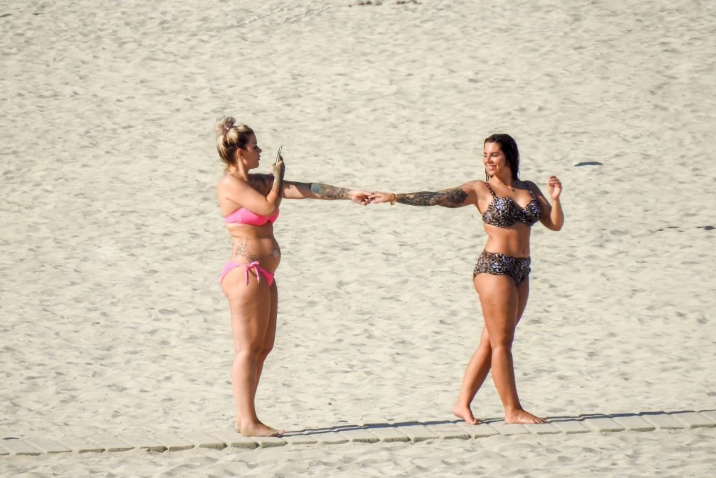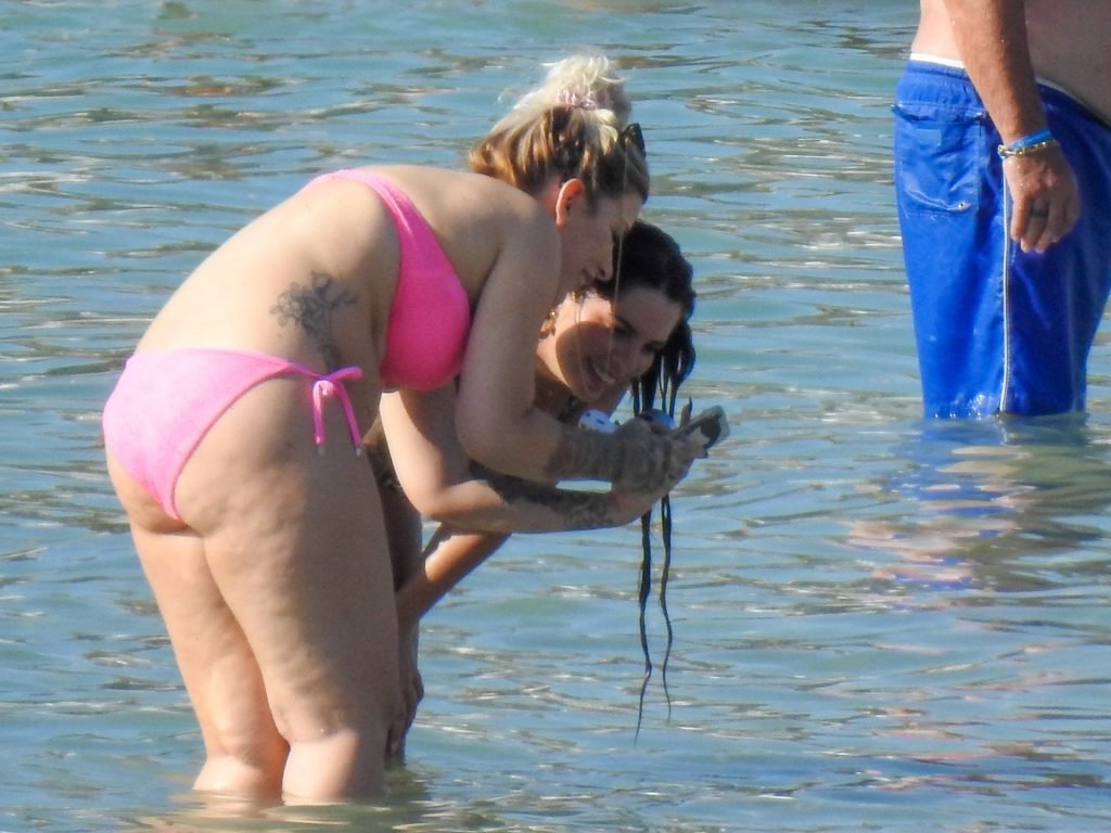 La chanteuse Jenny Frankhauser et son amie Jenny ont été vues sur la plage de Santa Ponsa, Majorque, Espagne, le 22/08/2019.