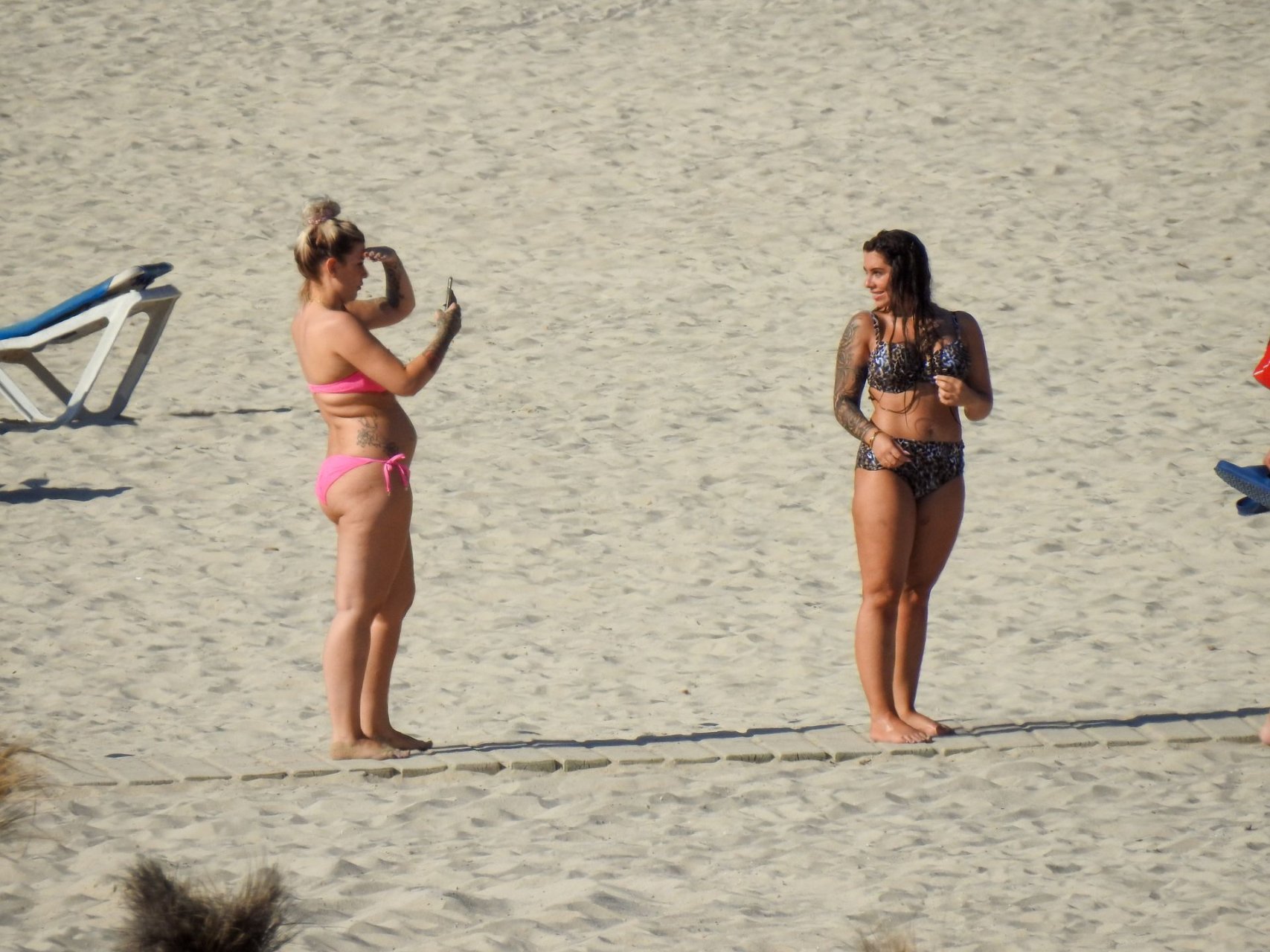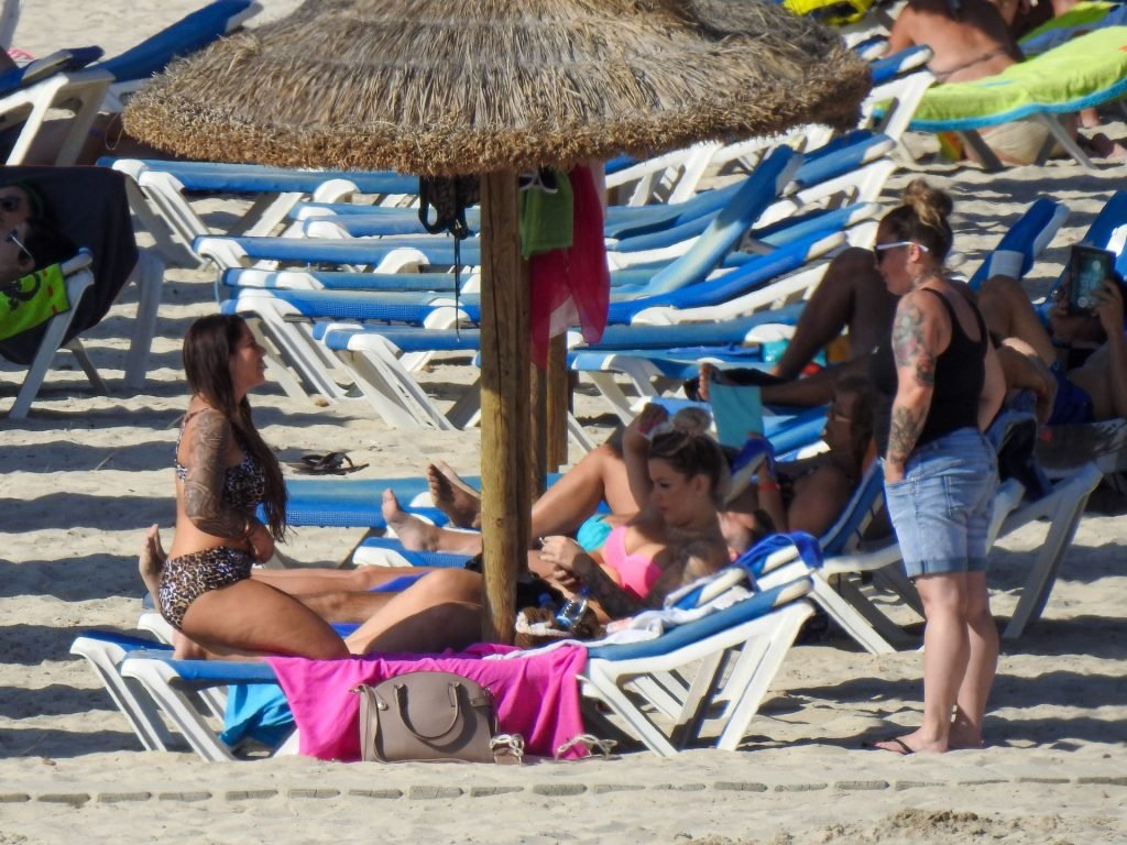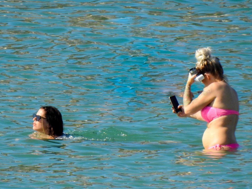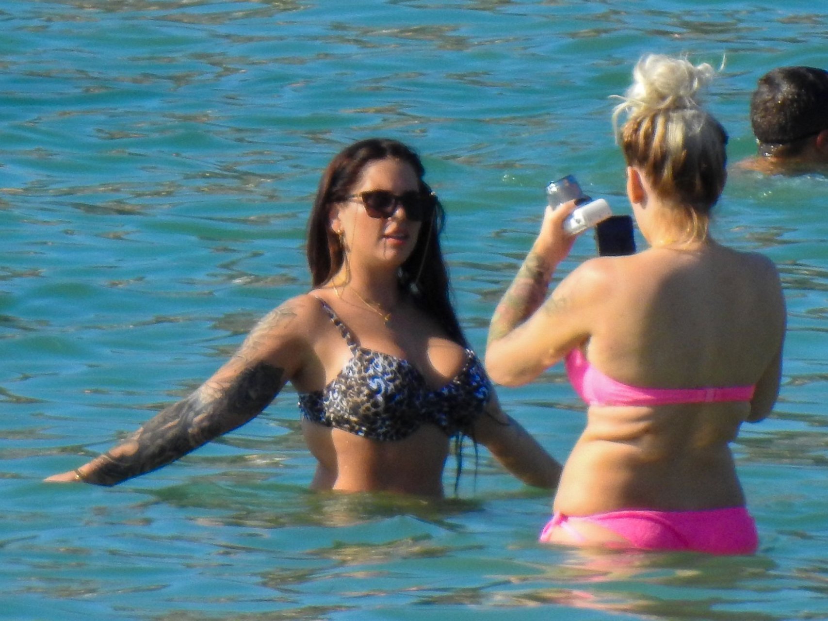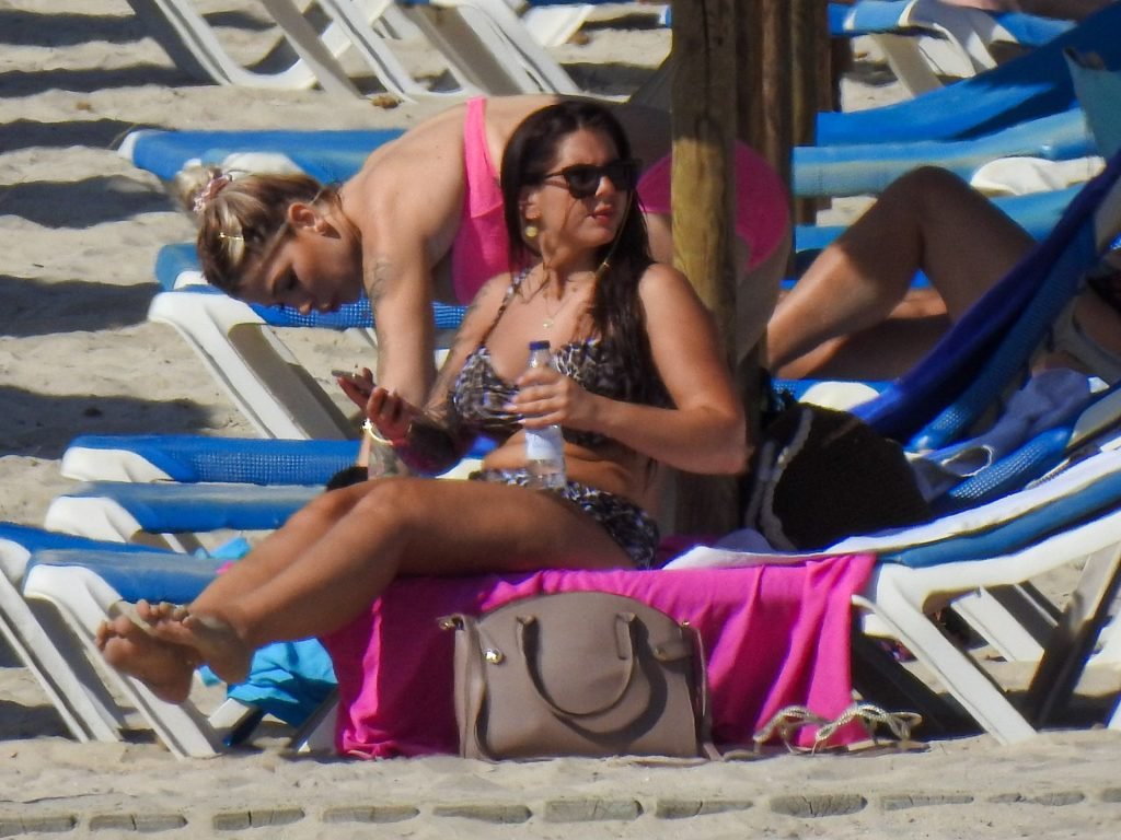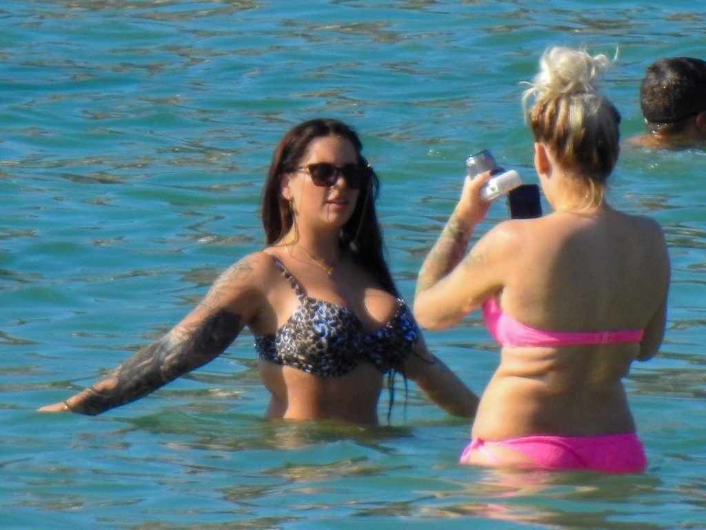 La chanteuse Jenny Frankhauser et son amie Jenny ont été vues sur la plage de Santa Ponsa, Majorque, Espagne, le 22/08/2019.