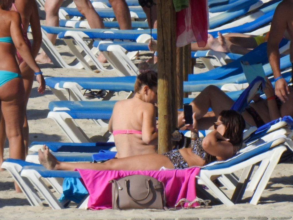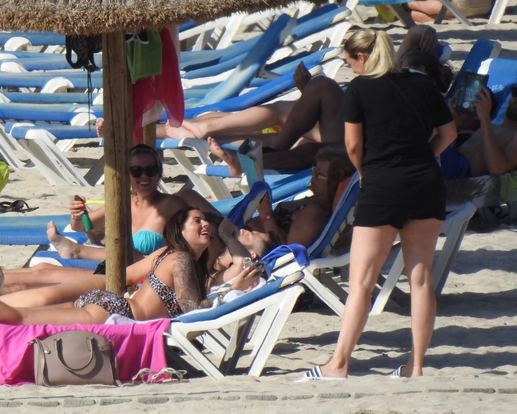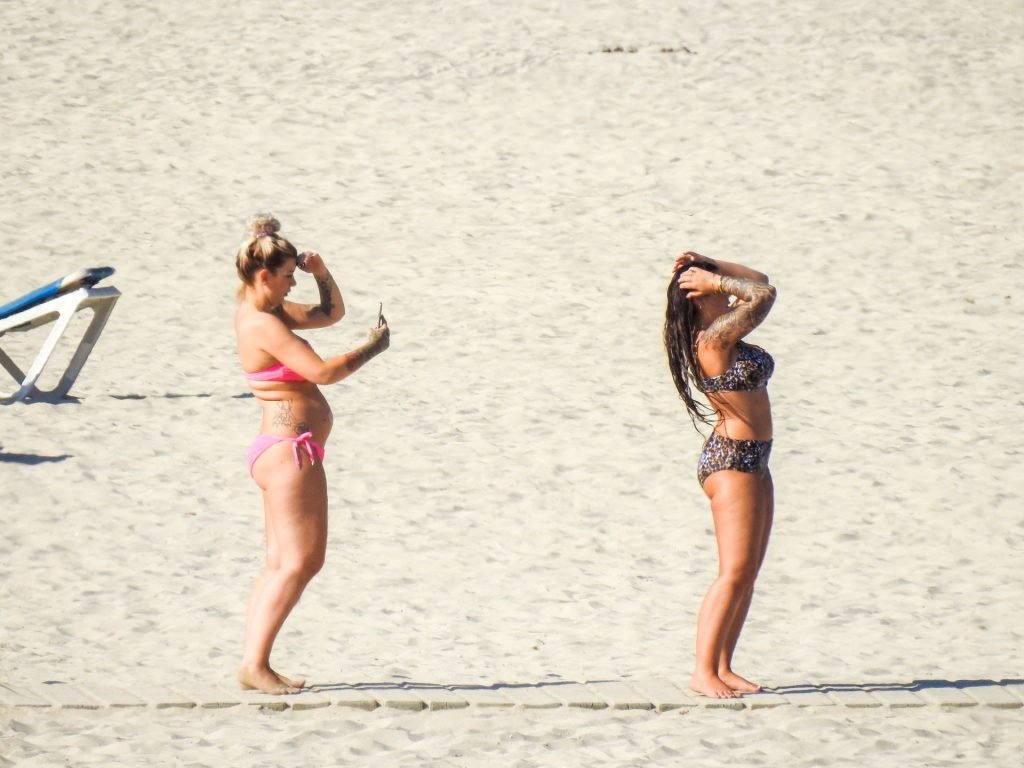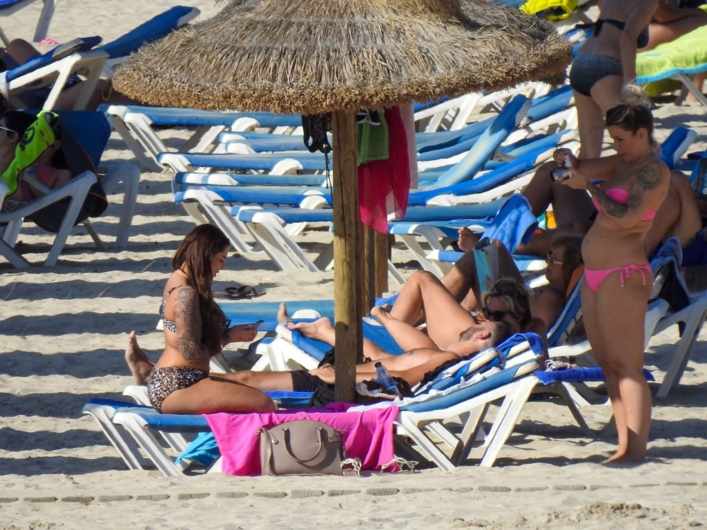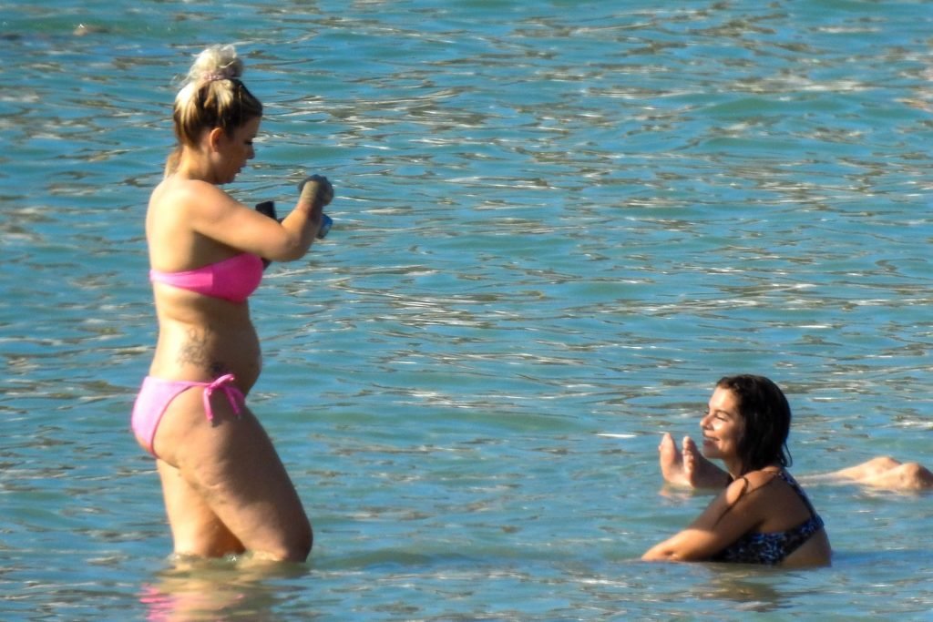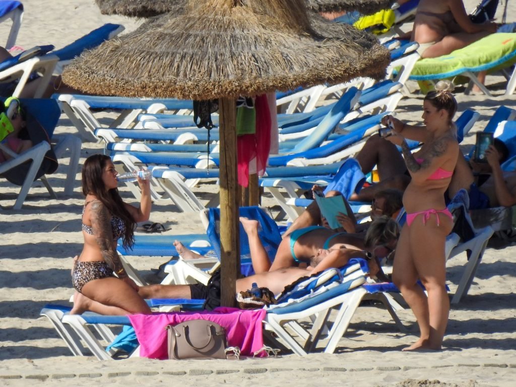 La chanteuse Jenny Frankhauser et son amie Jenny ont été vues sur la plage de Santa Ponsa, Majorque, Espagne, le 22/08/2019.