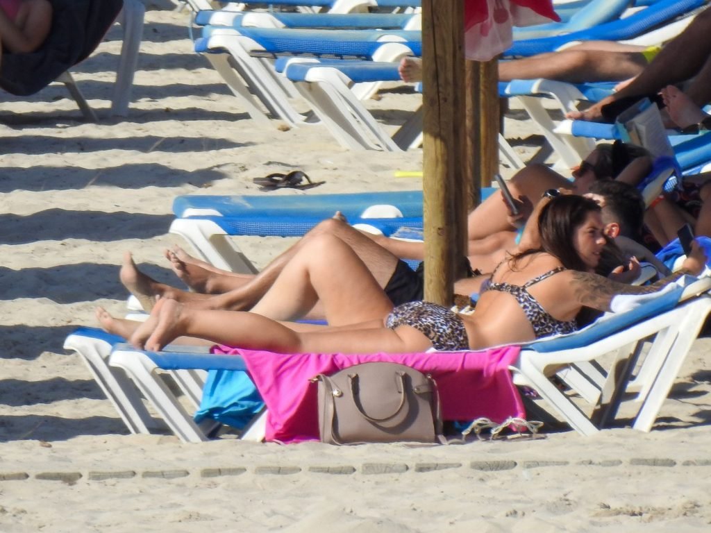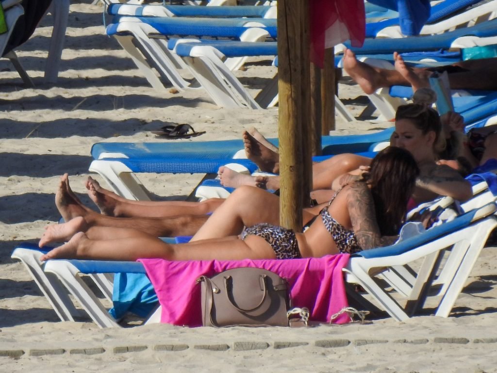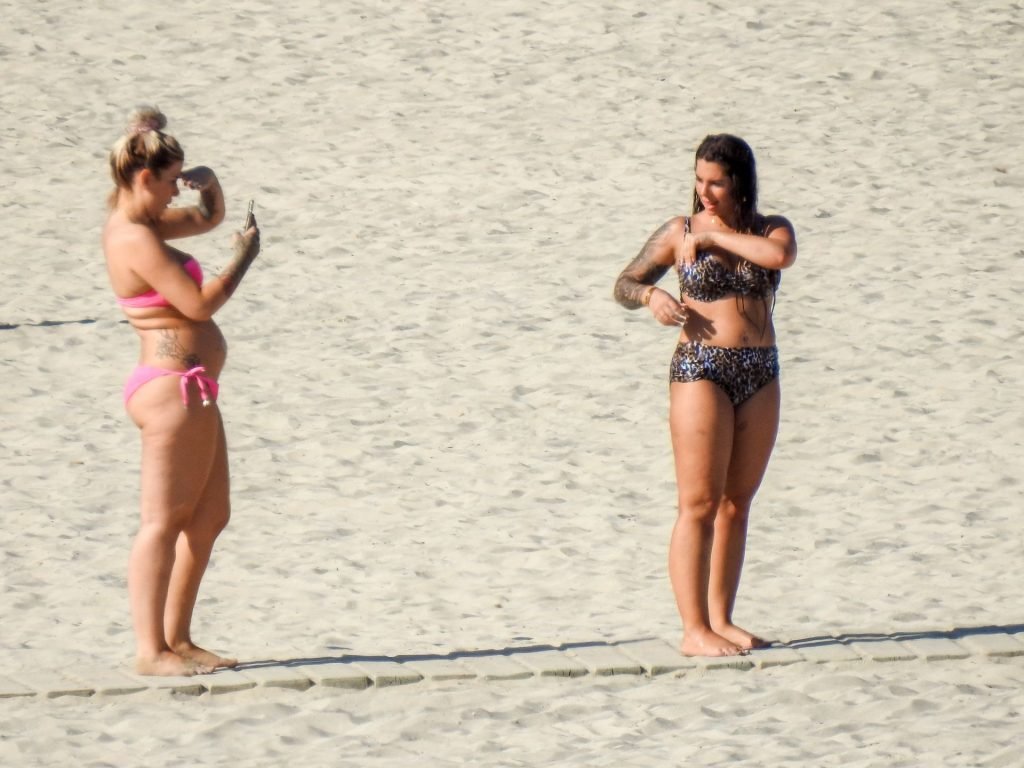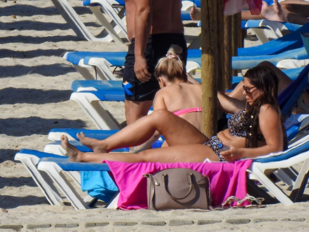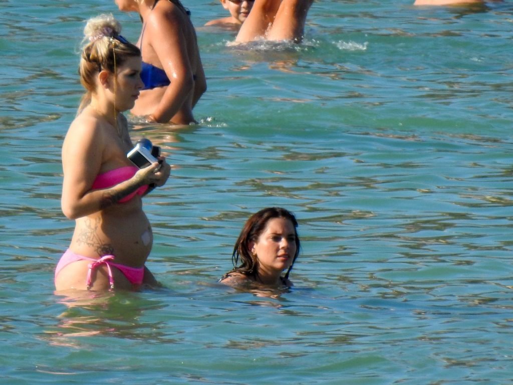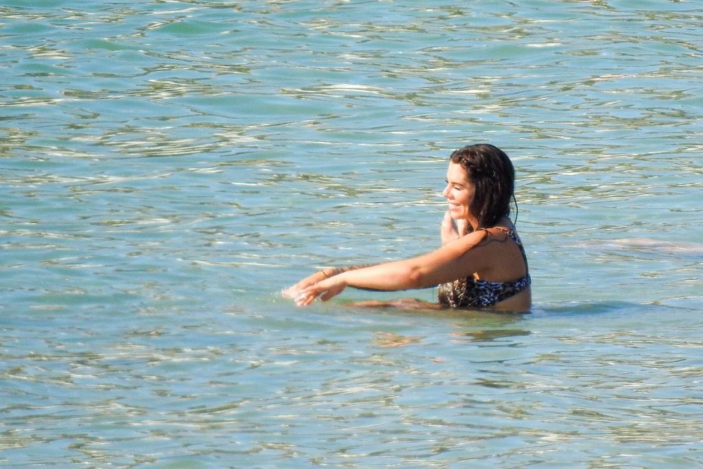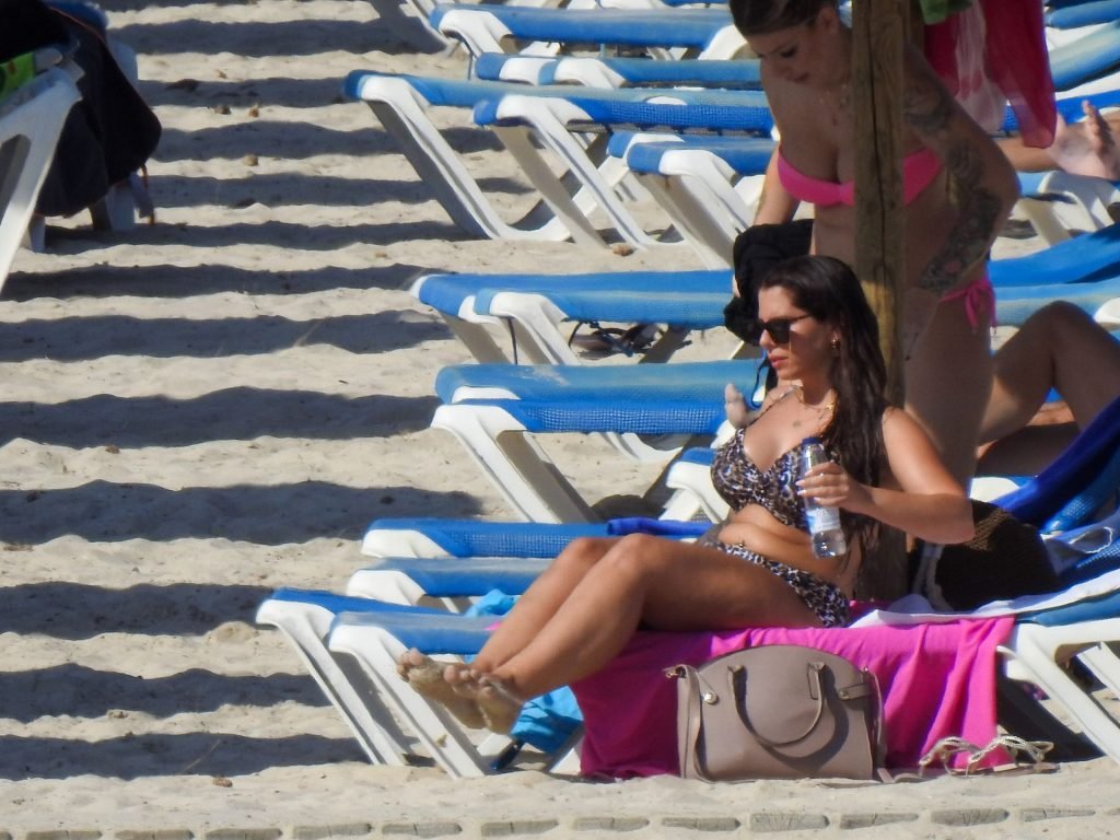 La chanteuse Jenny Frankhauser et son amie Jenny ont été vues sur la plage de Santa Ponsa, Majorque, Espagne, le 22/08/2019.