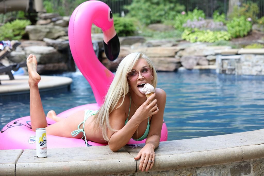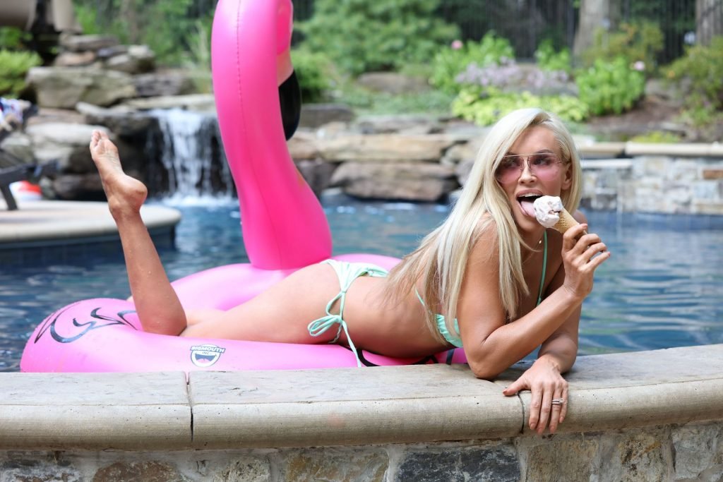 Jenny McCarthy a été vue en train de déguster une petite glace au bord de la piscine, avant de se rendre à l’enregistrement de The Masked Singer, 14/08/2019.