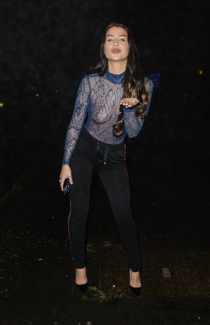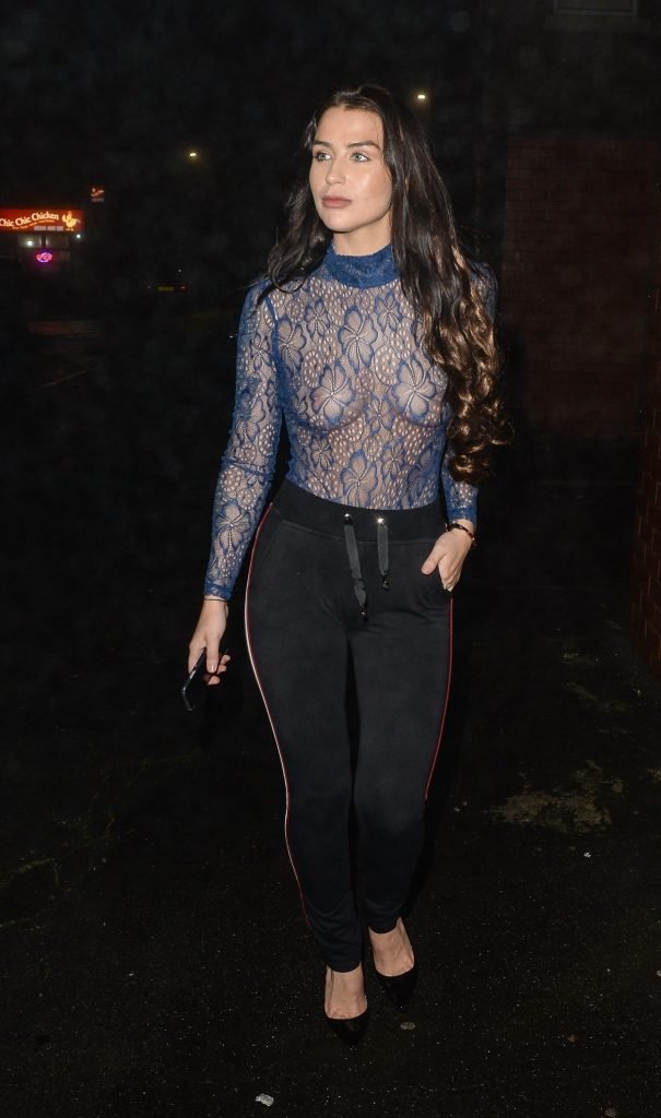 ‘Ex On The Beach’ star Jenny Thompson, 26 ans, montre ses tétons dans un haut transparent lors d’une sortie nocturne à Bolton la veille de Noël, le 24/12/2017.